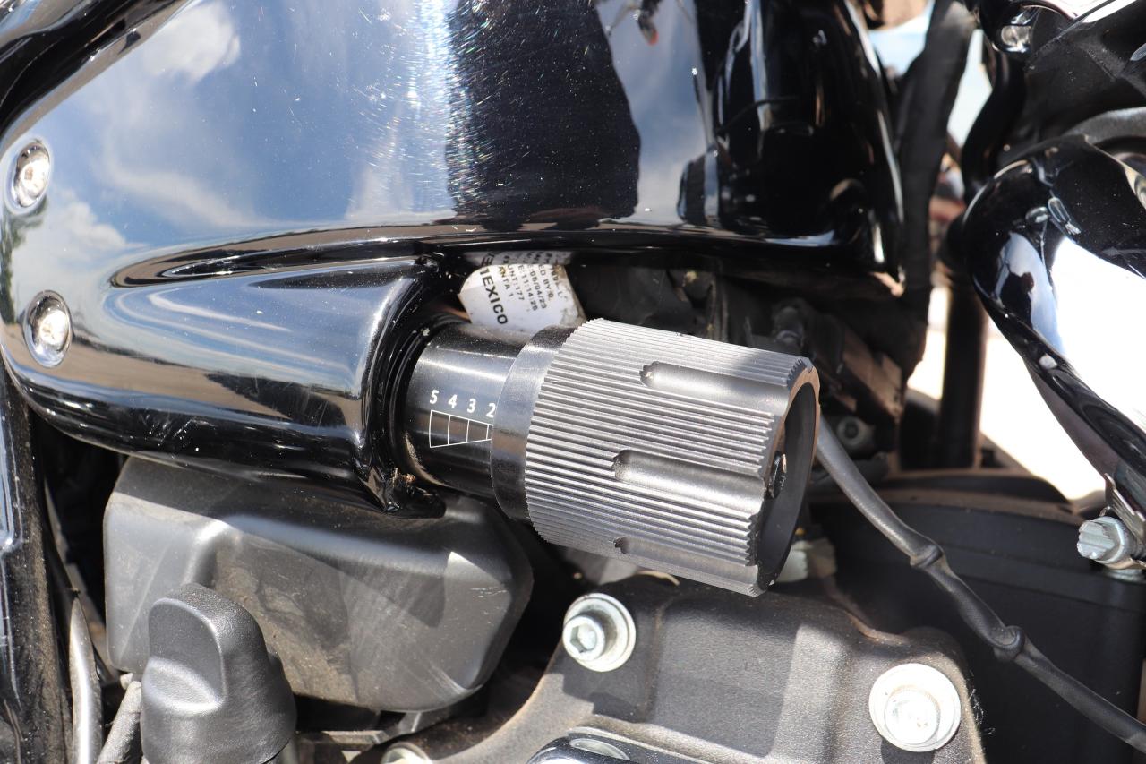 The Fat Boy handles corners with confidence, especially when taking it slow. The wide tires contribute to a planted feel on the road.