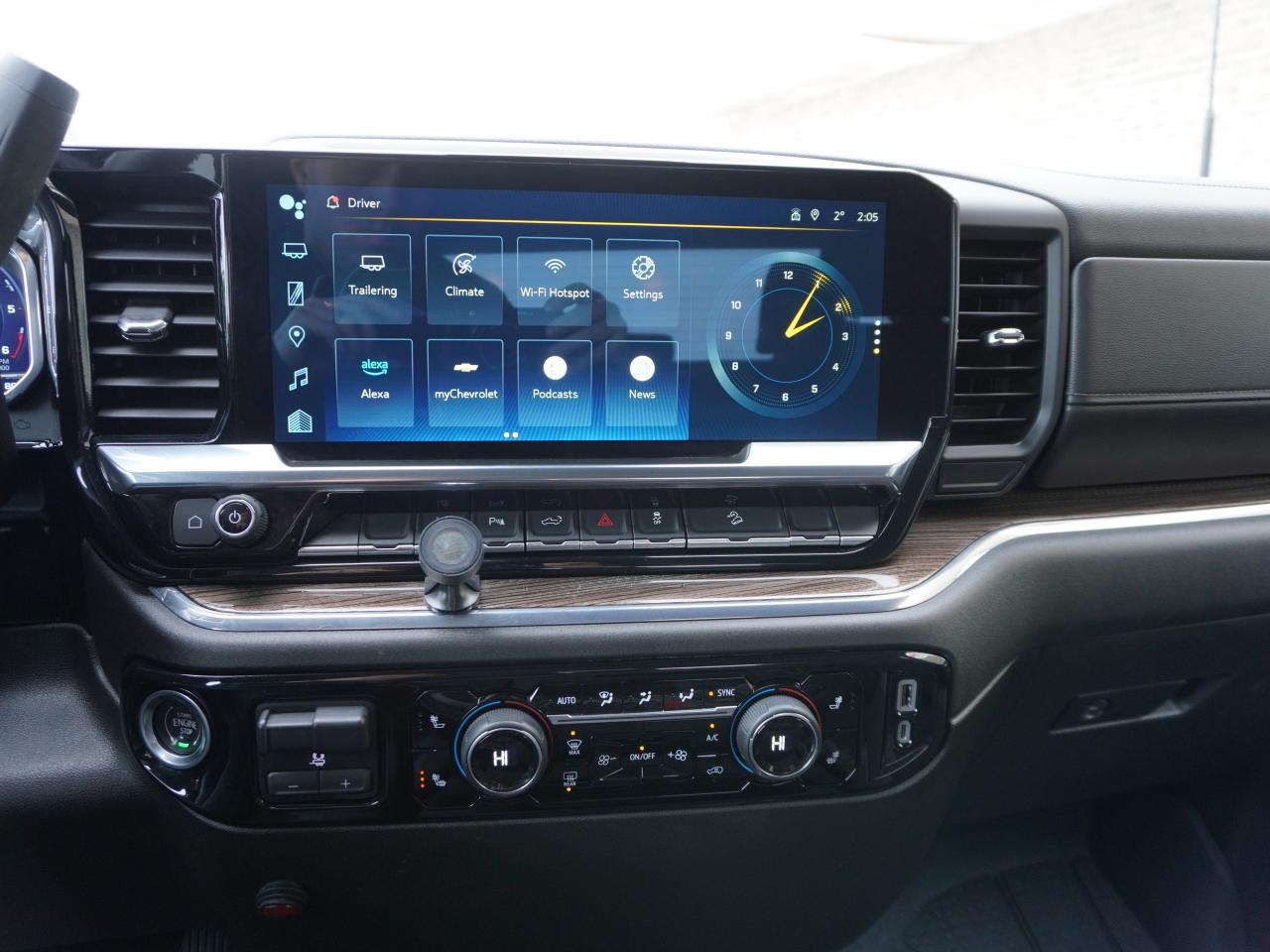 Inside, the truck features a spacious interior with premium touches throughout. You'll appreciate the 10-way power driver seat, dual-zone climate control, heated front seats, remote start, and Chevrolets newest 13.4 inch infotainment system with Apple CarPlay/Android Auto. The Crew Cab offers excellent rear legroom, making it perfect for family use or crew transport.