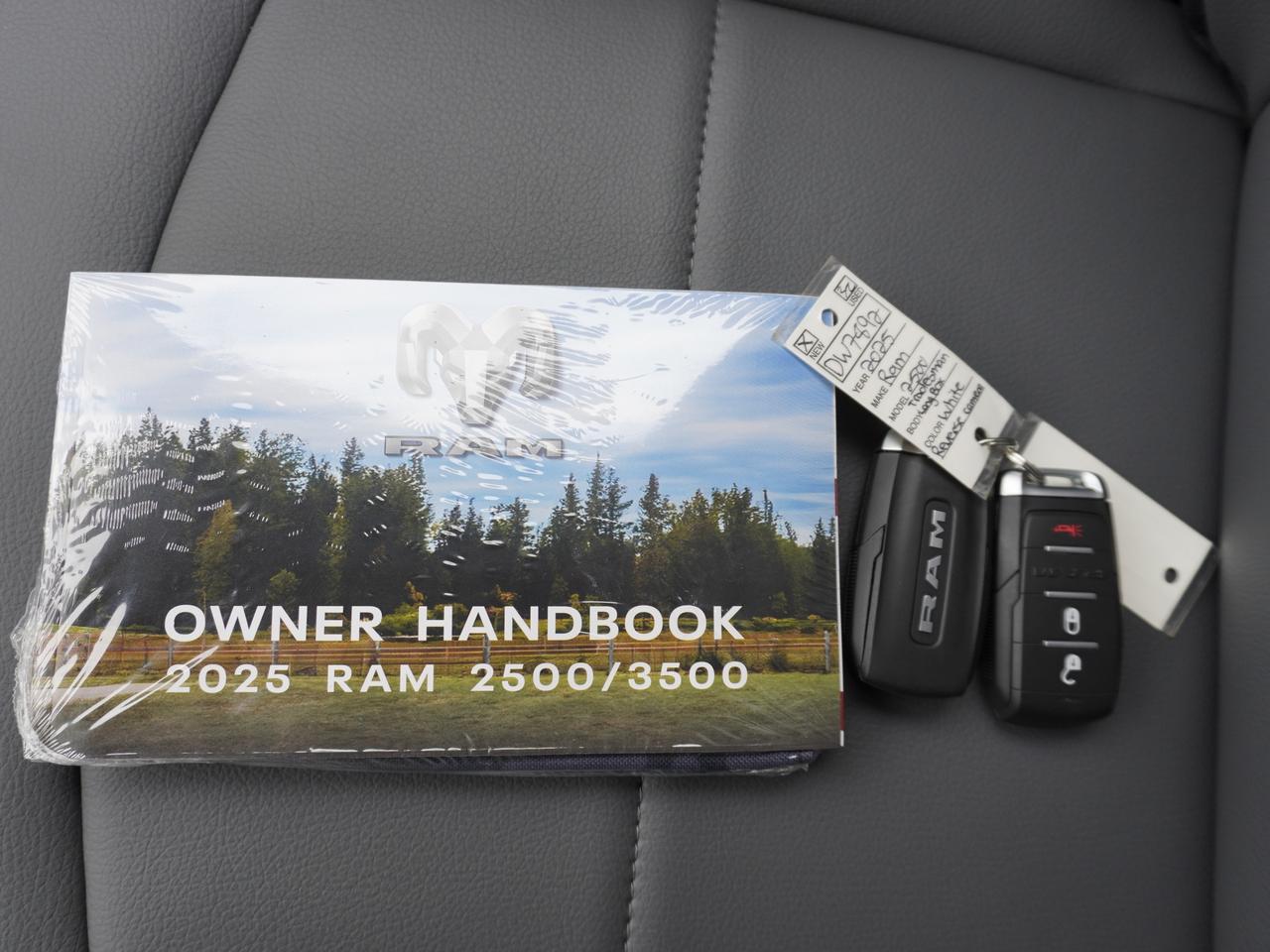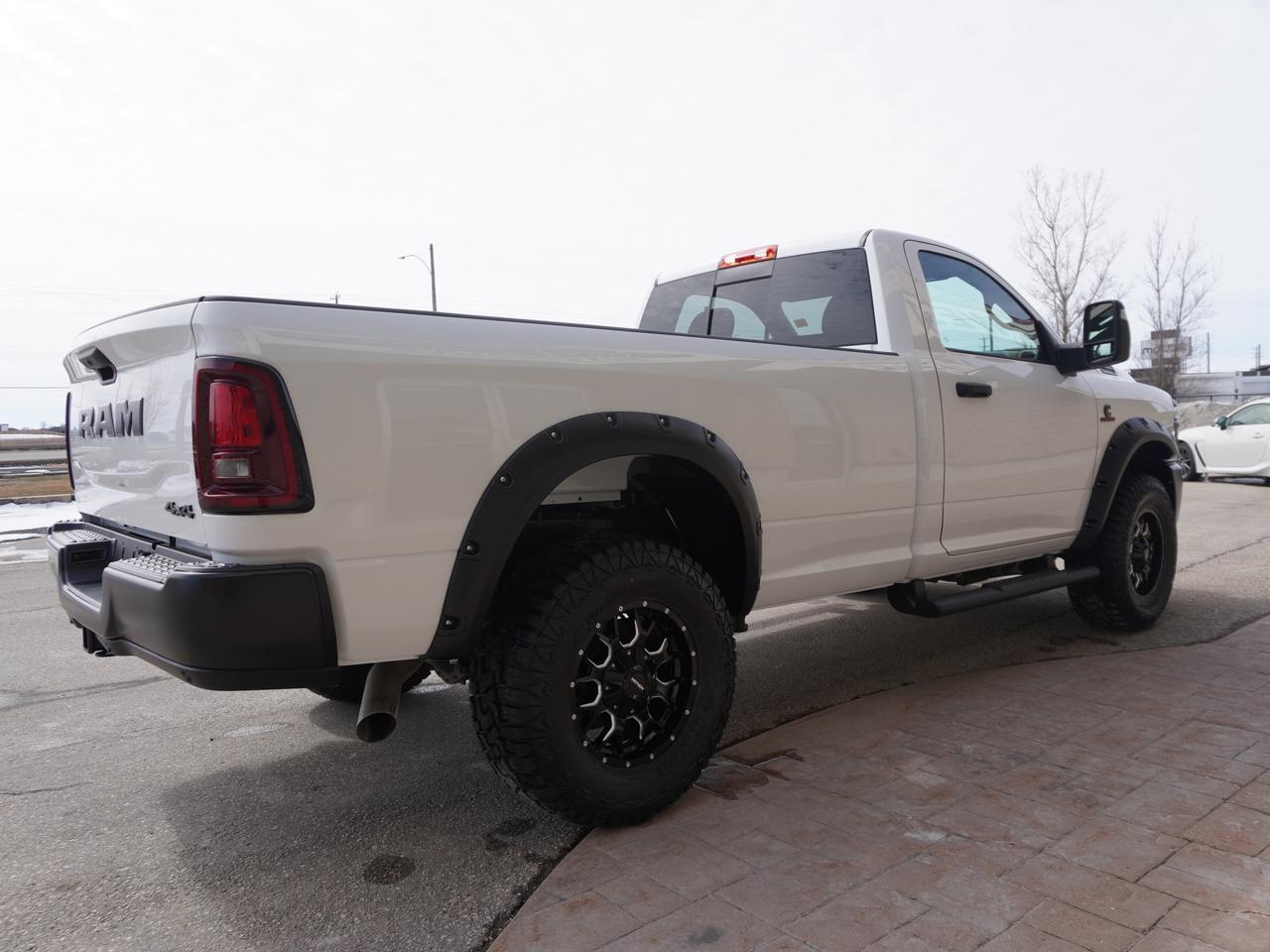 This is a brand new 2025 Ram 2500 Tradesman Regular Cab 4x4, powered by the legendary 6.7L Cummins High Output turbo diesel. Finding a regular cab, 4x4, Cummins-equipped Ram 2500 is exceptionally rare in today's market, especially one built with modern safety technology and heavy-duty trailering capability. This truck is purpose-built, work-focused, and increasingly hard to replace. Finished in Bright White with a Black interior featuring 2 tone leather seats covers, this truck combines durability, simplicity, and serious capability in a configuration that many buyers actively search for but rarely find.