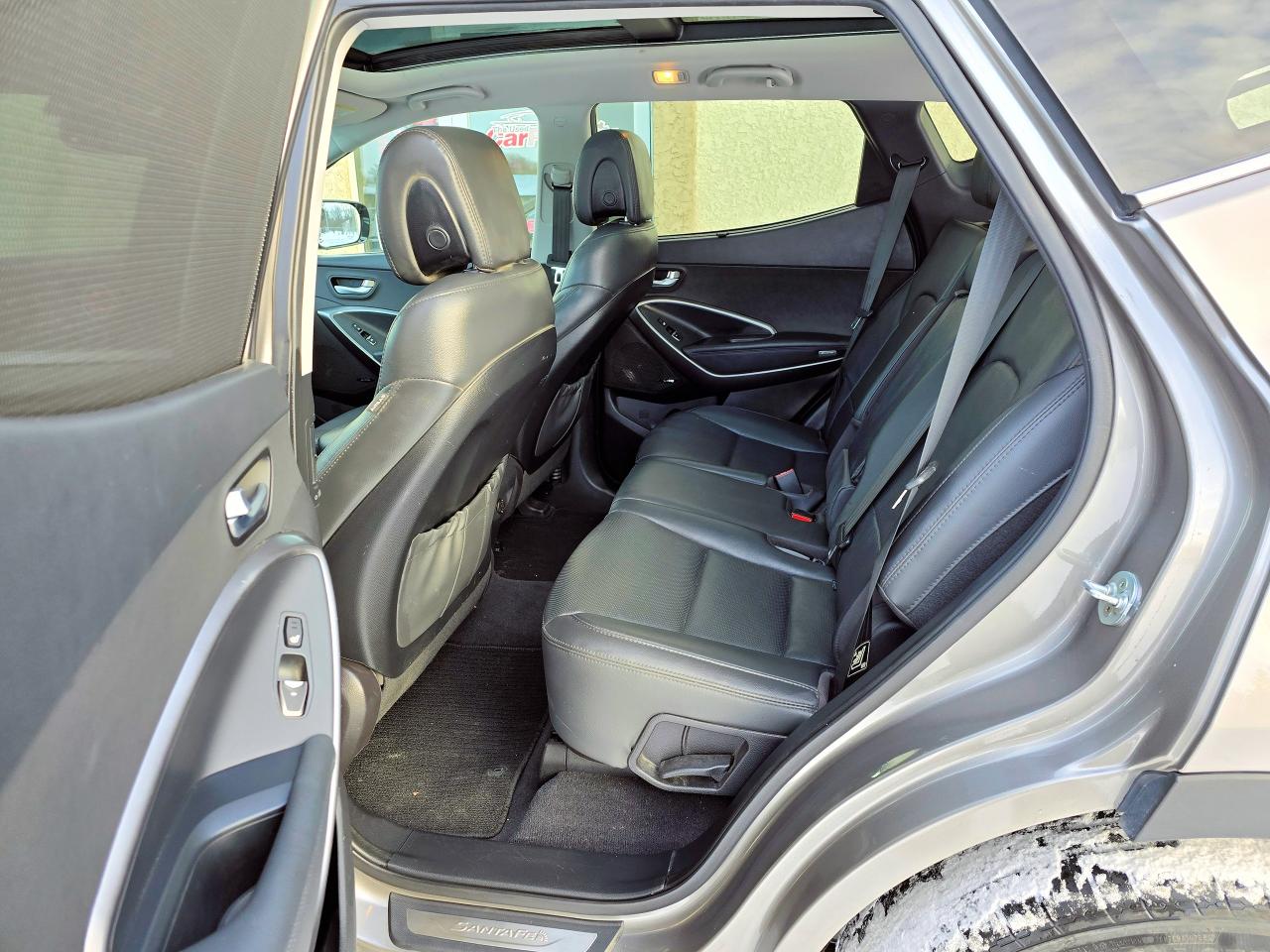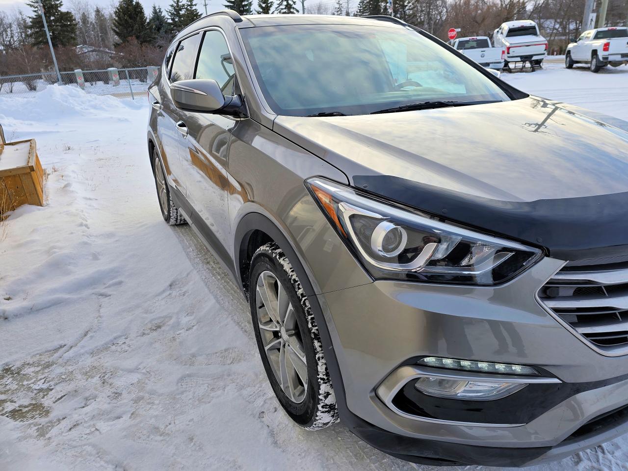 Step into the driver's seat of this sleek Accident Free 2017 Hyundai Santa Fe Sport AWD 4dr 2.0T, and you'll instantly feel the difference. This stylish Platinum Graphite (Dark Gray) SUV boasts a powerful 2.0L V4 Turbo engine and a smooth automatic transmission, making every drive a pleasure. The spacious interior, adorned with black leather seats and premium sound system, invites you to settle in and enjoy the ride. With only 81,479km on the odometer, this Santa Fe is ready for many more adventures.