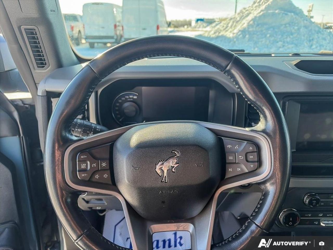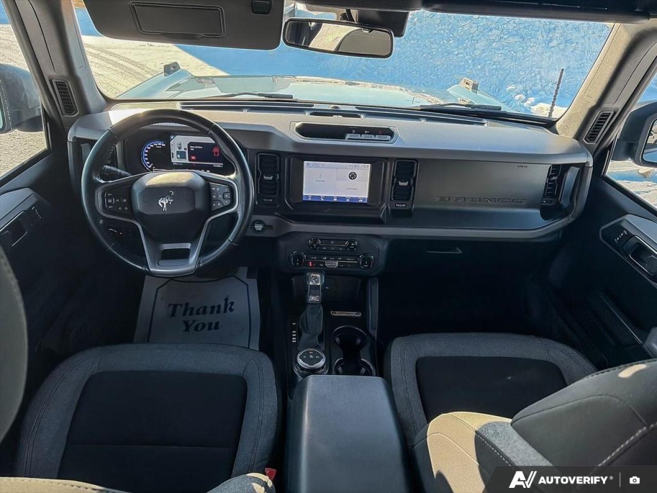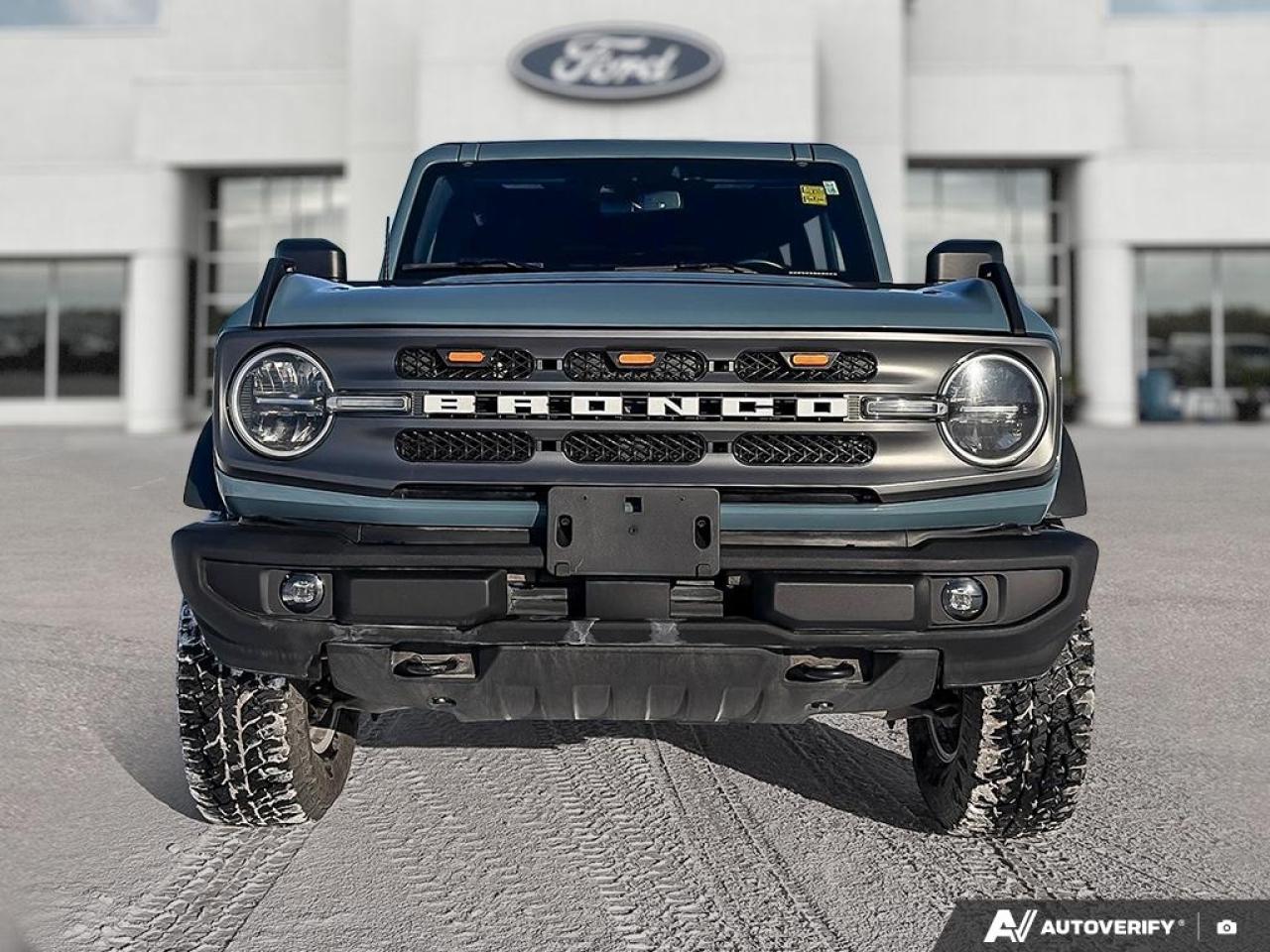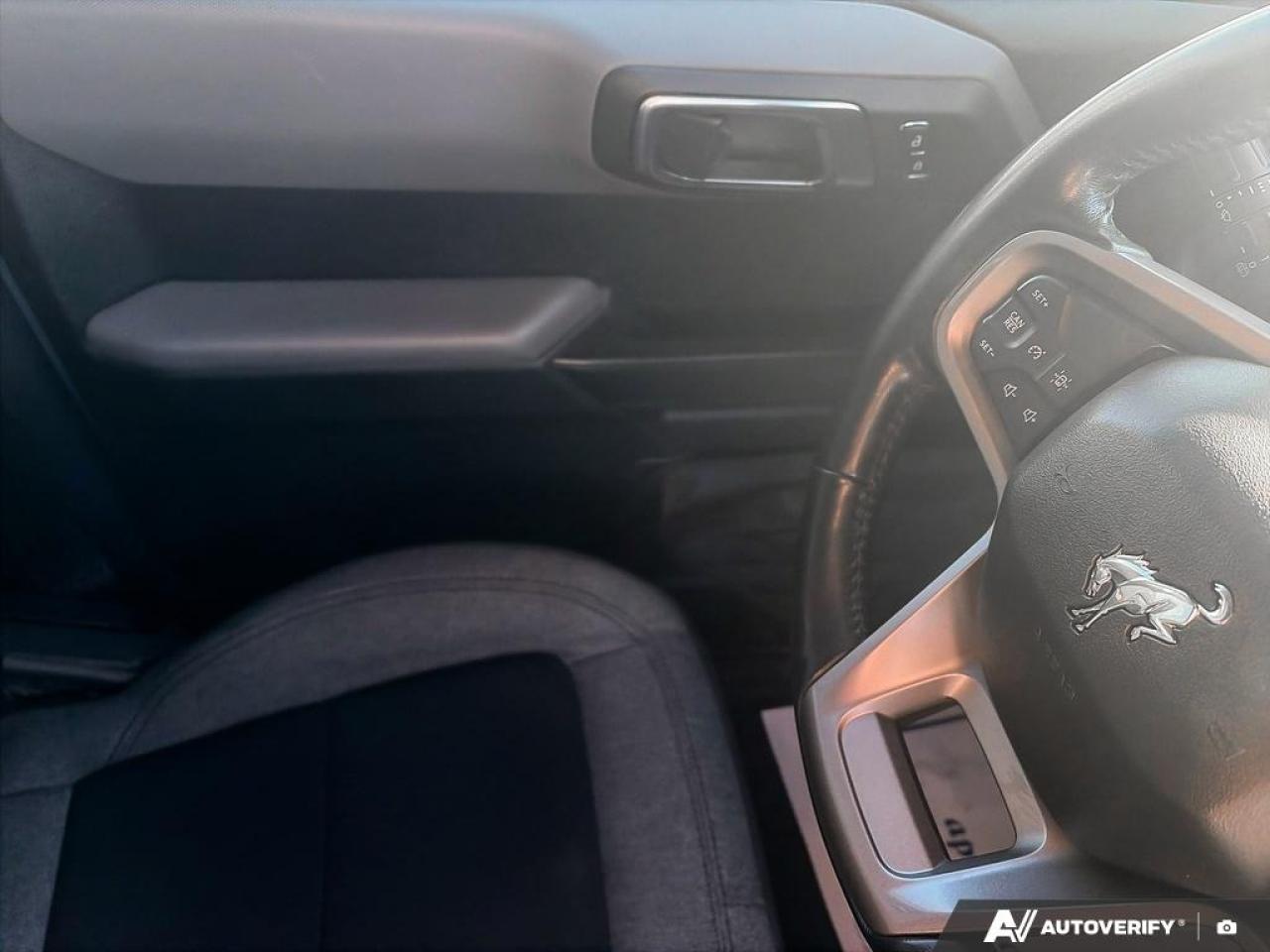 Our Bronco's trim level is Big Bend. Adding some creature comforts, this Bronco Big Bend comes well equipped with a leather steering wheel and gear selector, unique aluminum wheels, front fog lights and a handy 12-volt power inverter! This impressive off-road vehicle also includes a terrain management system with G.O.A.T. modes, tons of extra storage, a highly capable suspension and removable doors. Additional features include SYNC 4 with a large touchscreen display, wireless Android Auto and Apple CarPlay, Ford Co-Pilot360 featuring pre-collision assist, forward collision mitigation and a rear view camera, durable cloth seats and a 50-50 split-folding rear bench seat. This vehicle has been upgraded with the following features: Aluminum Wheels, Terrain Management, Leather Steering Wheel, Apple CarPlay, Android Auto, Ford Co-Pilot360, Pre-Collision Assist.
