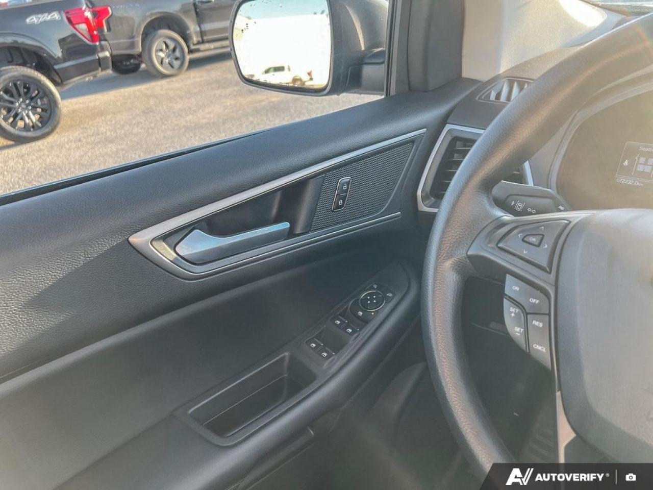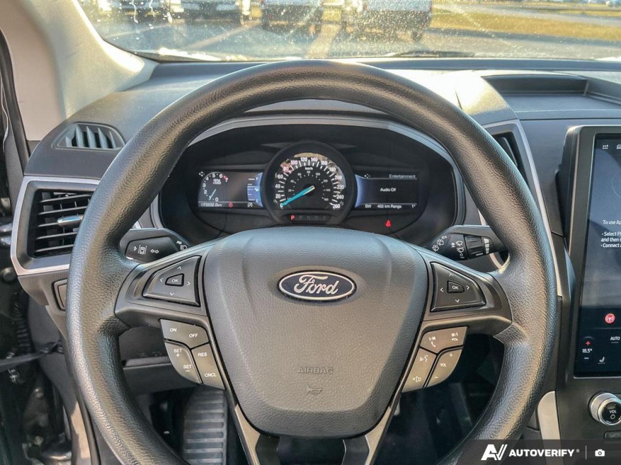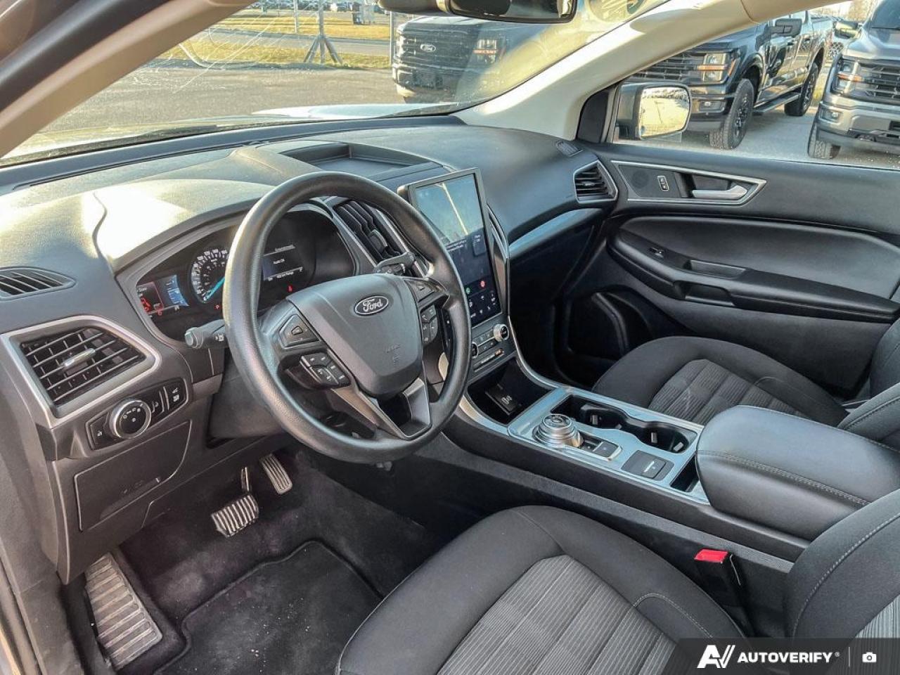 Our Edge's trim level is SEL. Stepping up to this SEL trim rewards you with plush heated front seats featuring power adjustment and lumbar support, a power liftgate for rear cargo access, a key fob with remote engine start and rear parking sensors, in addition to a 12-inch capacitive infotainment screen bundled with wireless Apple CarPlay and Android Auto, SiriusXM satellite radio, a 6-speaker audio setup, and 4G mobile hotspot internet connectivity. You and yours are assured of optimum road safety, with blind spot detection, rear cross traffic alert, pre-collision assist with automatic emergency braking, lane keeping assist, lane departure warning, forward collision alert, driver monitoring alert, and a rearview camera with an inbuilt washer. Also standard include proximity keyless entry, dual-zone climate control, 60-40 split front folding rear seats, LED headlights with automatic high beams, and even more. This vehicle has been upgraded with the following features: Heated Seats, Power Liftgate, Apple CarPlay, Android Auto, Remote Start, Ford Co-Pilot360, Lane Keep Assist.