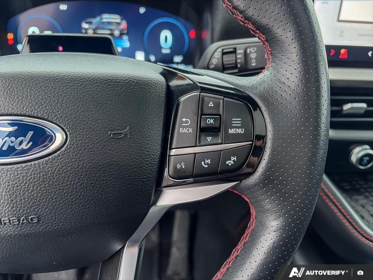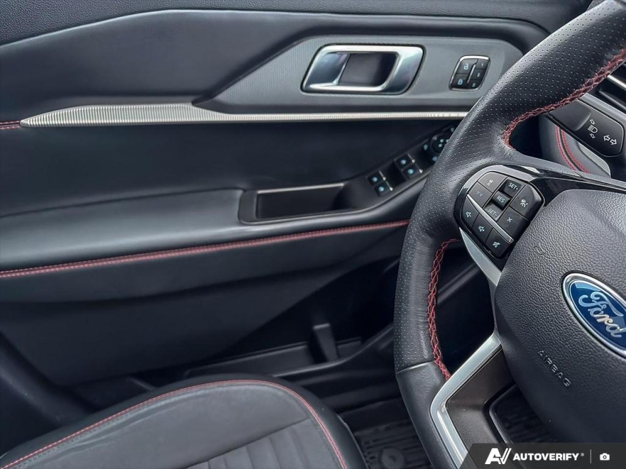 Our Explorer's trim level is ST-Line. This Explorer ST-Line steps things up with BlueCruise 1.2, inbuilt navigation, Bang & Olufsen audio, an aerial view camera system and a heated steering wheel. Also standard include 20 aluminum wheels, FordPass Connect 5G mobile hotspot internet access, adaptive cruise control, smart device remote engine start, and a power liftgate for rear cargo access. On the inside, occupants are treated to heated front seats, voice-activated dual-zone climate control, and a 13.2-inch infotainment screen with wireless Apple CarPlay and Android Auto. Safety features also include lane keep assist with lane departure warning, collision mitigation, automatic emergency braking, evasion assist, and rear parking sensors. This vehicle has been upgraded with the following features: BlueCruise, Navigation, B&O Audio, 360 Camera, Remote Start, Heated Steering Wheel, Heated Seats.