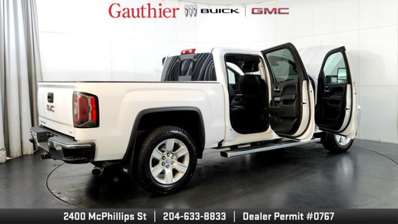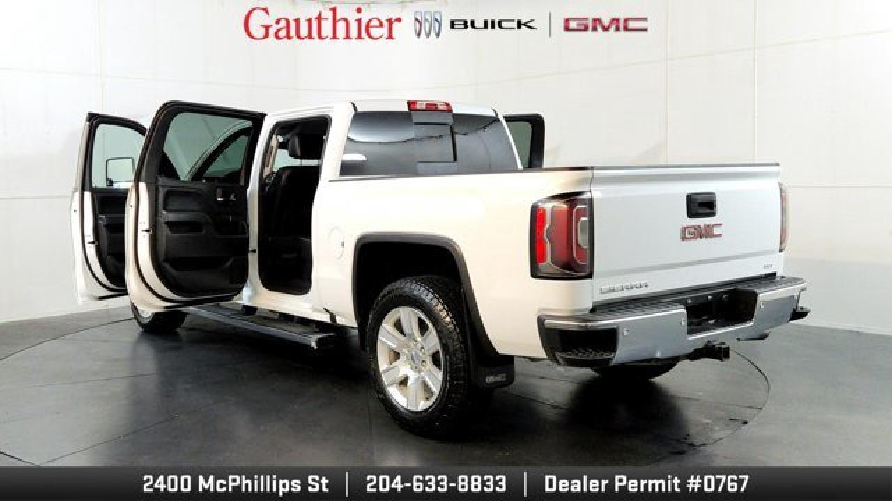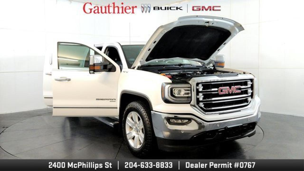 The 2018 GMC Sierra 1500 SLT work-and-lifestyle truck brings a pleasing blend of robustness and refinement with features like a 5.3-L V8 engine (with 355 hp and 383 lb-ft of torque) and 6-speed automatic transmission for capable towing and performance. Inside, the SLT adds luxury touches such as leather-trimmed seats with heating, dual-zone automatic climate control, power-adjustable pedals and driver-memory seating. On the tech and convenience front, it features Apple CarPlay/Android Auto compatibility, parking sensors, remote start and an IntelliLink touchscreen interface to keep both work tasks and daily driving well supported.