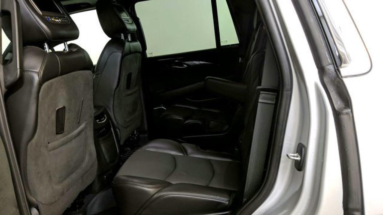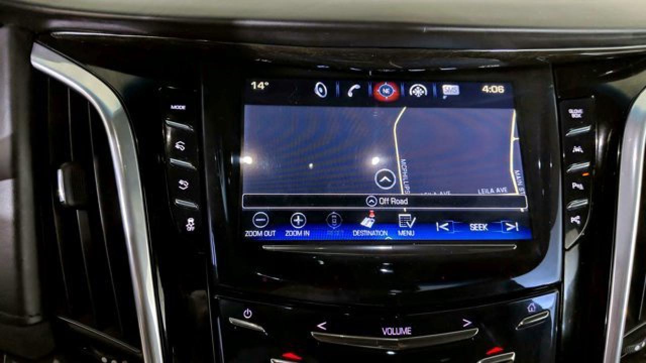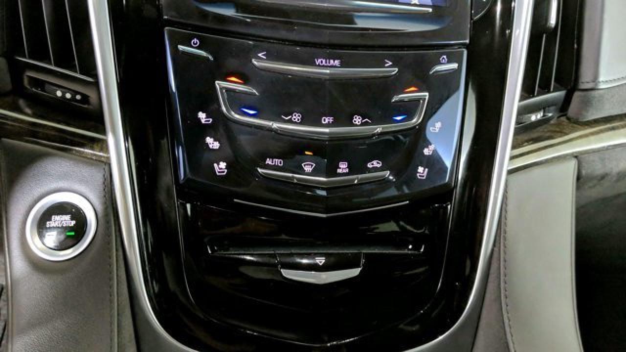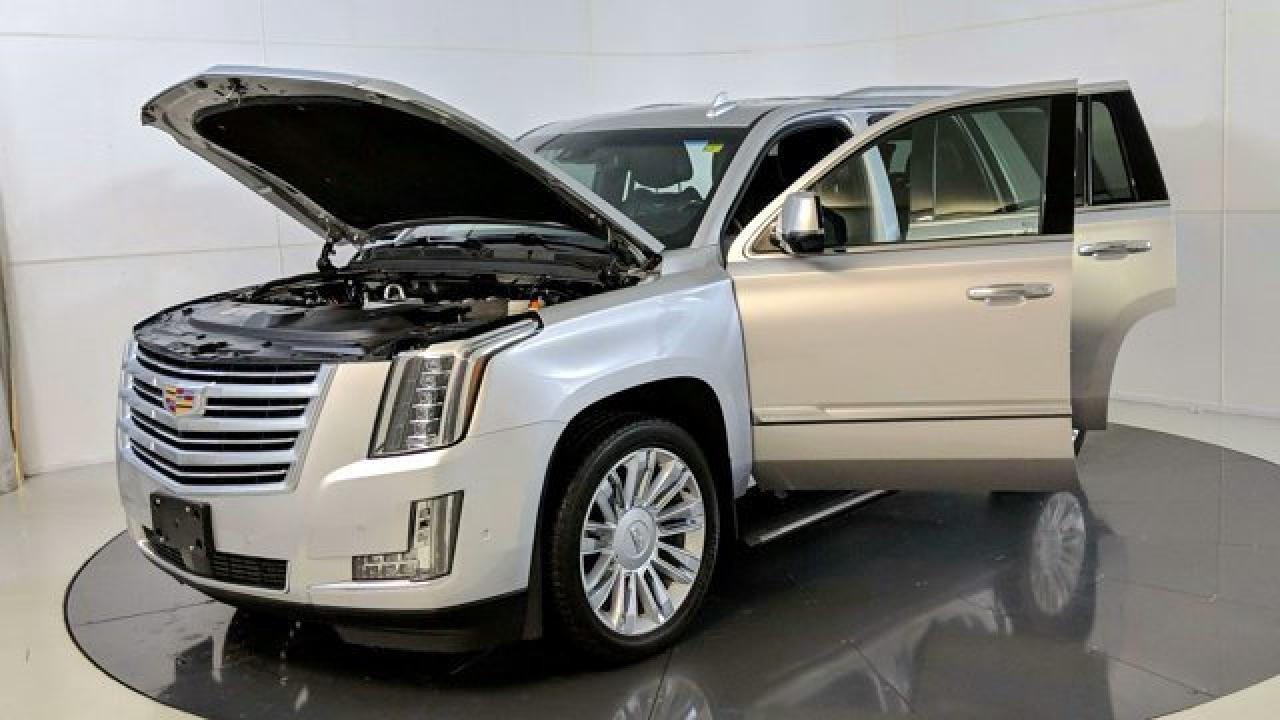 The 2019 Escalade Platinum is powered by a commanding 6.2 L V8 engine delivering 420 hp and 460 lb-ft of torque, paired with a 10-speed automatic transmission and 4WD. Its cabin dazzles with premium features including semi-aniline leather seats with front massage and heating/cooling for first and second rows, a cooled center console cold box, a panoramic sunroof, and a 16-speaker Bose surround sound system complemented by rear-seat DVD screens and built-in Wi-Fi hotspot. On the tech and safety front, the Platinum trim includes adaptive cruise control, lane-departure warning, smart key entry, navigation, Apple CarPlay/Android Auto compatibility, and Cadillac's Magnetic Ride Control suspension for a refined ride experience.
