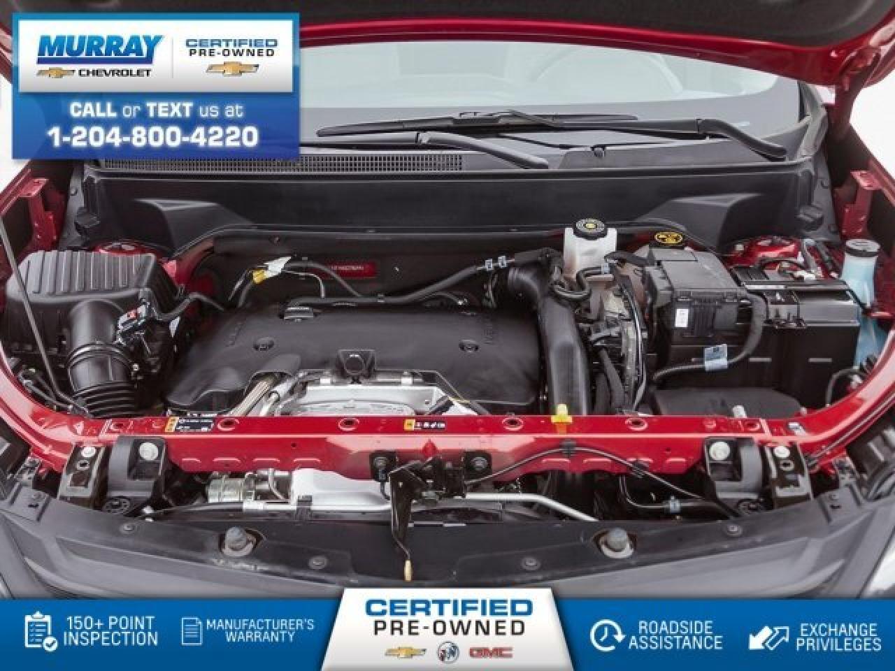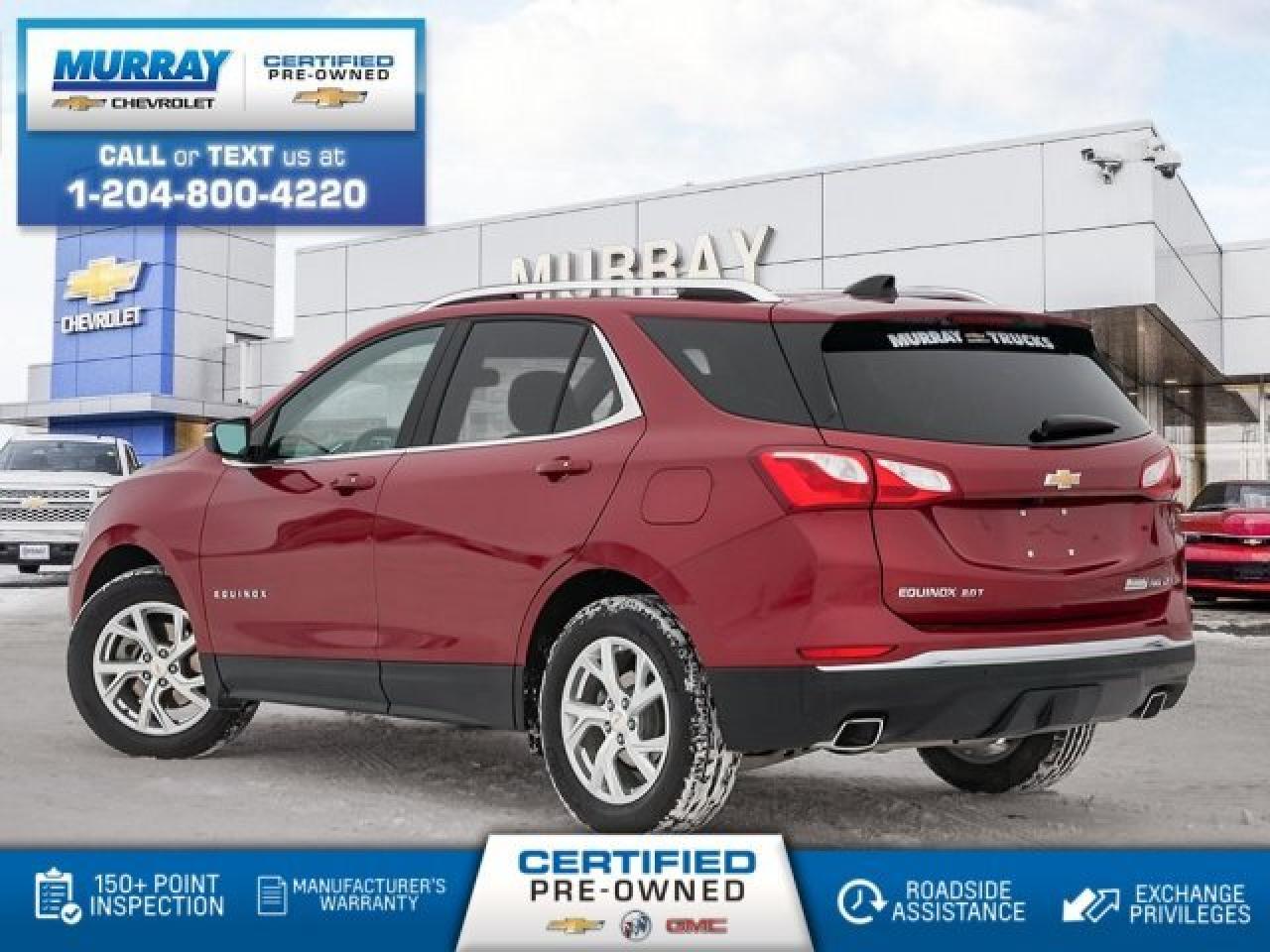 All Wheel Drive, Sunroof, Rear Vision Camera, Heated Seats, Bluetooth, Keyless Open Taking you further, our 2019 Chevrolet Equinox LT AWD SUV in Cajun Red Tintcoat is a standout in its class! Powered by a TurboCharged 2.0 Litre 4 Cylinder and responsive 9 Speed Automatic transmission for smooth shifts. This All Wheel Drive SUV is going to please you with its confident demeanor as it handles beautifully, while also rewarding your wallet with approximately 7.8L/100km on the highway. Our Equinox LT strikes a perfect balance of sporty sophistication with its sweeping silhouette. High-intensity discharge headlamps, deep tinted rear glass, a large sunroof, and great-looking wheels emphasize the smart styling. The LT interior boasts ample cargo space, heated seats, power windows/locks, push-button start, and keyless open. Staying safely connected is simple with our Chevrolet MyLink audio system with a colour touchscreen, a USB port, Bluetooth, available WiFi, and smartphone compatibility. Safety is paramount with Chevrolet evidenced by an airbag system, LED daytime running lamps, a rear vision camera, StabiliTrak, Teen Driver Technology, and other safety innovations. Chevrolet is committed to automotive excellence and has a sterling reputation for reliability, security, and performance that will add to your peace of mind each time you get behind the wheel of your Equinox. Print this page and call us Now... We Know You Will Enjoy Your Test Drive Towards Ownership! View a CarFax Vehicle Report instantly at MurrayChevrolet.ca. : Questions? Call or text us at 204-800-4220 or call us toll-free at 1-888-381-7025.