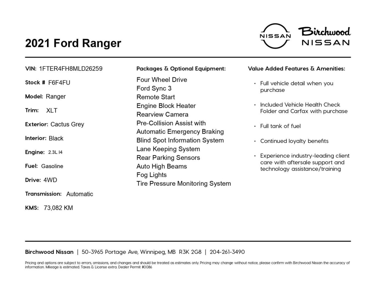 Experience the perfect blend of power and technology in this Ford Ranger. Whether you're tackling tough job sites or embarking on weekend getaways, this truck has you covered. Ready to take the wheel? Contact Birchwood Nissan today to schedule a test drive or start your purchase process online. Our team is here to answer any questions and ensure you find the perfect vehicle to fit your lifestyle.