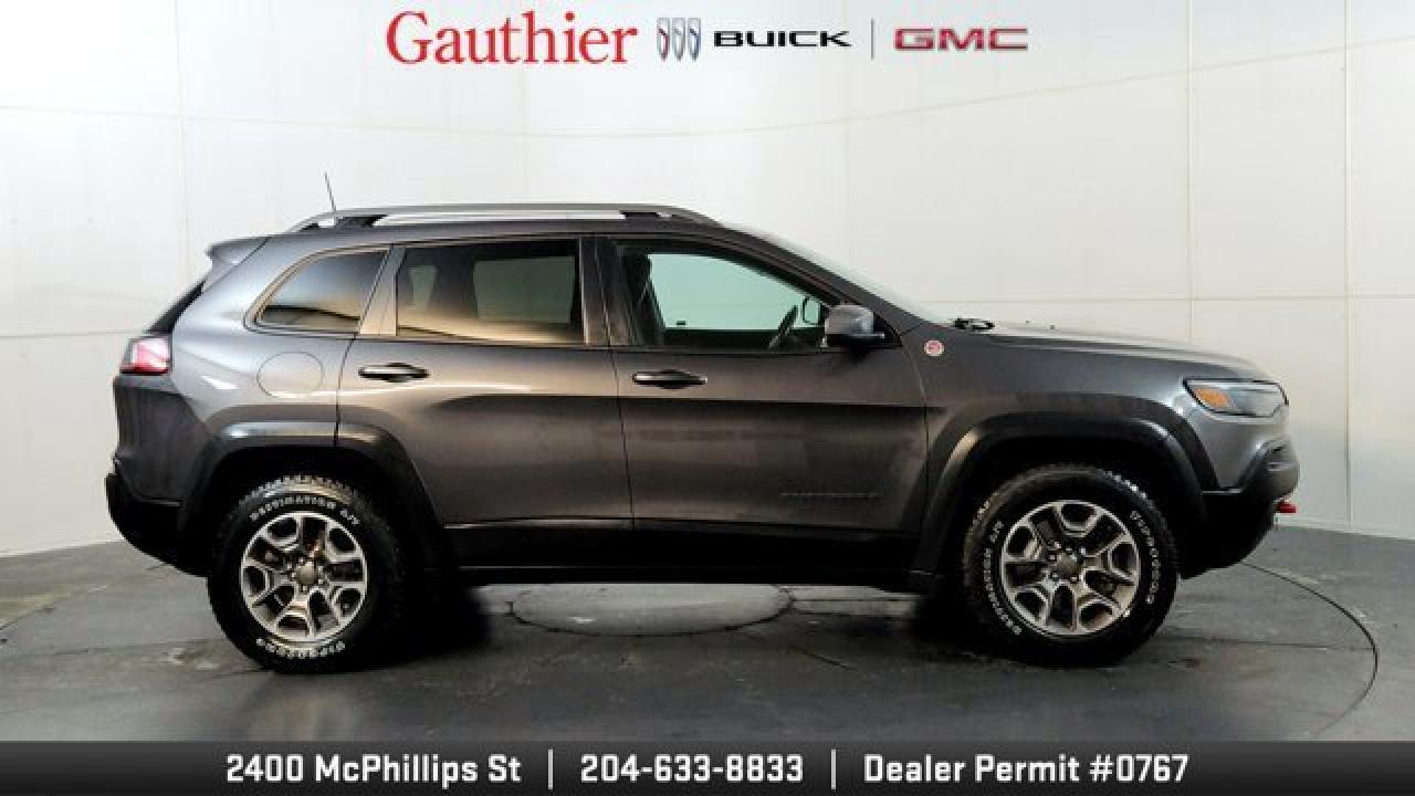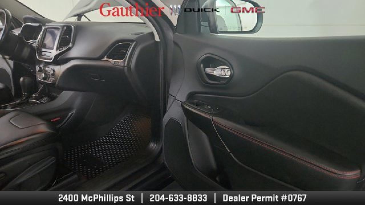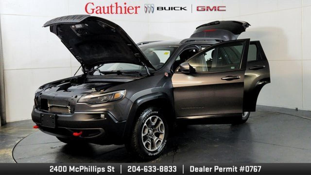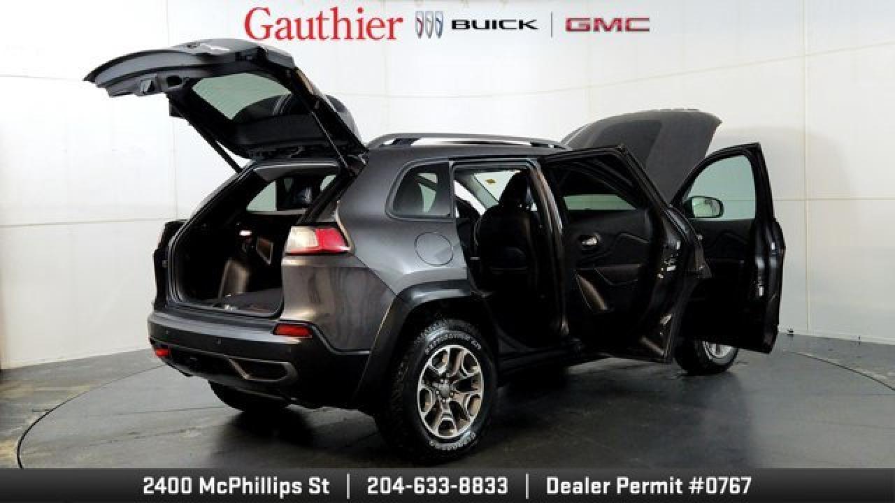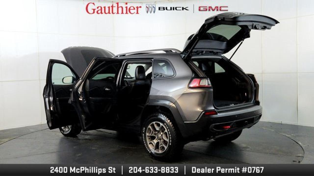 The 2021 Jeep Cherokee Trailhawk is an off-road-focused SUV designed for rugged performance, featuring Jeep's Active Drive Lock 4x4 system and a locking rear differential. It comes equipped with a 3.2L V6 engine, increased ground clearance, skid plates, and all-terrain tires for enhanced trail capability. Inside, it offers a comfortable cabin with an 8.4-inch touchscreen, Apple CarPlay and Android Auto, and a suite of optional features including a power liftgate, premium Alpine audio, a towing package 17-inch black aluminum wheels.