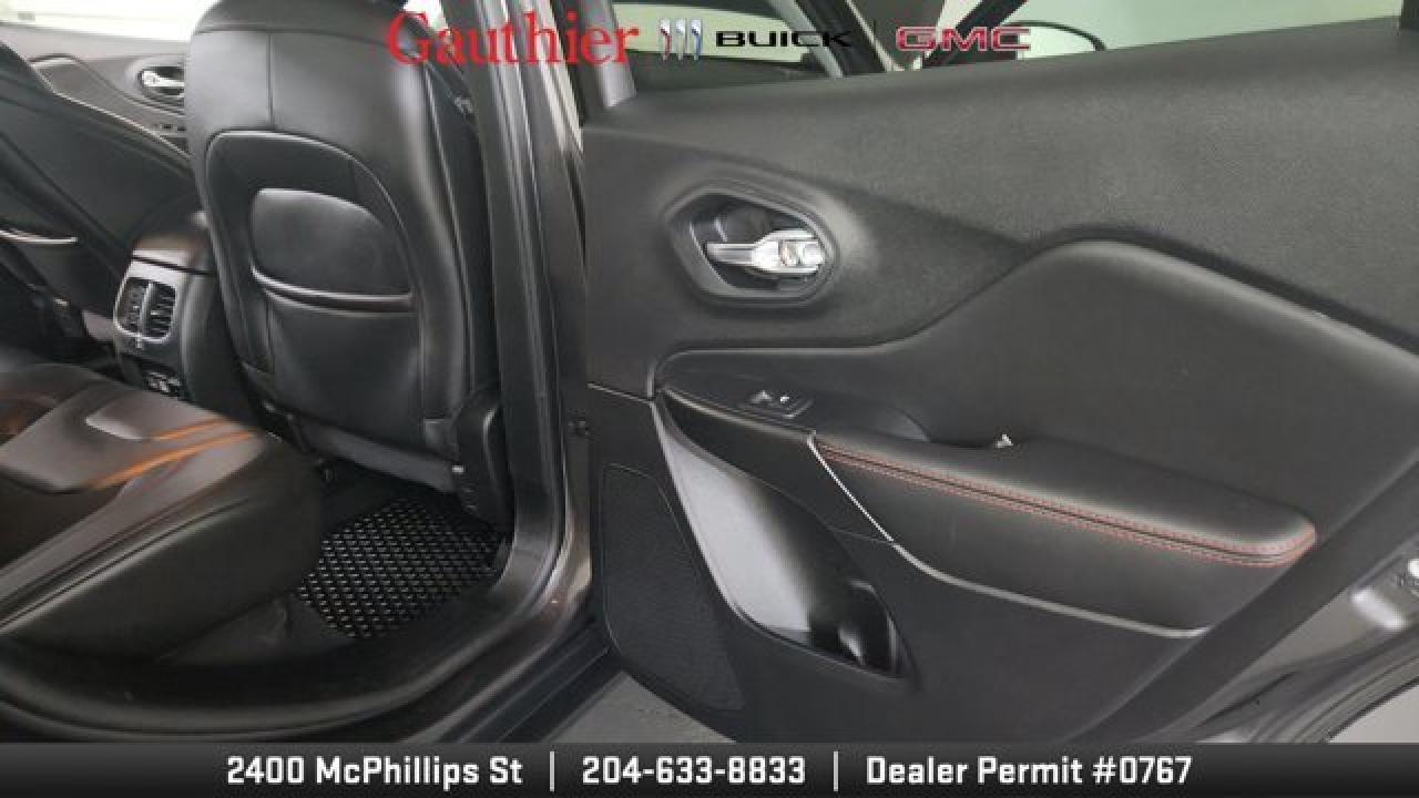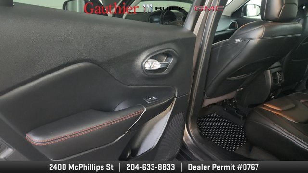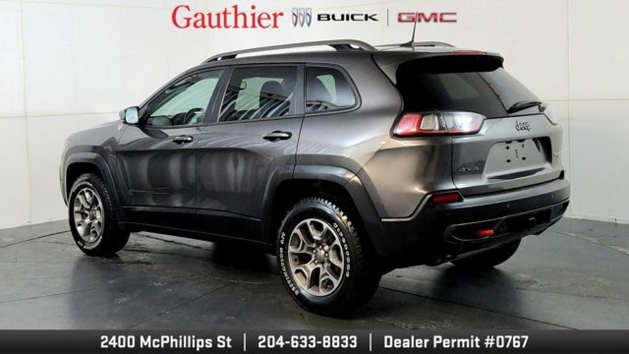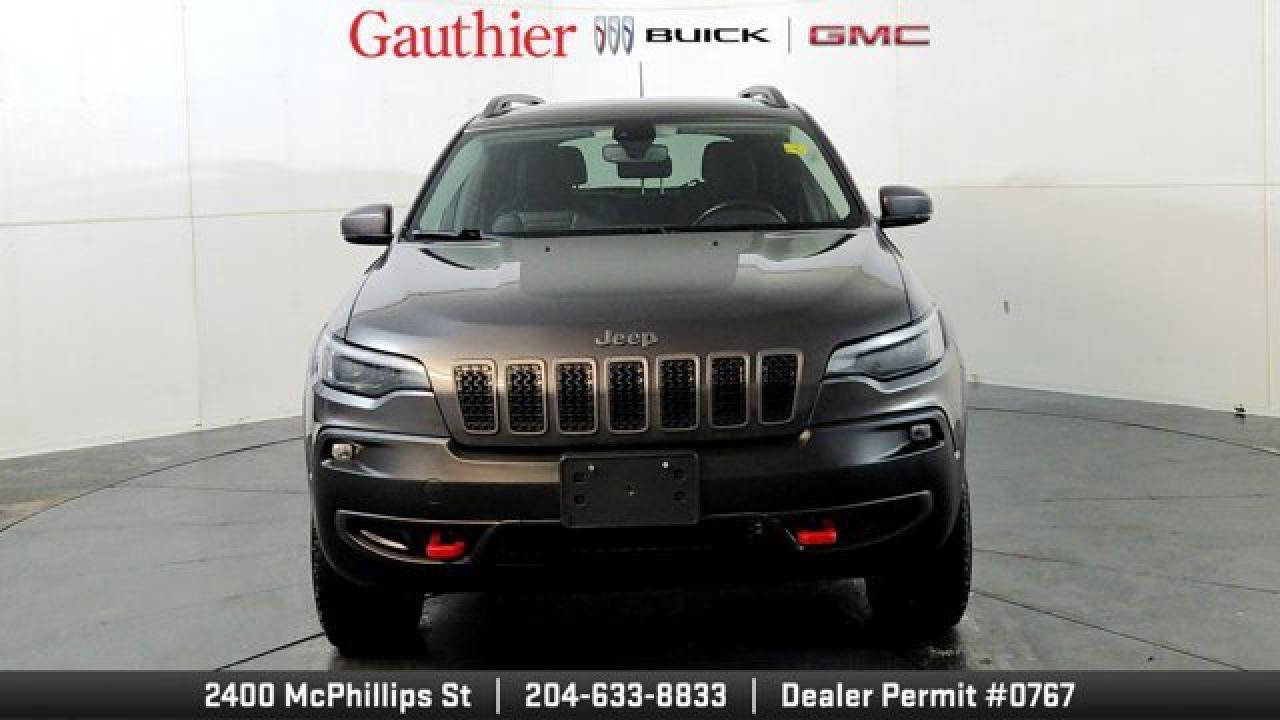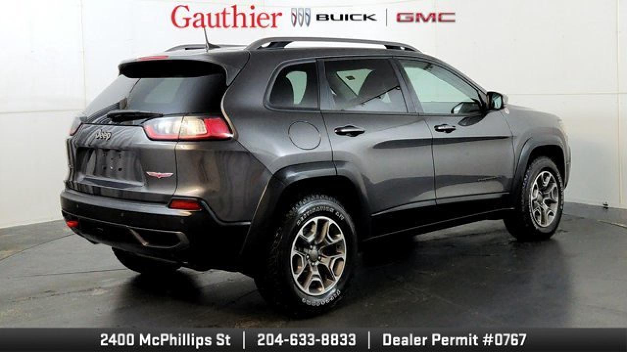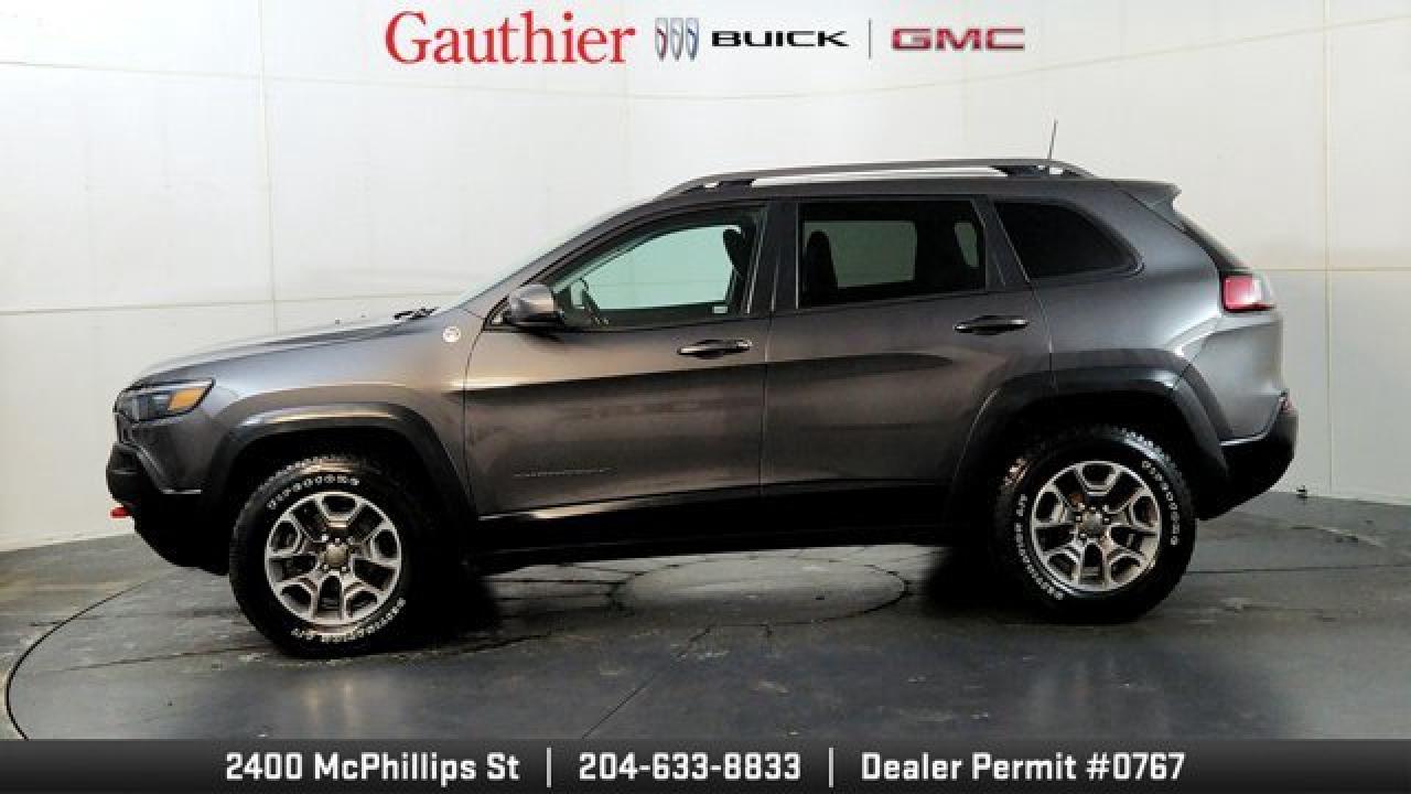 The 2021 Jeep Cherokee Trailhawk is an off-road-focused SUV designed for rugged performance, featuring Jeep's Active Drive Lock 4x4 system and a locking rear differential. It comes equipped with a 3.2L V6 engine, increased ground clearance, skid plates, and all-terrain tires for enhanced trail capability. Inside, it offers a comfortable cabin with an 8.4-inch touchscreen, Apple CarPlay and Android Auto, and a suite of optional features including a power liftgate, premium Alpine audio, a towing package 17-inch black aluminum wheels.