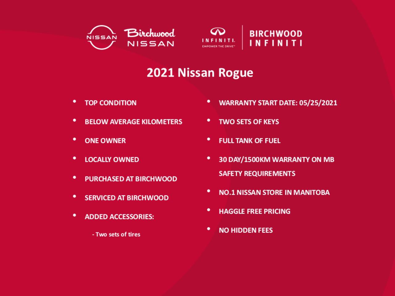 We are here to buy, sell, and service your vehicle! All pre-owned vehicles from Birchwood Nissan come with: