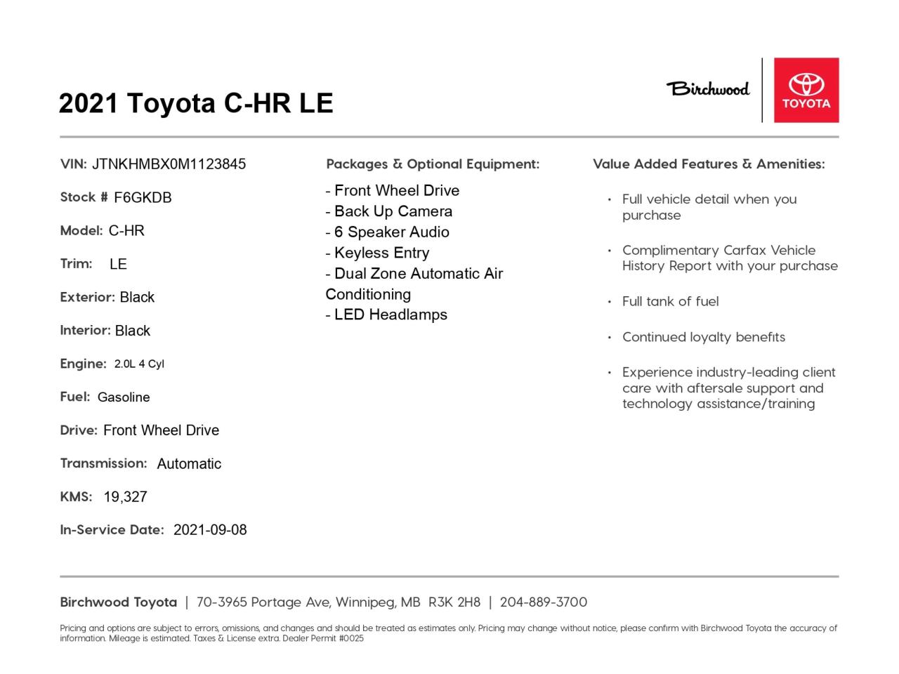 Experience the Toyota C-HR for yourself! Visit Birchwood Toyota online or in-person to schedule a test drive. Our knowledgeable staff is ready to answer any questions you may have about this versatile compact SUV. Don't miss out on this opportunity to own a stylish and practical vehicle that's perfect for your daily commute and weekend getaways.