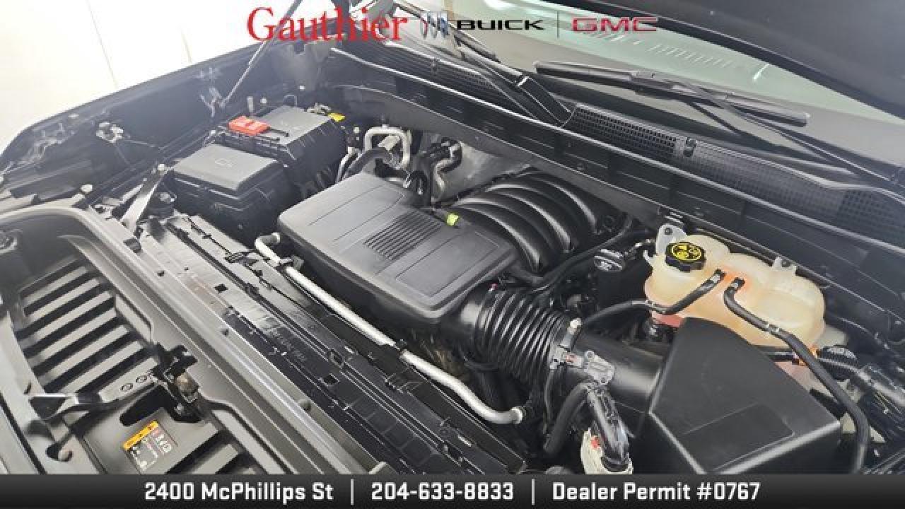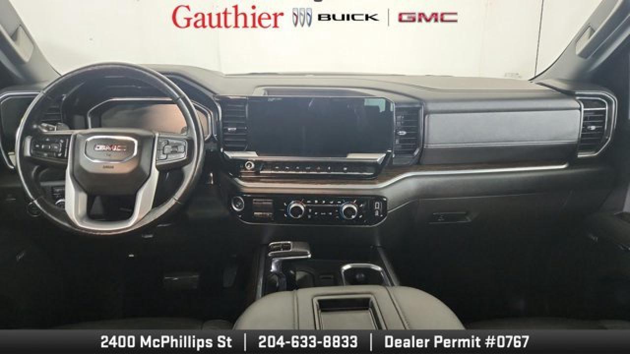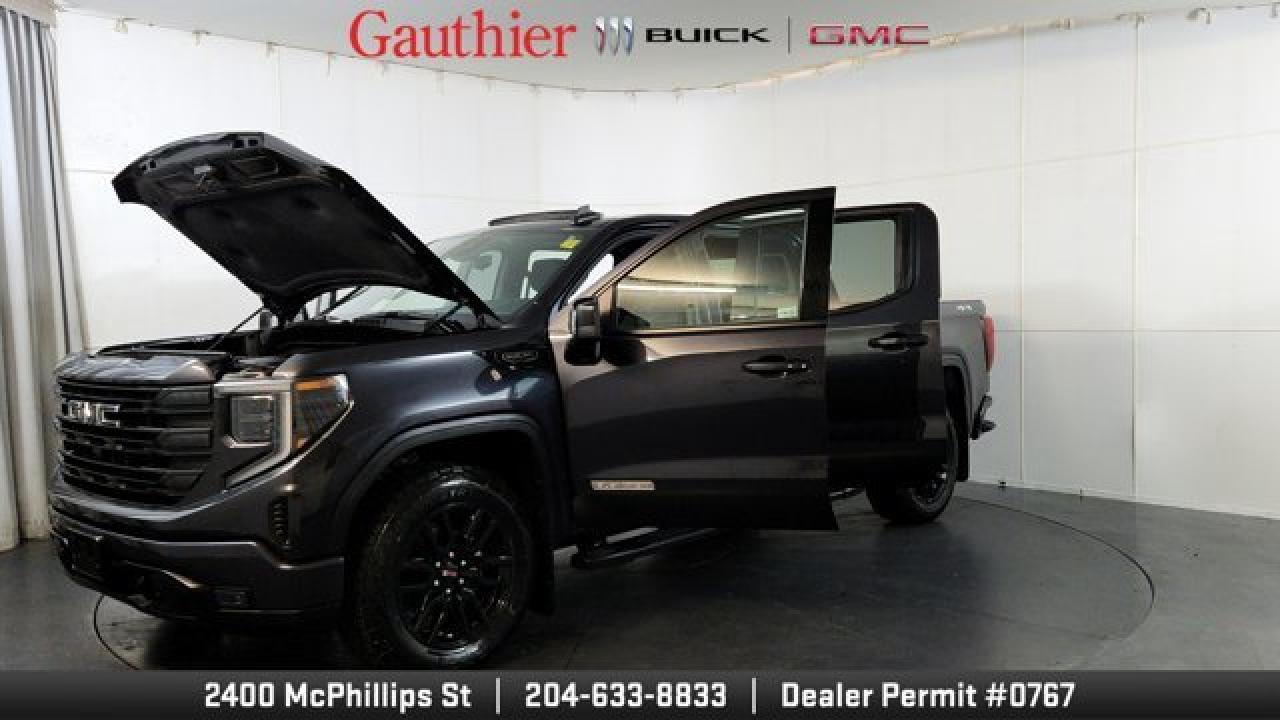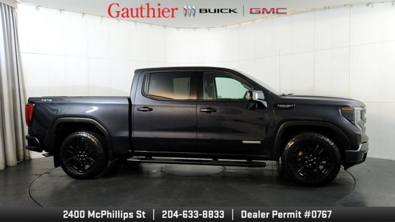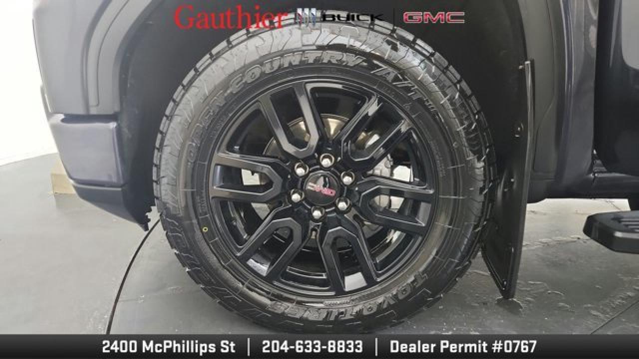 The 2022 GMC Sierra 1500 Elevation boasts a bold, monochromatic exterior featuring a black-gloss grille, body-color bumpers, unique 20-inch gloss-black wheels and LED fog lamps for a more aggressive and modern look. It's powered by a 5.3 L V8 paired to a smooth 10-speed automatic. Inside and on the tech front, the Elevation shares modern comforts from the Sierra lineup like a touchscreen infotainment system with smartphone integration, dual-zone climate control, and heated front seats with a heated, leather-wrapped steering wheel, blending style, tech, and capability in a well-rounded pickup package.