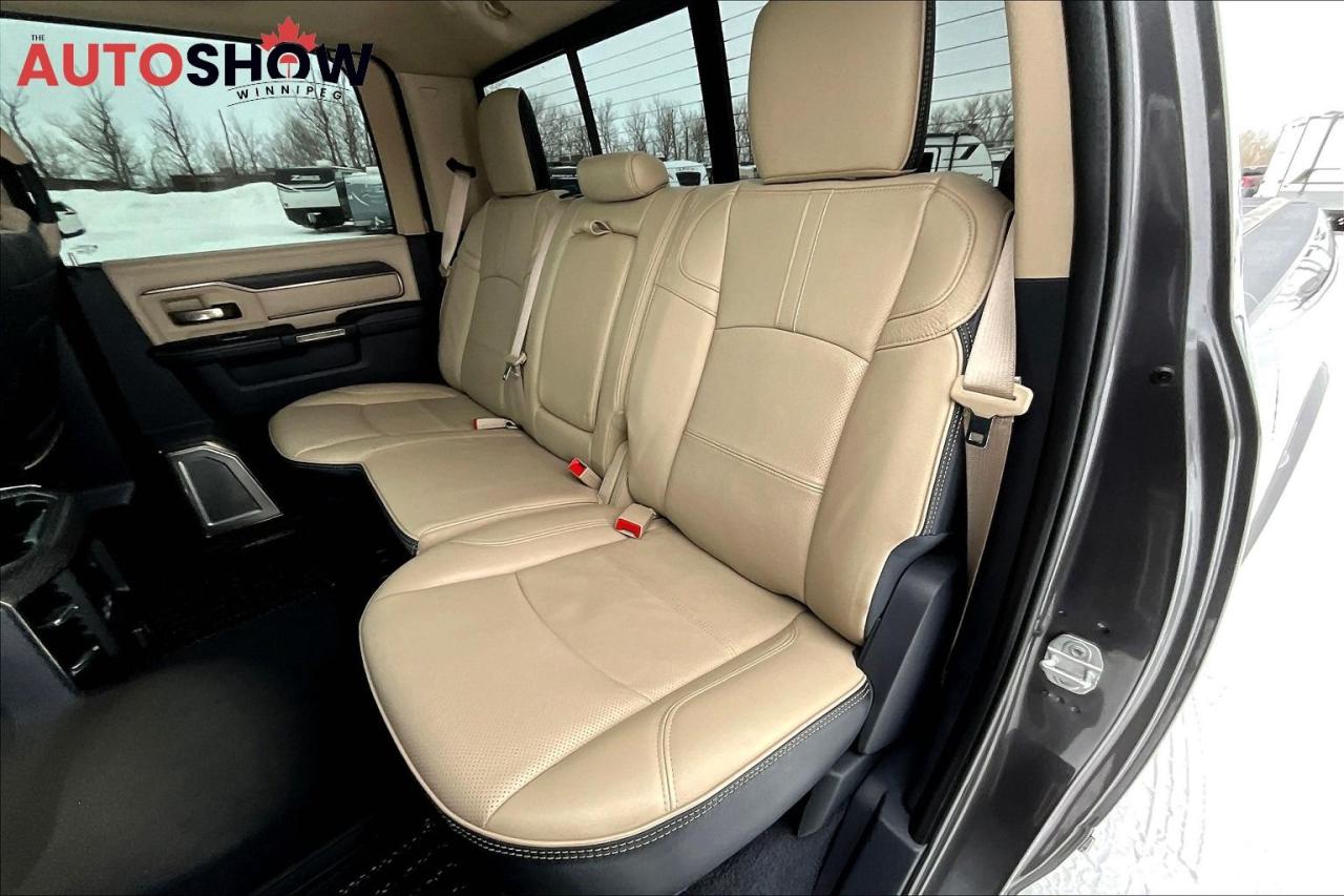 Surround View Camera, Heated & Ventilated Front Seats, Heated Rear Seats, Heated Steering Wheel, Power Driver & Passenger Seats, Front Dual Zone Climate Control, 17-Speaker harman/kardon Prem Sound, Adaptive Cruise Control w/Stop, Adjustable pedals, Uconnect 5 Navigation w/12\"\" Display, Apple CarPlay/Android Auto, Electronic Stability Control, Forward Collision Warning, Parking Distance Sensor, Lane Keep Assist, Blind Spot Alert, Hill Start Assist, Trailer Sway Damping, Electronic Roll Mitigation, Rain sensing wipers, Traction Control, Garage Door Transmitter.4WD HO Turbodiesel 6-Speed AutomaticHere at The Auto Show Winnipeg our vehicles are reconditioned to the highest standard, regardless of which vehicle you are purchasing from us. We go above and beyond the Manitoba Safety Standards to ensure our clients highest satisfaction with our vehicles. Whether it's our reconditioning process on the vehicle's exterior, or under the hood, every vehicle is handled with pride and care.We strive for accuracy in our vehicle listings, but occasionally errors in listed features or options may occur. To ensure the unit meets your needs, we encourage you to contact one of our sales associates for confirmation. Will accept trades. Please call |204|5606287 or View at 3165 McGillivray Blvd. (Conveniently located two minutes West from Costco at corner of Kenaston and McGillivray Blvd.) In addition to this used Ram 3500 please view our complete inventory of used trucks, used SUVs, used Vans, used RVs, and used Cars in Winnipeg on our website: \"\"WWW AUTOSHOWWINNIPEG com\"\" Complete comprehensive warranty is available for this vehicle. Please ask for warranty option details. All advertised prices, fees and payments plus taxes (where applicable). Winnipeg, MB - Manitoba Dealer Permit # 5851.