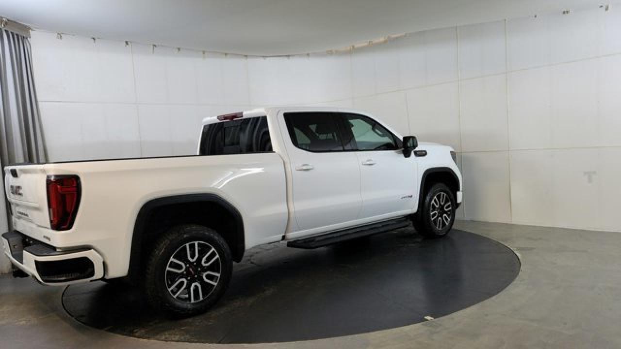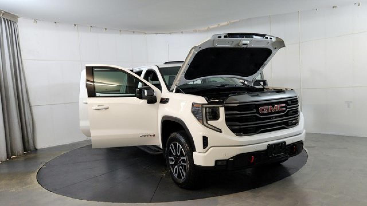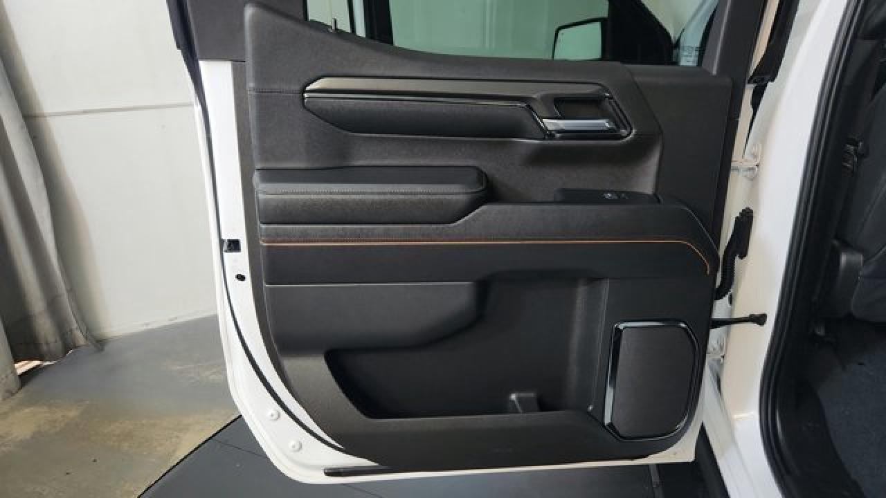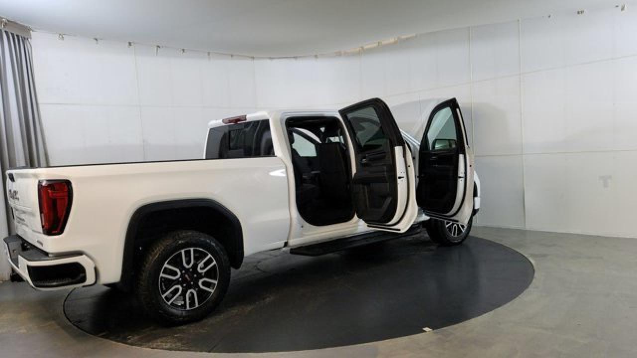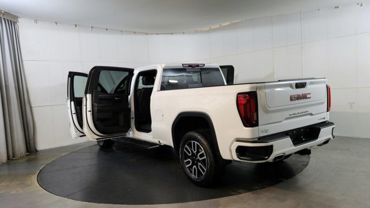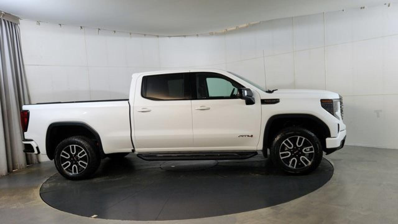 The 2023 GMC Sierra 1500 AT4 is a rugged yet refined off-road pickup, featuring a factory-installed 2-inch suspension lift, Rancho monotube shocks, skid plates, and mud-terrain Goodyear Wrangler tires that collectively enhance its capability for rough terrain. It's powered by a 6.2 L V8 gas engine paired with a 10-speed automatic transmission. Inside, the AT4 balances comfort and tech with heated and ventilated Jet Black leather seats with Kalahari accents, a 13.4 touchscreen infotainment system (with available Google built-in), a 12.3 digital driver display (and optional 15 head-up display), as well as GMC Pro Safety features like automatic emergency braking and lane-keep assist.