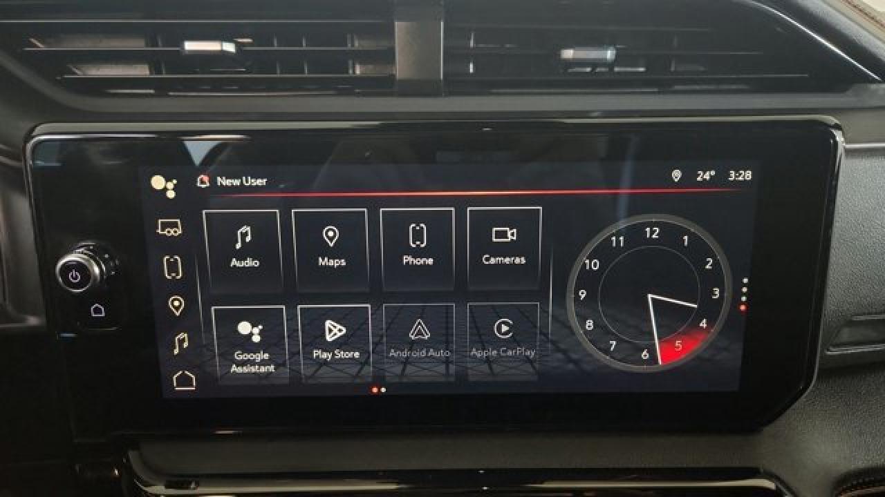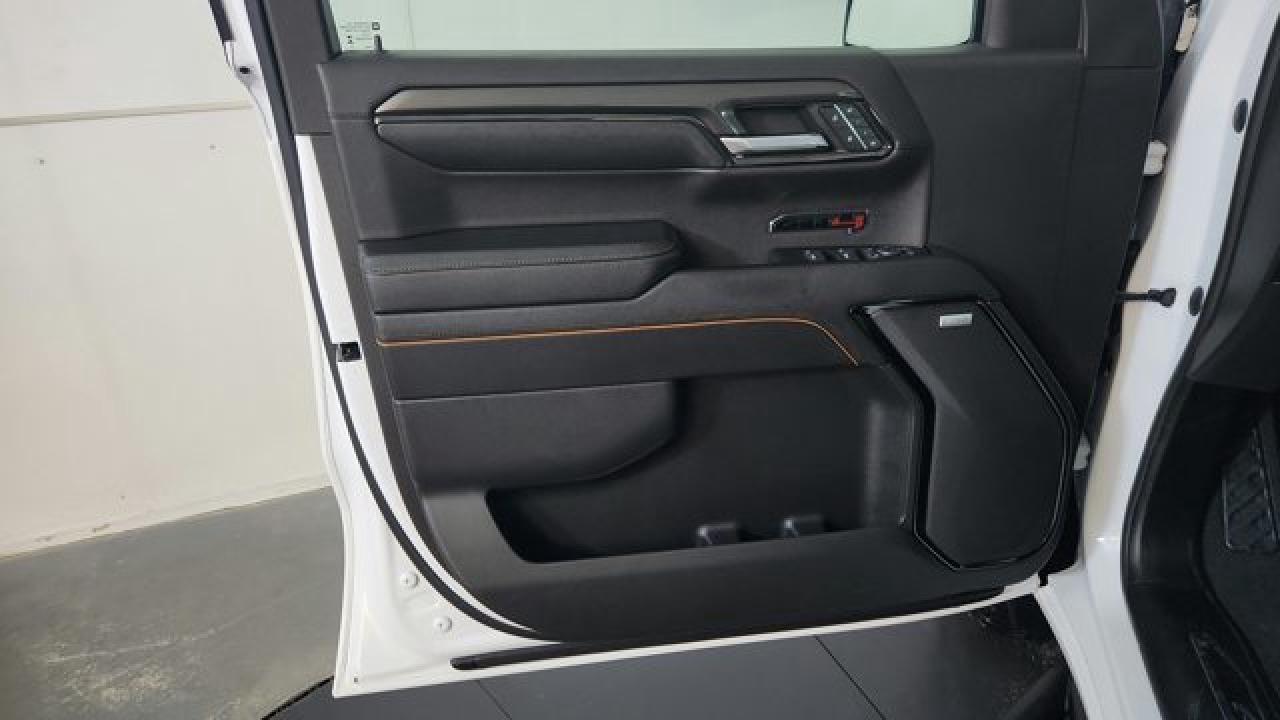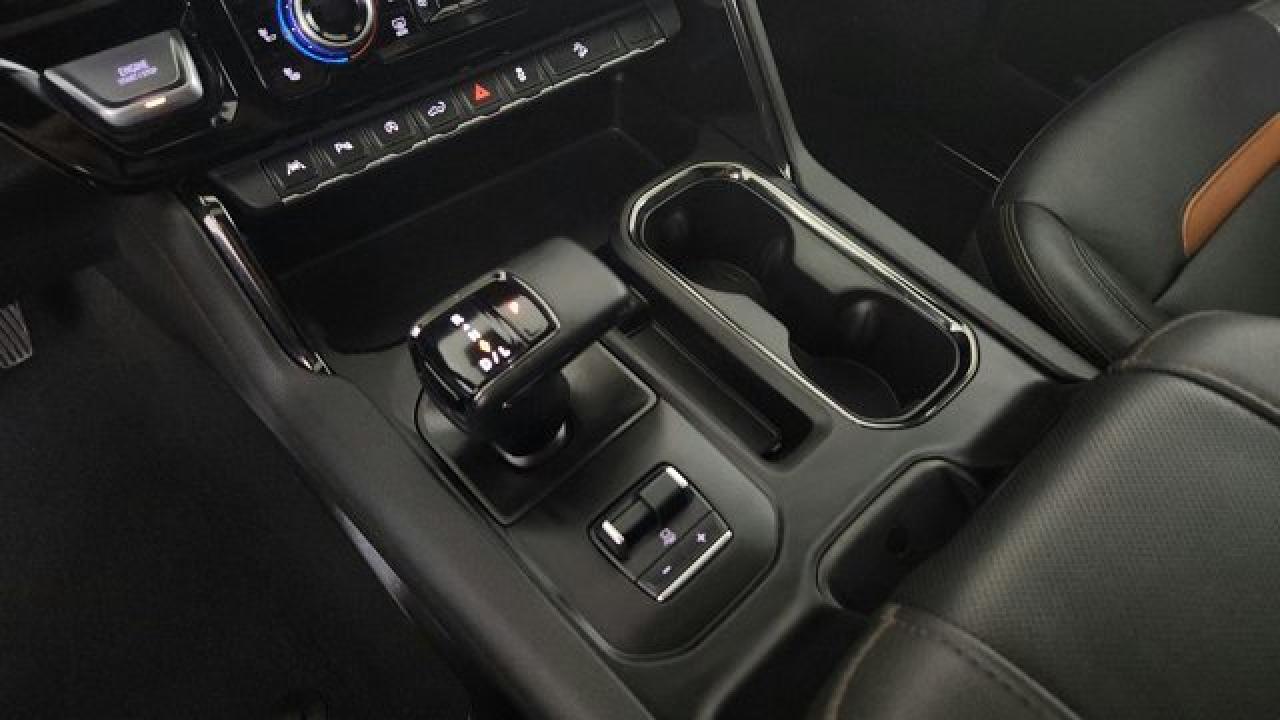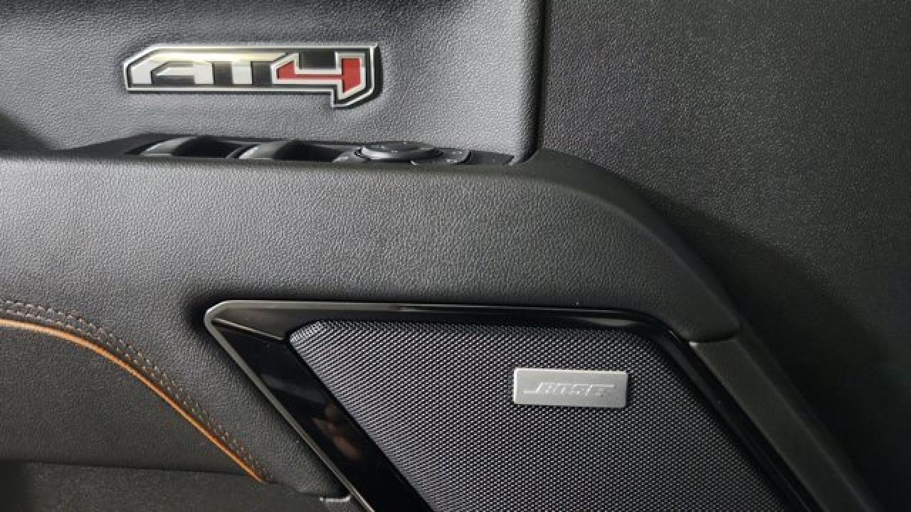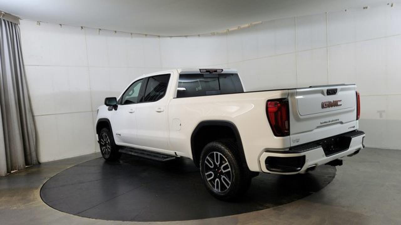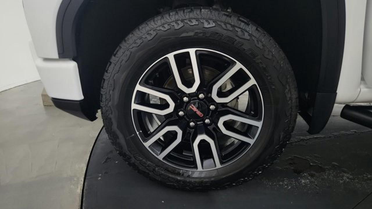 The 2023 GMC Sierra 1500 AT4 is a rugged yet refined off-road pickup, featuring a factory-installed 2-inch suspension lift, Rancho monotube shocks, skid plates, and mud-terrain Goodyear Wrangler tires that collectively enhance its capability for rough terrain. It's powered by a 6.2 L V8 gas engine paired with a 10-speed automatic transmission. Inside, the AT4 balances comfort and tech with heated and ventilated Jet Black leather seats with Kalahari accents, a 13.4 touchscreen infotainment system (with available Google built-in), a 12.3 digital driver display (and optional 15 head-up display), as well as GMC Pro Safety features like automatic emergency braking and lane-keep assist.