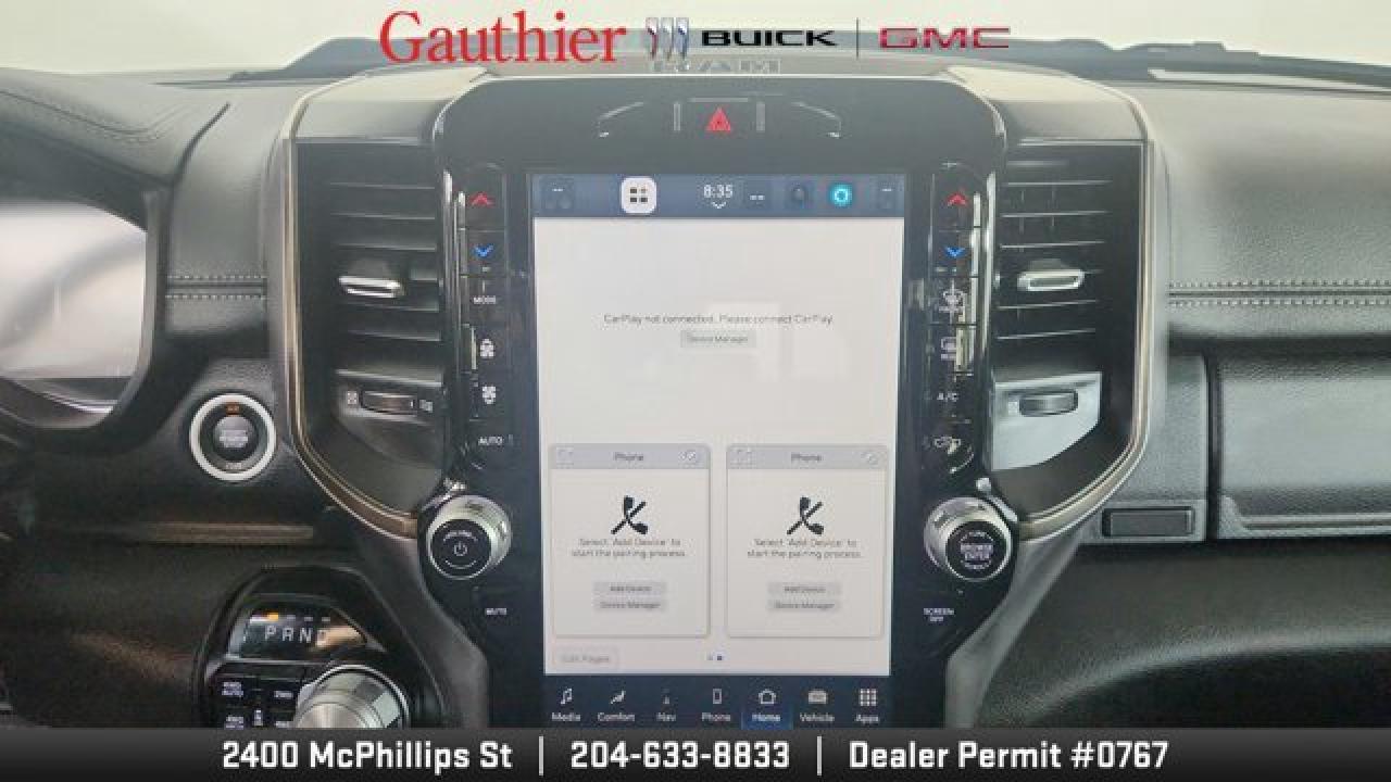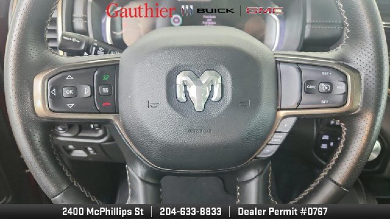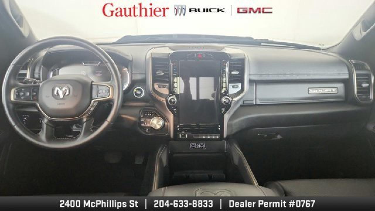 The 2023 Ram 1500 Sport pairs a potent 5.7 L HEMI V8 with an 8-speed automatic transmission and 4*4 capability to deliver strong performance and towing confidence. Its bold, athletic styling includes a sport performance hood and 20-inch wheels. Inside, it offers a comfortable and tech-rich cabin with a large touchscreen infotainment system featuring Apple CarPlay/Android Auto, heated front seats and steering wheel, power-adjustable seating, and premium connectivity like Bluetooth and navigation. The Sport also includes practical features such as multi-zone climate control, a backup camera, cruise control, and a range of safety and convenience systems that make it a capable, well-rounded pickup for both daily driving and work duties.
