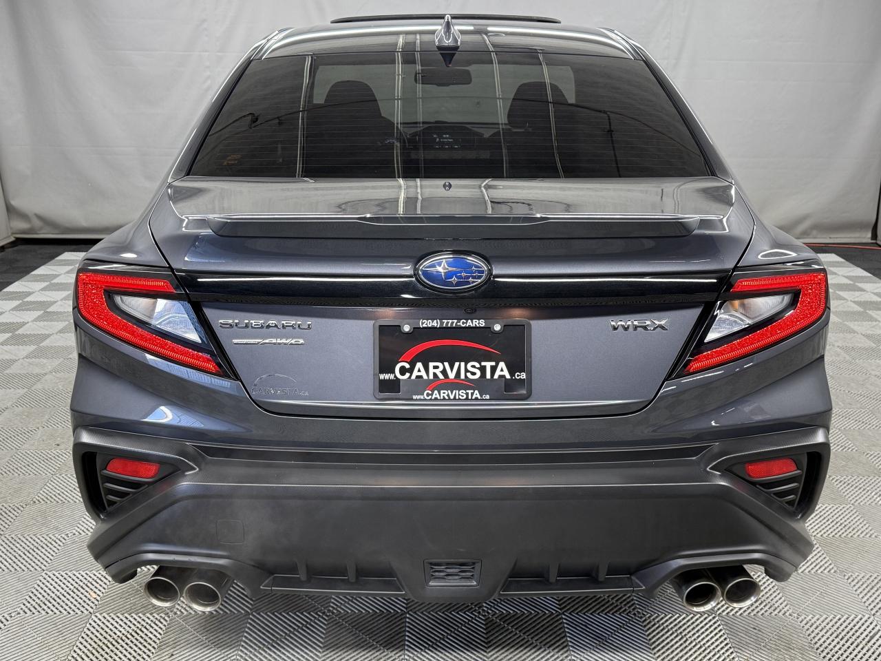 On the outside, the WRX Sport Tech commands attention with its aggressive hood scoop, LED headlights, 18 inch dark alloy wheels, quad exhaust outlets, and aerodynamic design that perfectly blends style with function.