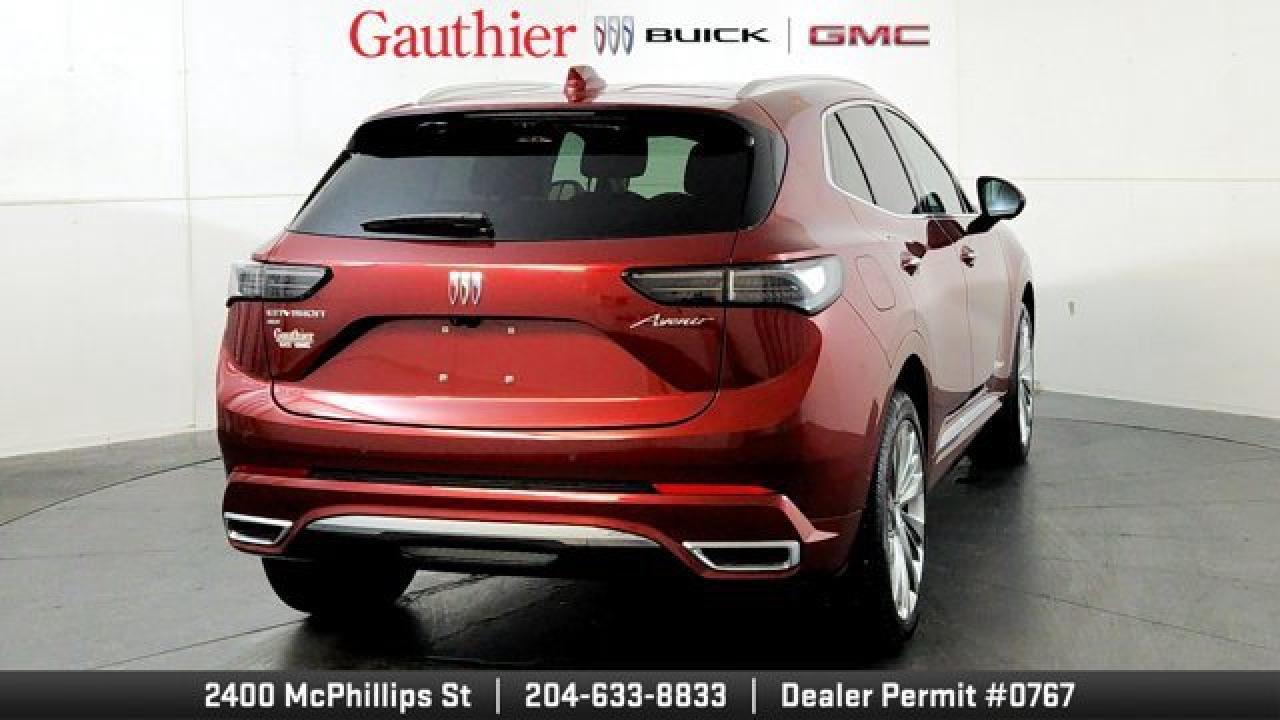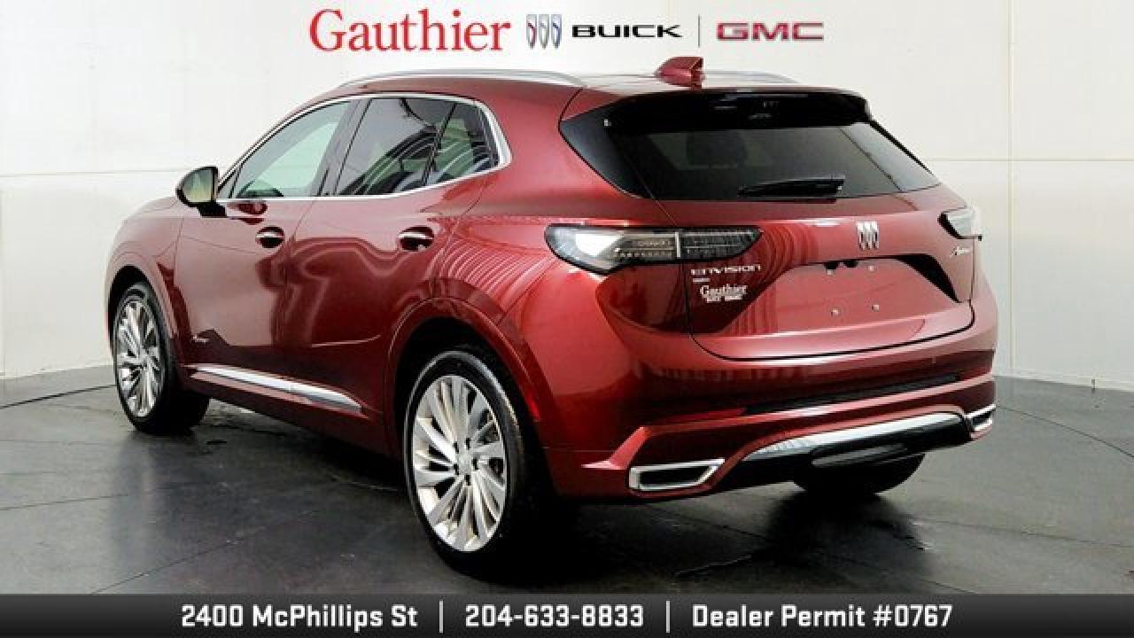 The 2024 Buick Envision Avenir is a premium compact SUV that combines refined luxury with advanced technology, featuring quilted perforated leather seats that are heated, ventilated, and equipped with a massaging driver's seat, as well as a panoramic moonroof and a hands-free programmable power liftgate for convenience and comfort. Its cabin is anchored by an ultrawide 30-inch diagonal infotainment display with Google built-in, a Bose premium audio system, wireless smartphone charging, and a head-up display for a connected and intuitive driving experience. On the exterior and performance side, the Avenir trim rides on 20-inch alloy wheels with a Pearl Nickel finish, offers Buick's QuietTuning acoustic technology for a quieter ride, and includes a suite of advanced safety and driver-assist features with standard all-wheel drive for confident, all-season capability.