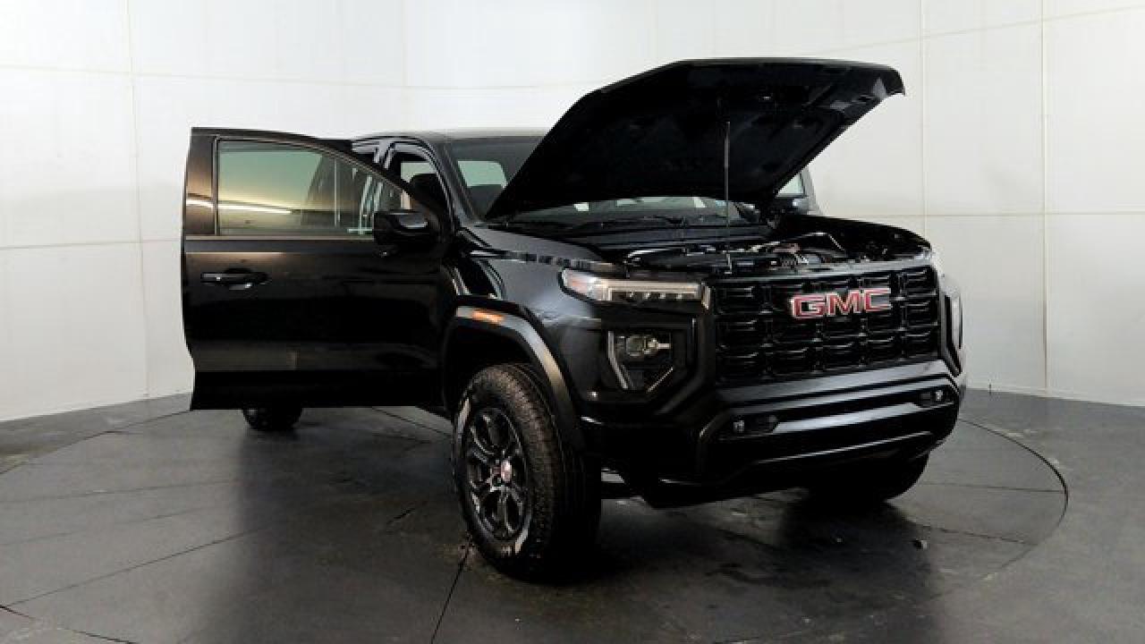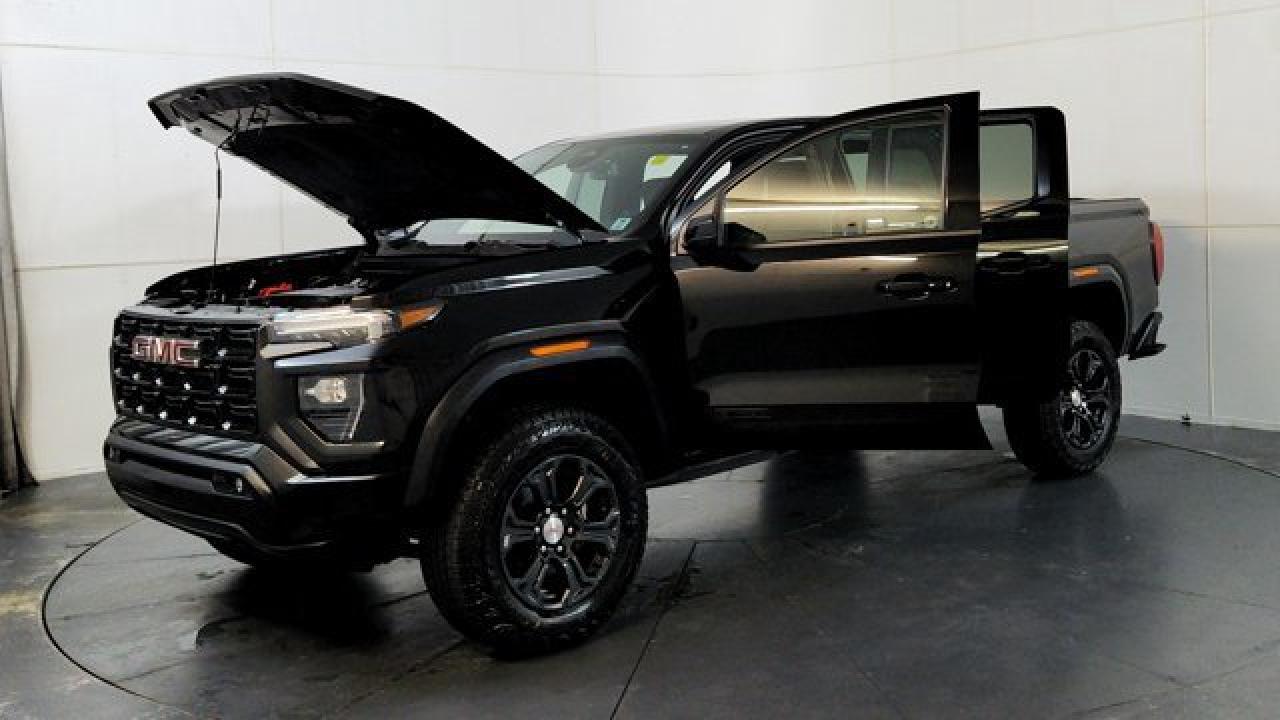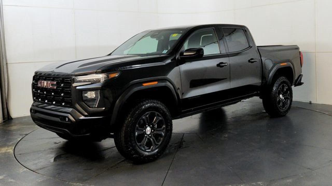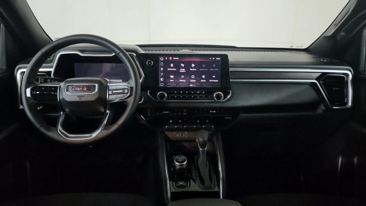The 2024 GMC Canyon Elevation comes standard with a 310-hp TurboMax 2.7-L inline-4 gas engine, paired with an 8-speed automatic transmission and four-wheel drive. It includes rugged styling and capability features like 18-inch dark grey aluminum wheels with all-terrain tires, an off-road performance display, ground clearance around 9.6 inches, plus a factory-lifted suspension. Tech and comfort aren't ignored --- you get an 11.3 infotainment center screen, wireless Apple CarPlay and Android Auto, a class-leading 11.0-inch digital driver display, keyless open/start, rear-vision camera with hitch view, and available convenience packages that add features like a MultiStow tailgate.