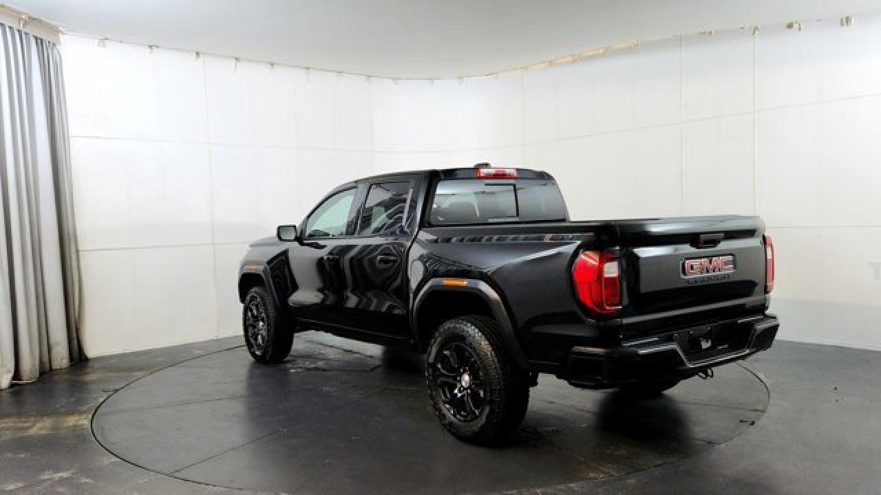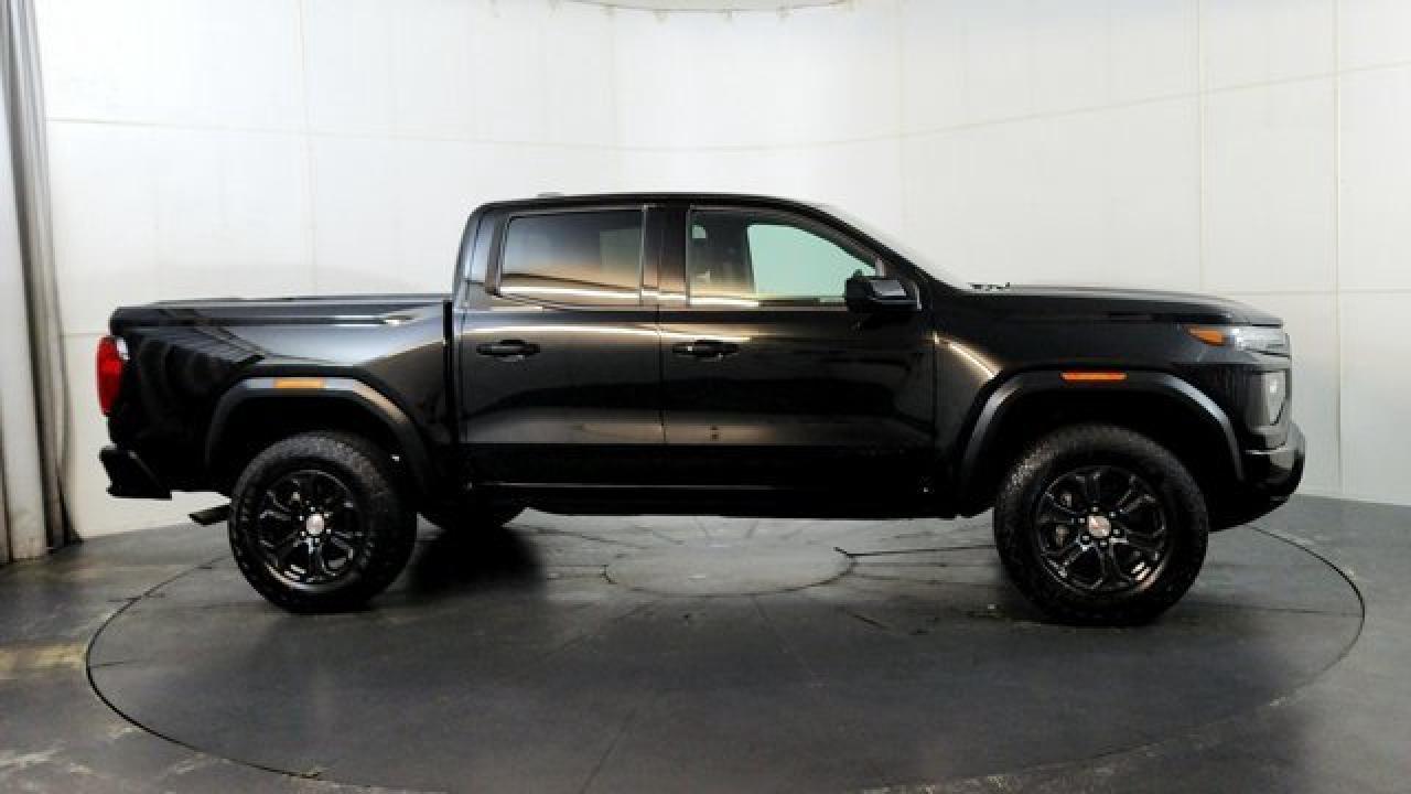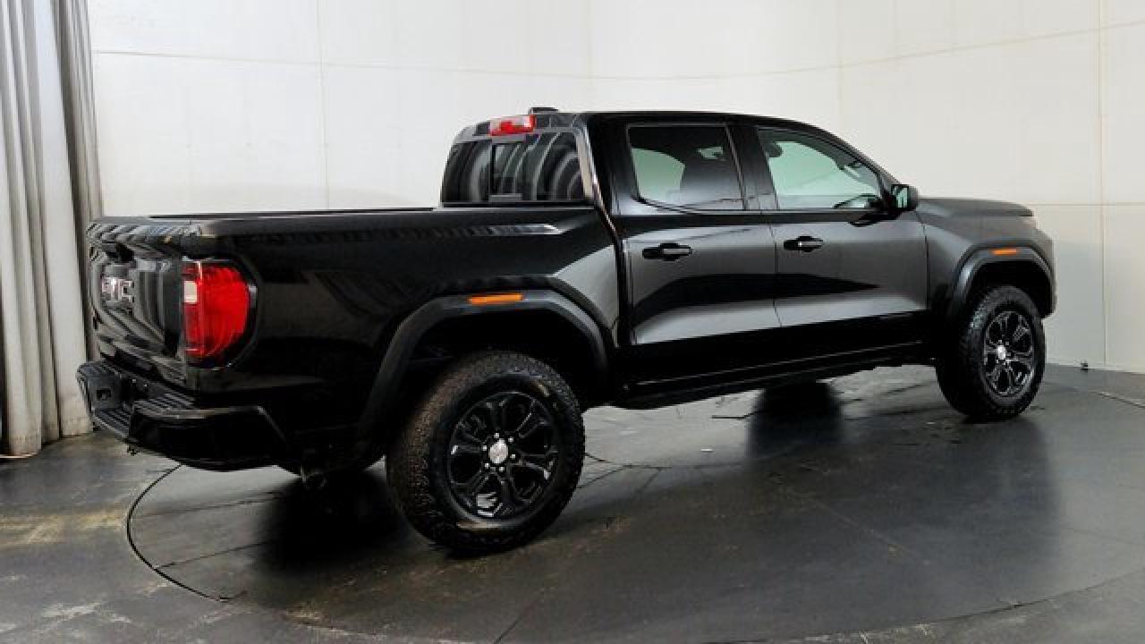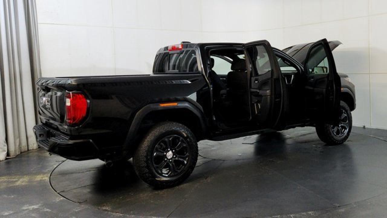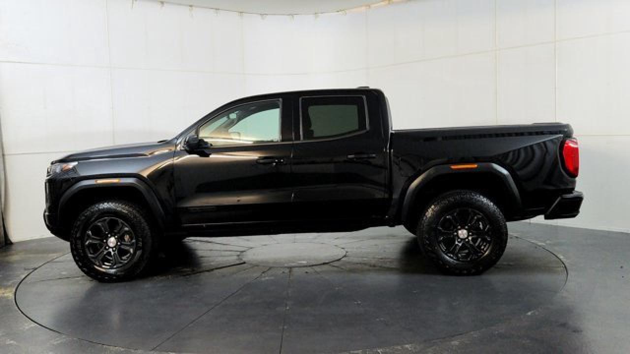 The 2024 GMC Canyon Elevation comes standard with a 310-hp TurboMax 2.7-L inline-4 gas engine, paired with an 8-speed automatic transmission and four-wheel drive. It includes rugged styling and capability features like 18-inch dark grey aluminum wheels with all-terrain tires, an off-road performance display, ground clearance around 9.6 inches, plus a factory-lifted suspension. Tech and comfort aren't ignored --- you get an 11.3 infotainment center screen, wireless Apple CarPlay and Android Auto, a class-leading 11.0-inch digital driver display, keyless open/start, rear-vision camera with hitch view, and available convenience packages that add features like a MultiStow tailgate.