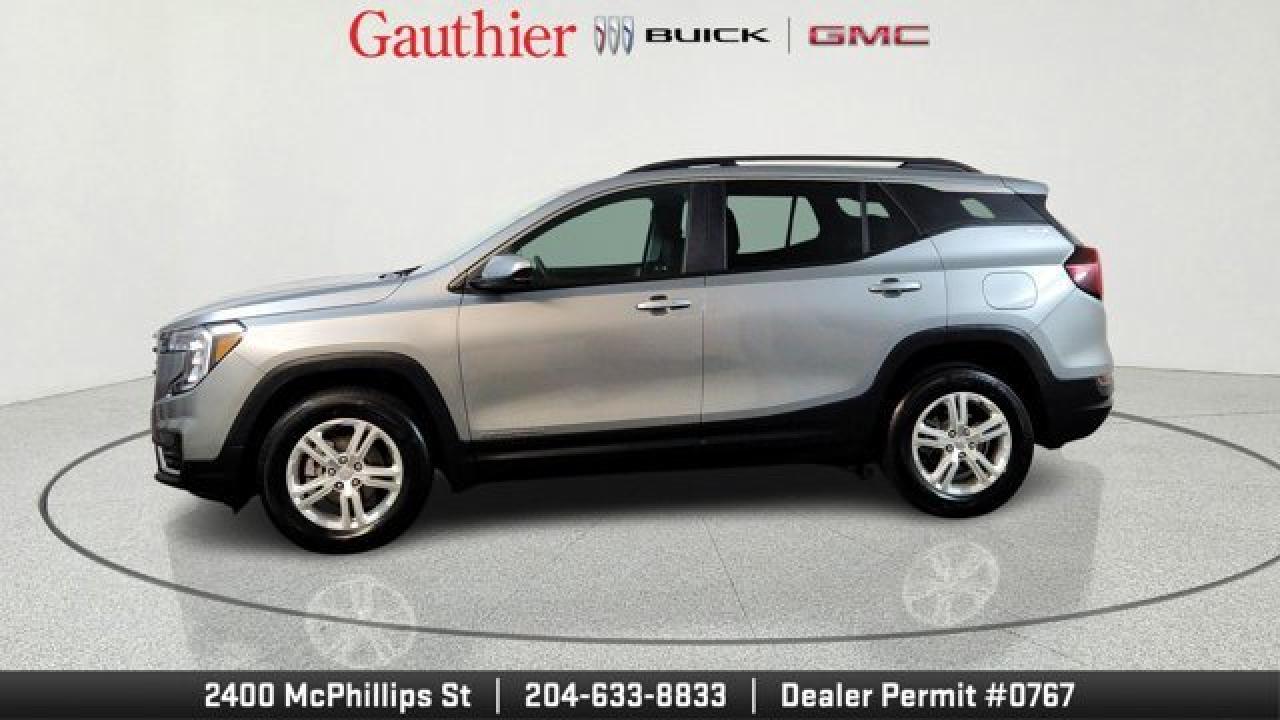 The 2024 GMC Terrain SLE is the base trim of this compact SUV, powered by a smooth 1.5 L turbocharged four-cylinder engine paired with a 9-speed automatic. It comes standard with modern essentials like signature GMC C-shaped LED lighting, a Rear Vision Camera, GMC Pro Safety driver-assist suite, and a 7-inch touchscreen with wireless Apple CarPlay and Android Auto for connectivity. Comfort and convenience are also part of the package with premium cloth seating, Traction Select System and keyless access.