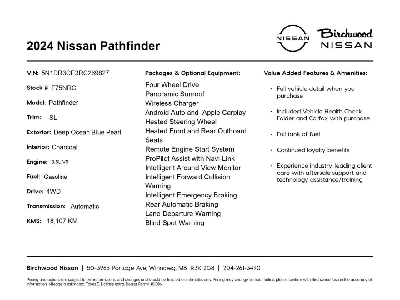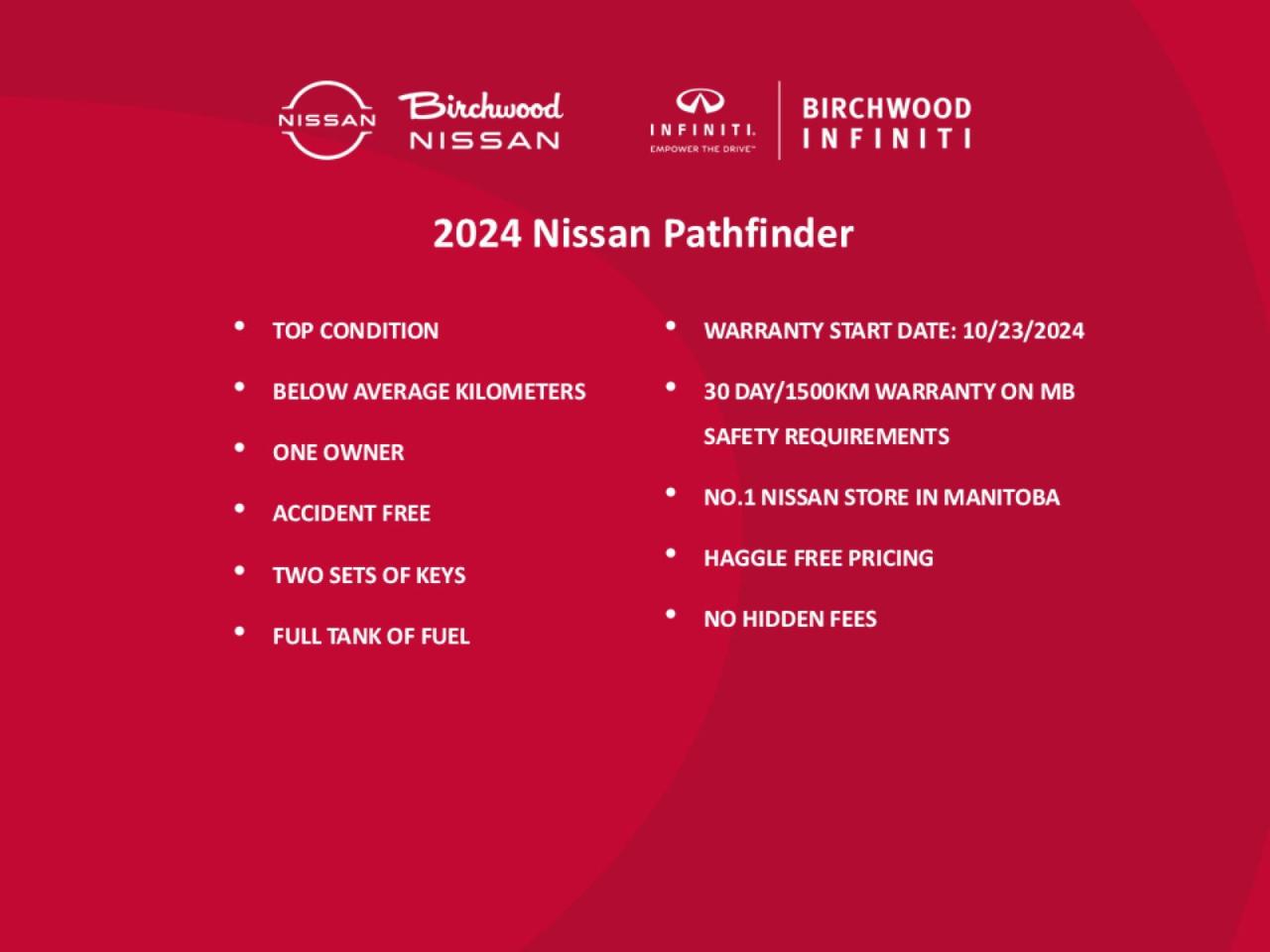 Don't miss this opportunity to own a nearly-new Pathfinder with all the bells and whistles. Visit Birchwood Nissan today to experience this exceptional SUV for yourself. Schedule a test drive, explore financing options, or contact our friendly staff for any questions. Your next adventure awaits in this feature-packed Pathfinder!