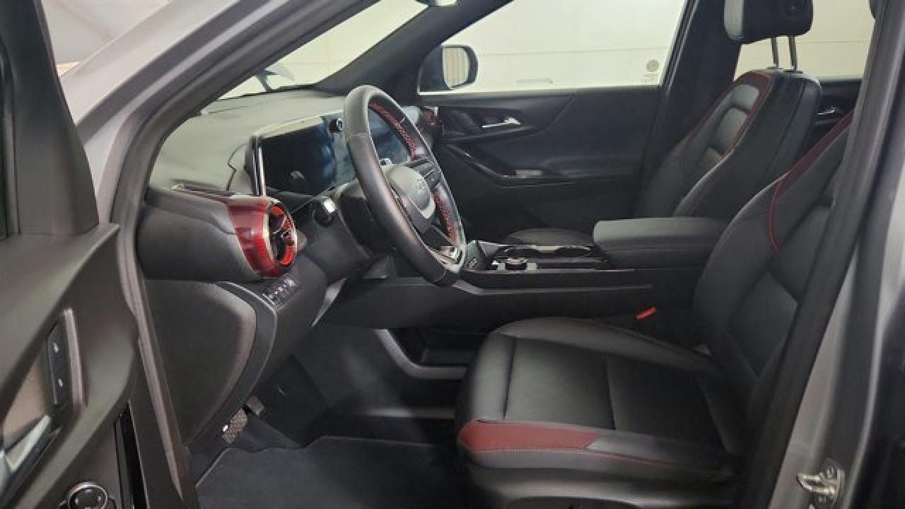 The 2025 Chevrolet Equinox AWD RS pairs a 1.5-litre turbocharged four-cylinder engine with an 8-speed automatic transmission and all-wheel drive. Inside, it features a sporty RS-specific styling package (including 19-inch Carbon Flash machined aluminium wheels, blacked-out trim and optional ventilated front seats with heated rear outboard seats) alongside a high-tech cockpit with an 11.3-inch infotainment screen and an 11-inch digital instrument cluster. On the safety front, it comes equipped with the full suite of Chevrolet Safety Assist including automatic emergency braking, lane-keep assist, front pedestrian/bicyclist braking, and a following distance indicator, making it a well-rounded compact SUV in terms of performance, style and protection.