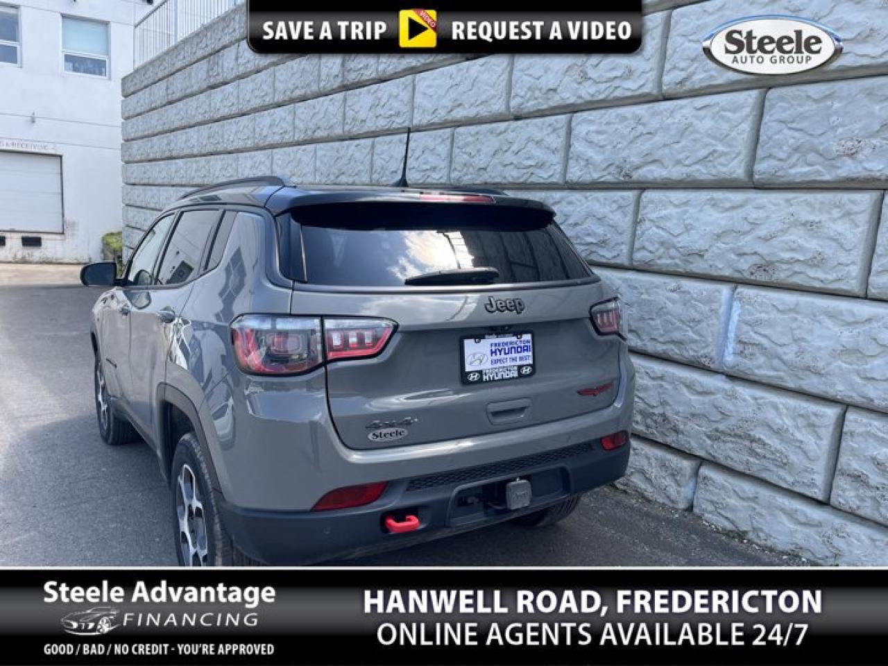 Market Value Pricing, 4WD. Recent Arrival! 9-Speed Automatic 4WD I4 4D Sport UtilityOdometer is 32344 kilometers below market average!2022 Jeep Compass TrailhawkAre you in need of a trustworthy auto dealership that can deliver comprehensive financing solutions for your next car, irrespective of your credit situation? Look no further than Fredericton Hyundai. Proudly being a part of the Steele Auto Group, Atlantic Canada's most extensive automobile network with an array of 28 distinctive vehicle brands spread across 58 locations (and growing) throughout New Brunswick, Nova Scotia, and PEI, we offer a diverse selection of sought-after mainstream automotive brands. At Fredericton Hyundai, we are fully aware that life doesn't always go according to plan, and unfortunate circumstances can befall the best of us. With this understanding in mind, we extend financing solutions to clients across the credit spectrum via our Steele Advantage Financing program. This unique initiative liaises with more than 20 esteemed financial institutions to secure the optimal financing arrangement for our customers. Regardless of whether you boast an impeccable credit record or are battling with credit issues, Fredericton Hyundai and the Steele Auto Group bring a wealth of knowledge and resources to assist you in securing the ideal vehicle and finance package. Coupled with our convenient door-to-door delivery services and unwavering dedication to superior customer service, Fredericton Hyundai and the Steele Auto Group solidify their position as your premier automotive solution provider in New Brunswick, Nova Scotia, and PEI.