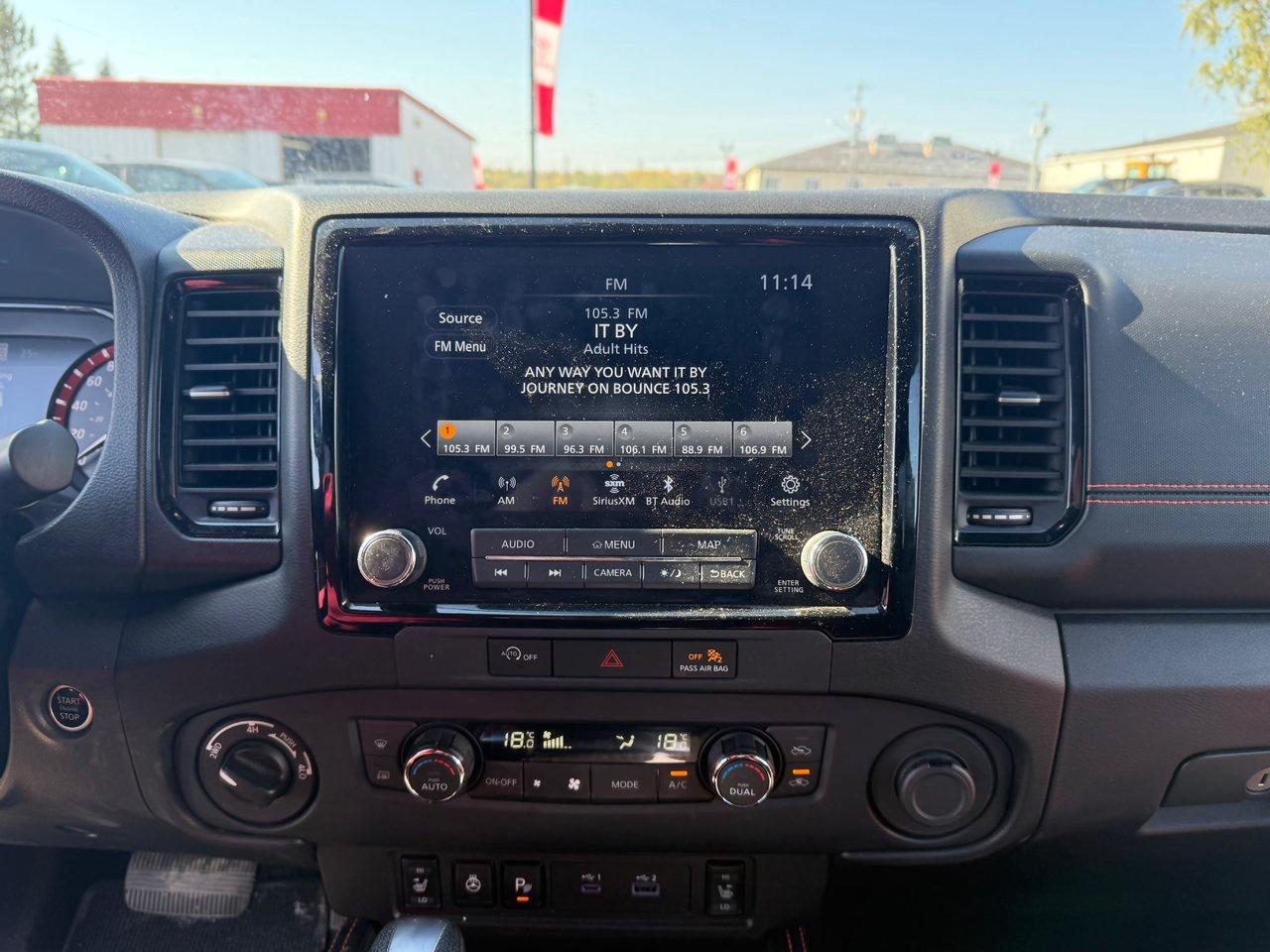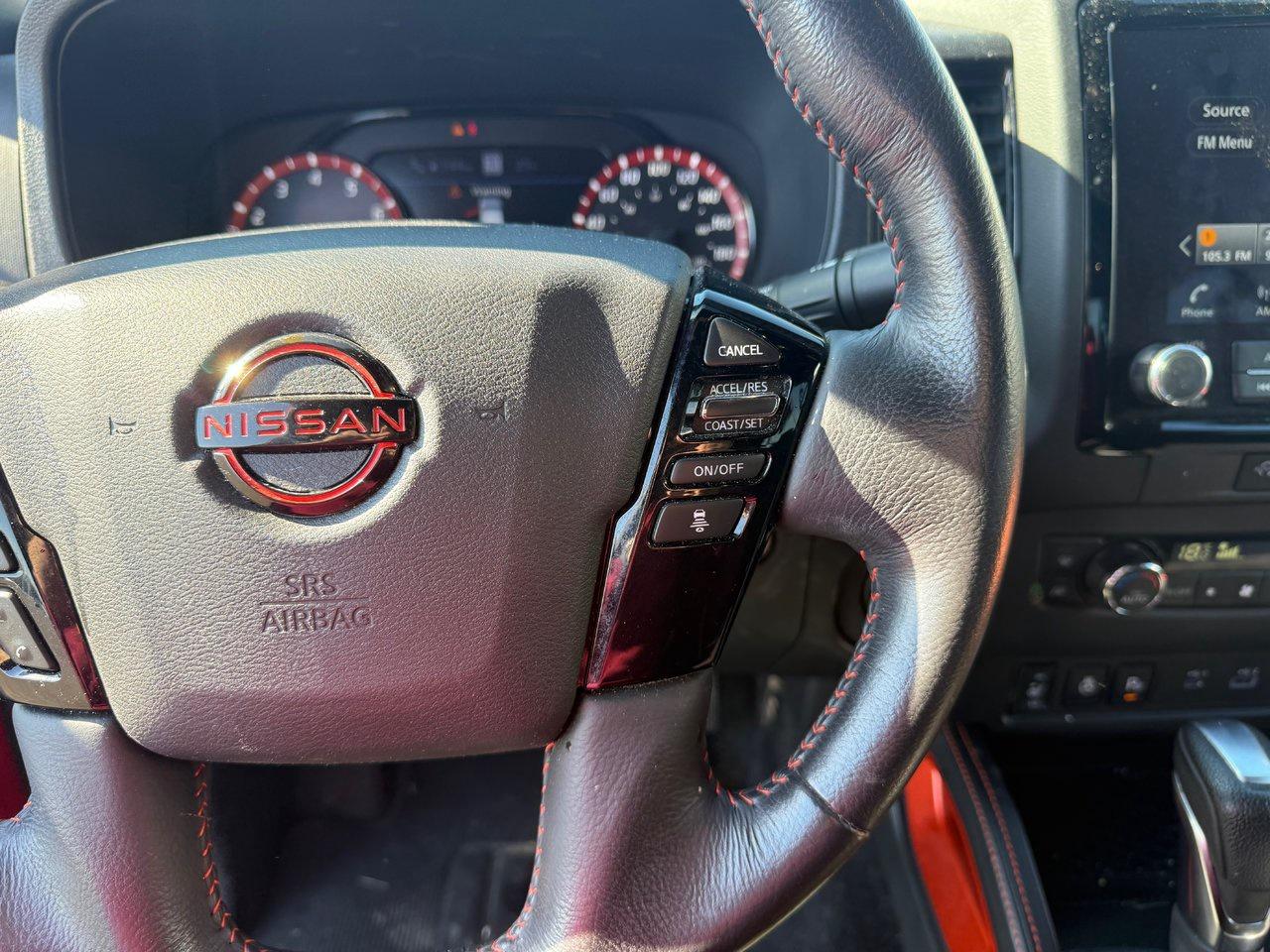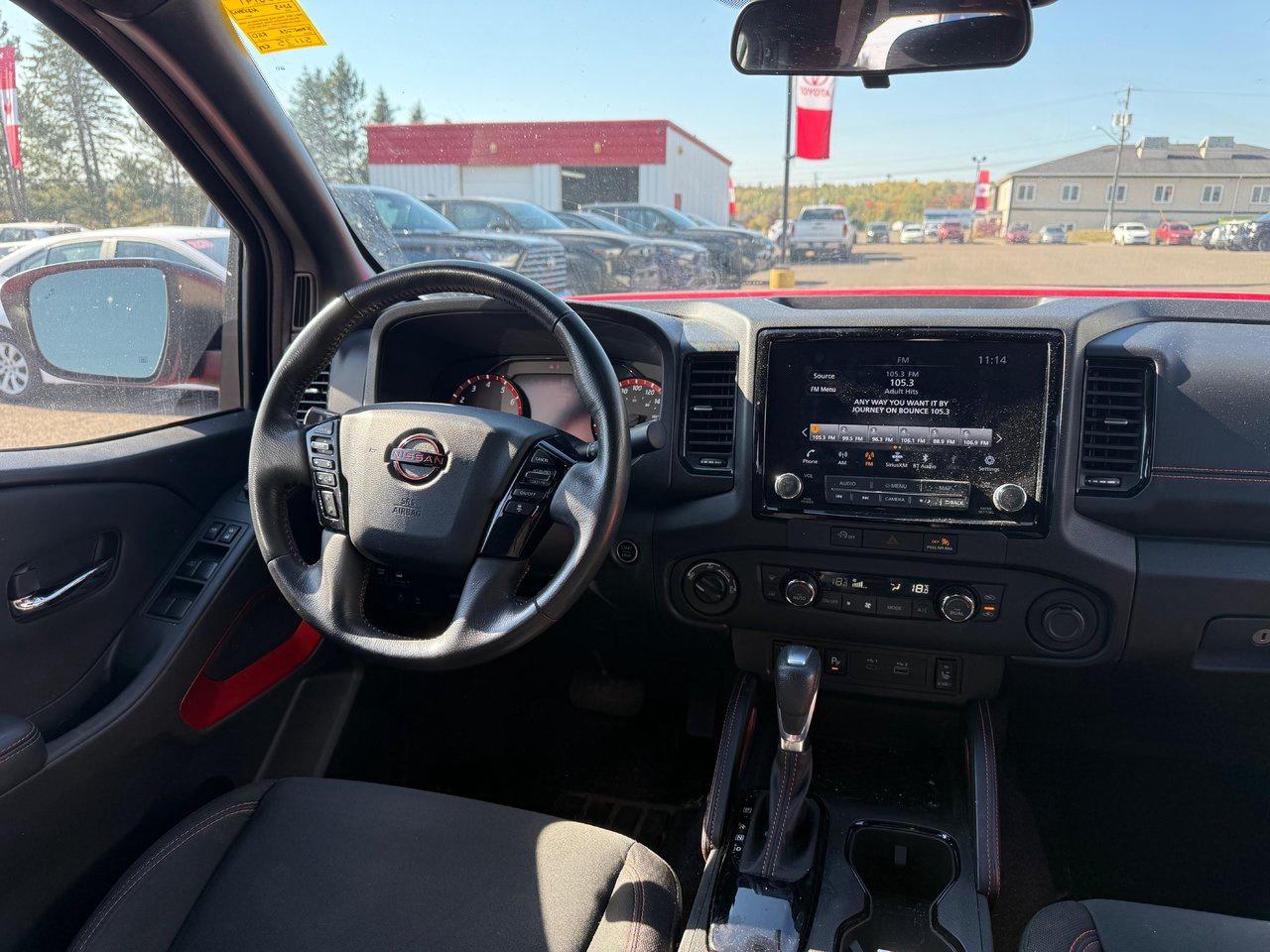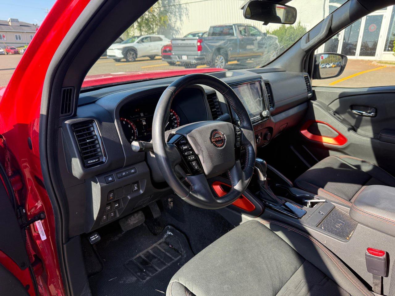 The 2023 Nissan Frontier PRO-4X 4X4 is a rugged and capable midsize pickup designed for both off-road adventures and daily driving. Powered by a strong V6 engine and equipped with advanced 4WD capability, it delivers confident performance in all terrains. Inside, it offers modern comfort and tech, including dual-zone climate control, heated front seats, a heated steering wheel, navigation, and a premium audio system. The cabin is thoughtfully designed with supportive bucket seats, a power driver’s seat, and a leather-wrapped steering wheel. Safety and convenience are enhanced with features such as blind-spot monitoring, lane departure warning, adaptive cruise control, rear cross-traffic alert, and Nissan’s Aerial View Display System for superior visibility. With LED headlights, fog lamps, tow hooks, and a factory bed liner, it’s built to handle work and play with style and confidence.