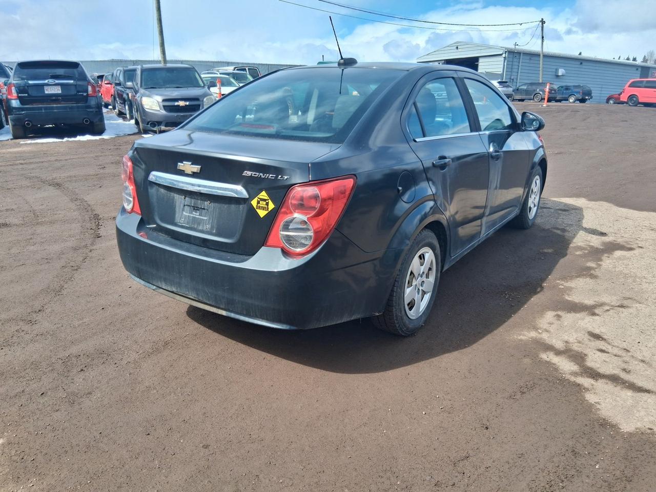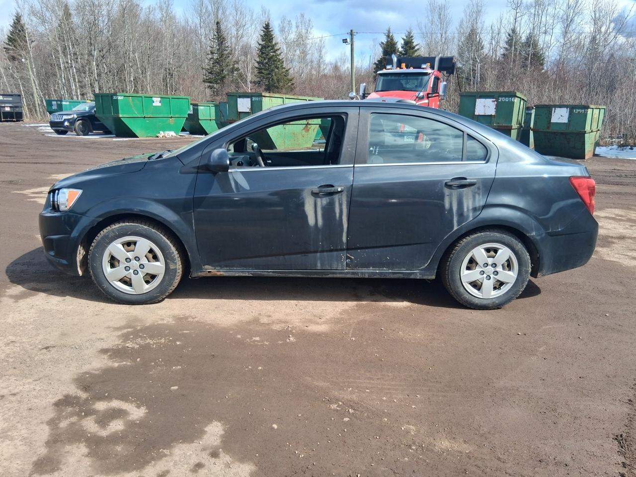 Drive away today in this jet black 2015 Chevrolet Sonic with just under 200,000 KMs. There is noticeable rust damage around the rocker panels and potentially a weak battery.