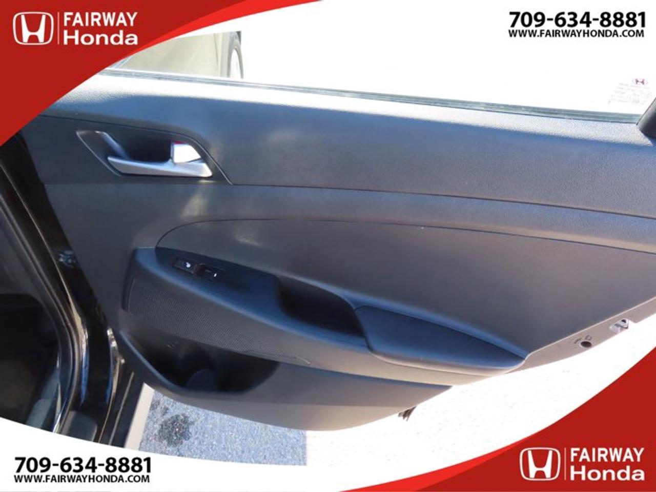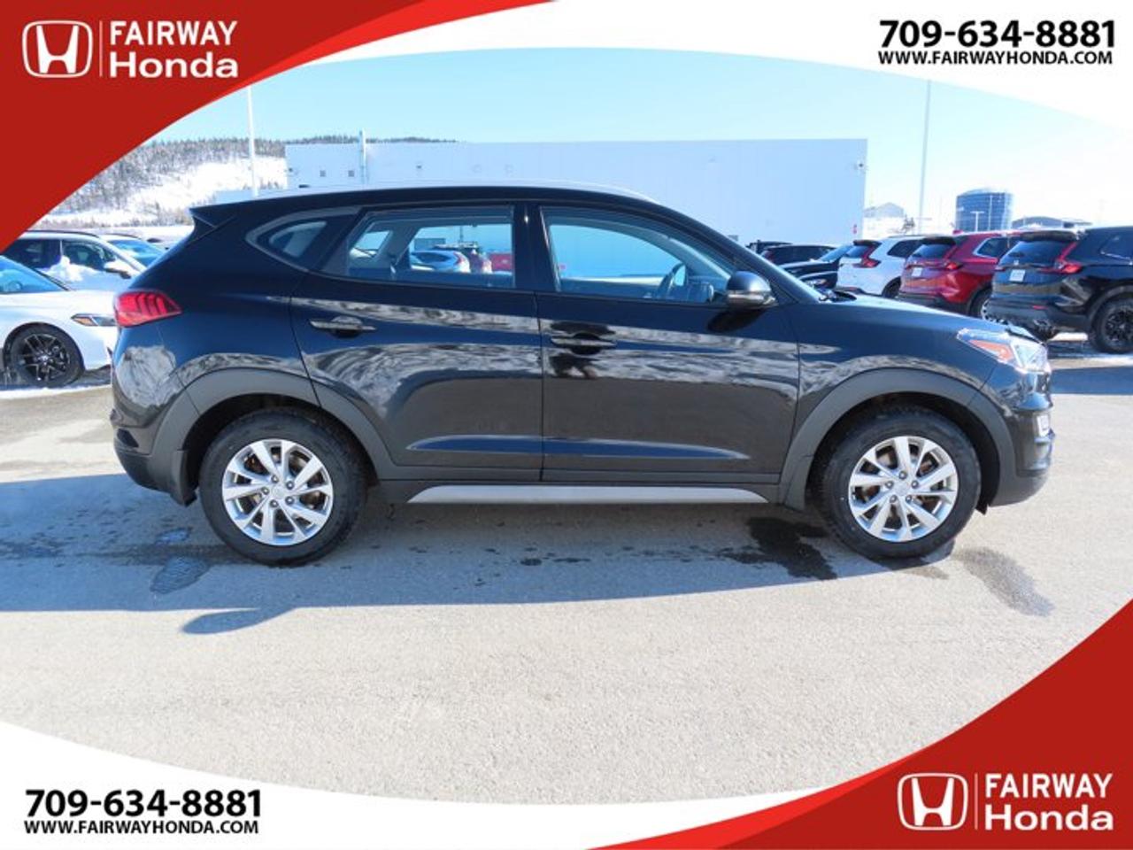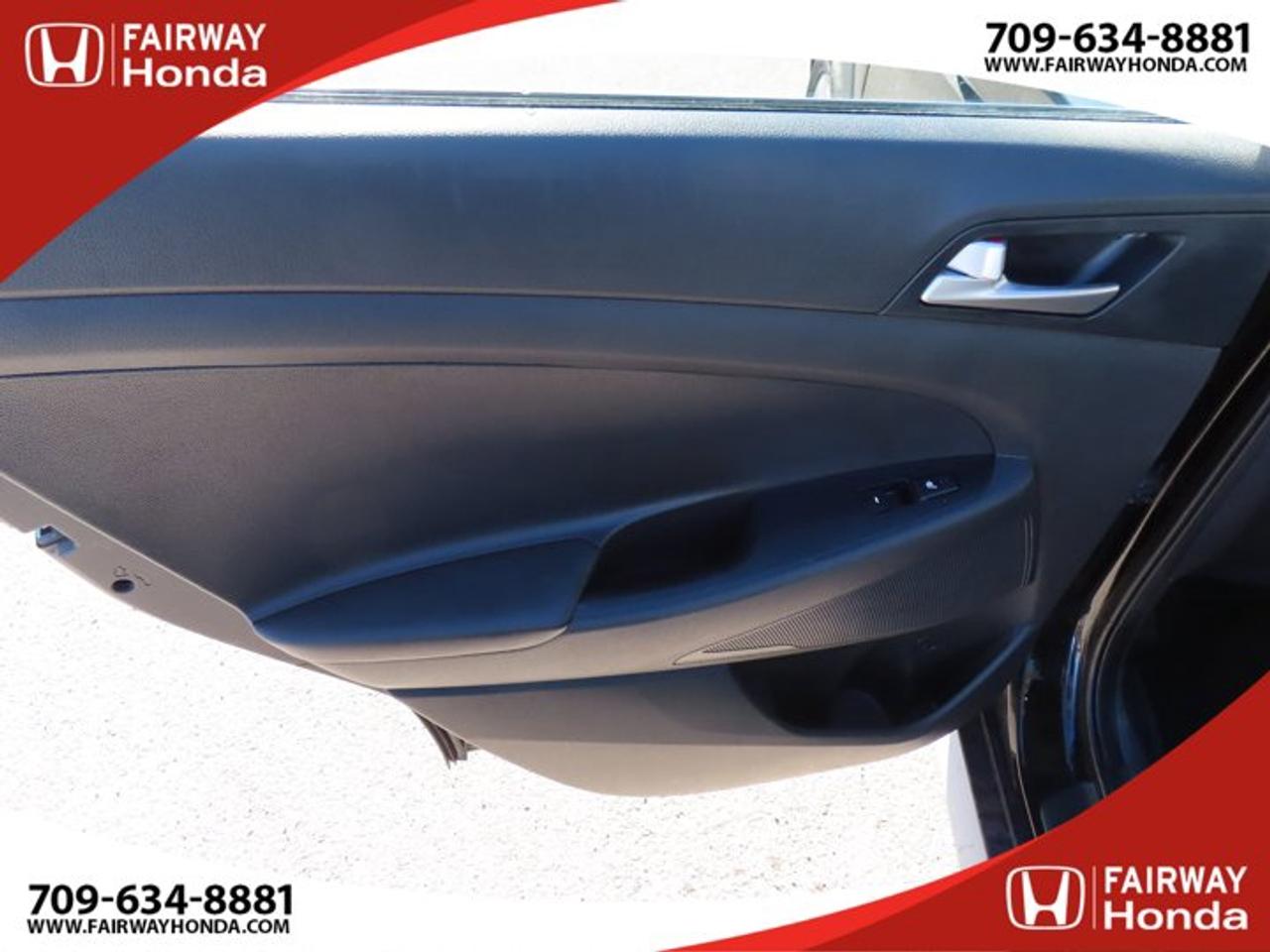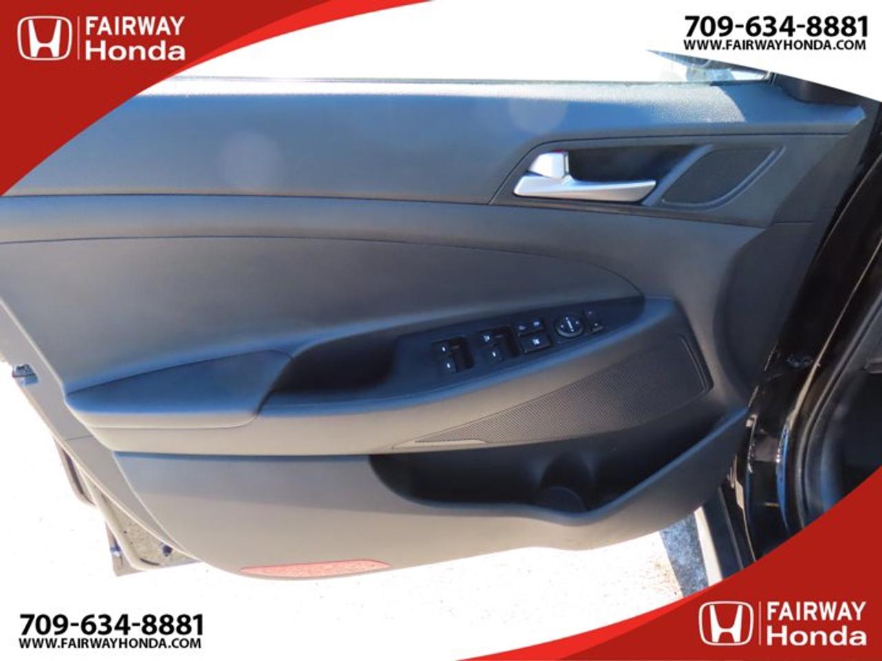 Recent Arrival!Black Noir Pearl 2019 Hyundai Tucson Preferred AWD 6-Speed Automatic with Overdrive 2.0L I4 DGI DOHC 16V LEV3-ULEV70 161hp*Professionally Detailed**Market Value Pricing*, AWD, 3.648 Axle Ratio, 4-Wheel Disc Brakes, 6 Speakers, ABS brakes, Air Conditioning, Alloy wheels, AM/FM radio, Anti-whiplash front head restraints, AppLink/Apple CarPlay and Android Auto, Brake assist, Bumpers: body-colour, Cloth Seat Trim, Delay-off headlights, Driver door bin, Driver vanity mirror, Dual front impact airbags, Dual front side impact airbags, Electronic Stability Control, Exterior Parking Camera Rear, Four wheel independent suspension, Front anti-roll bar, Front Bucket Seats, Front fog lights, Front reading lights, Fully automatic headlights, Heated door mirrors, Heated Front Bucket Seats (3-Steps), Heated front seats, Heated rear seats, Heated steering wheel, Illuminated entry, Leather Shift Knob, Occupant sensing airbag, Outside temperature display, Overhead airbag, Overhead console, Panic alarm, Passenger door bin, Passenger vanity mirror, Power door mirrors, Power steering, Power windows, Radio: AM/FM/MP3 Audio System, Rear anti-roll bar, Rear window defroster, Rear window wiper, Remote keyless entry, Roof rack: rails only, Security system, Speed control, Split folding rear seat, Spoiler, Steering wheel mounted audio controls, Tachometer, Telescoping steering wheel, Tilt steering wheel, Traction control, Trip computer, Turn signal indicator mirrors, Variably intermittent wipers, Wheels: 17" x 7.0J Aluminum.Reviews:* Most owners say this era of Tucson attracted their attention with unique exterior styling, and sealed the deal with a great balance of comfortable ride quality and sporty, spirited driving dynamics. Bang-for-the-buck was highly rated as well. Source: autoTRADER.caFairway Honda - Community Driven!