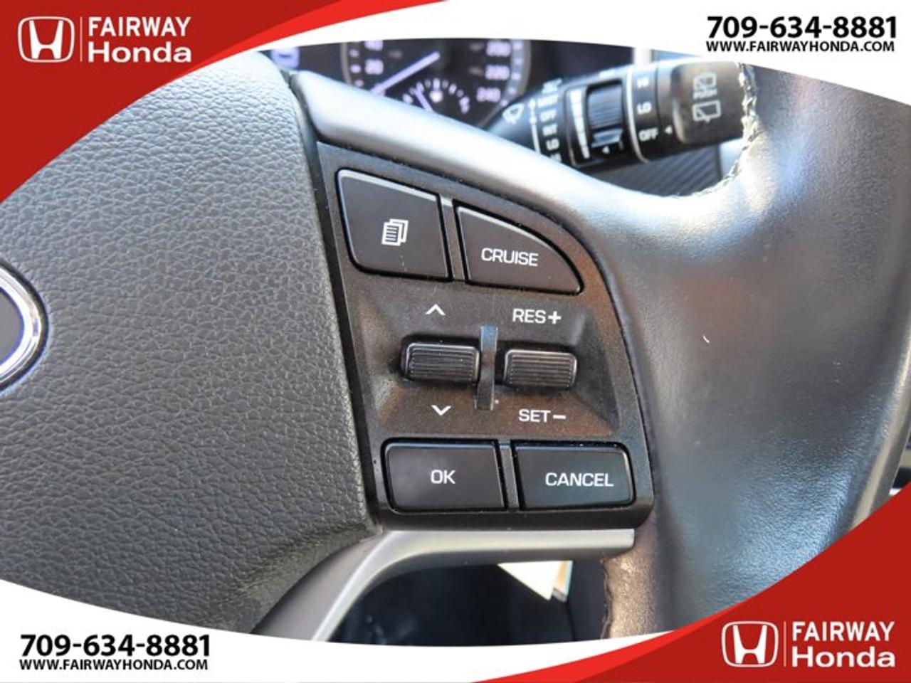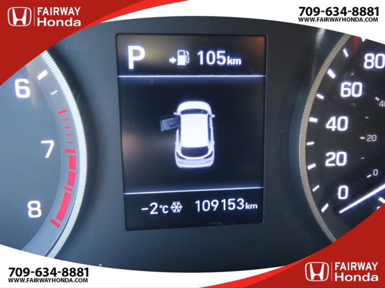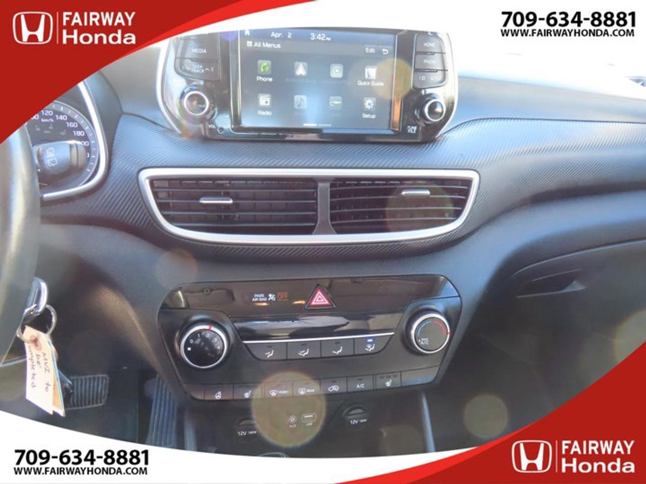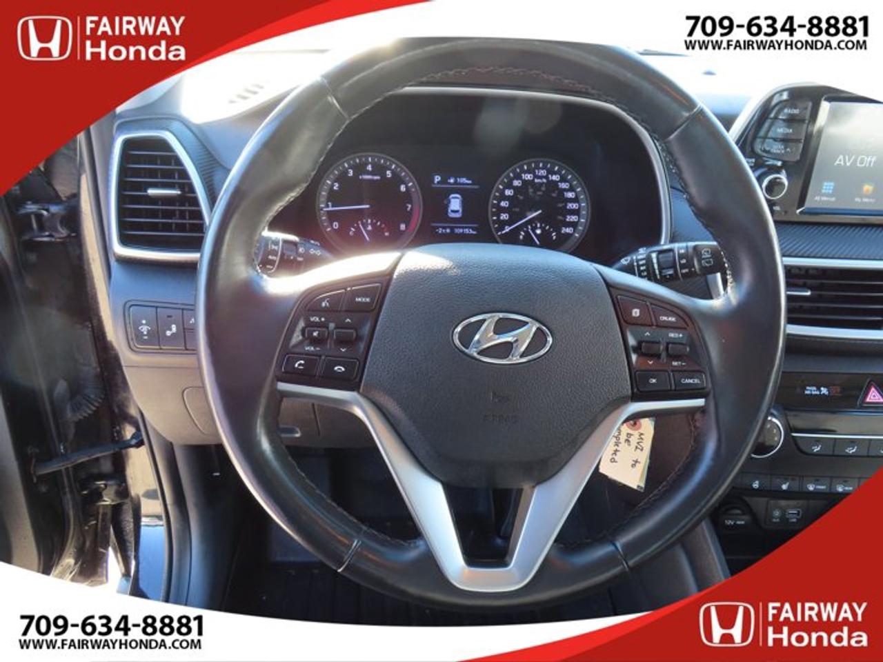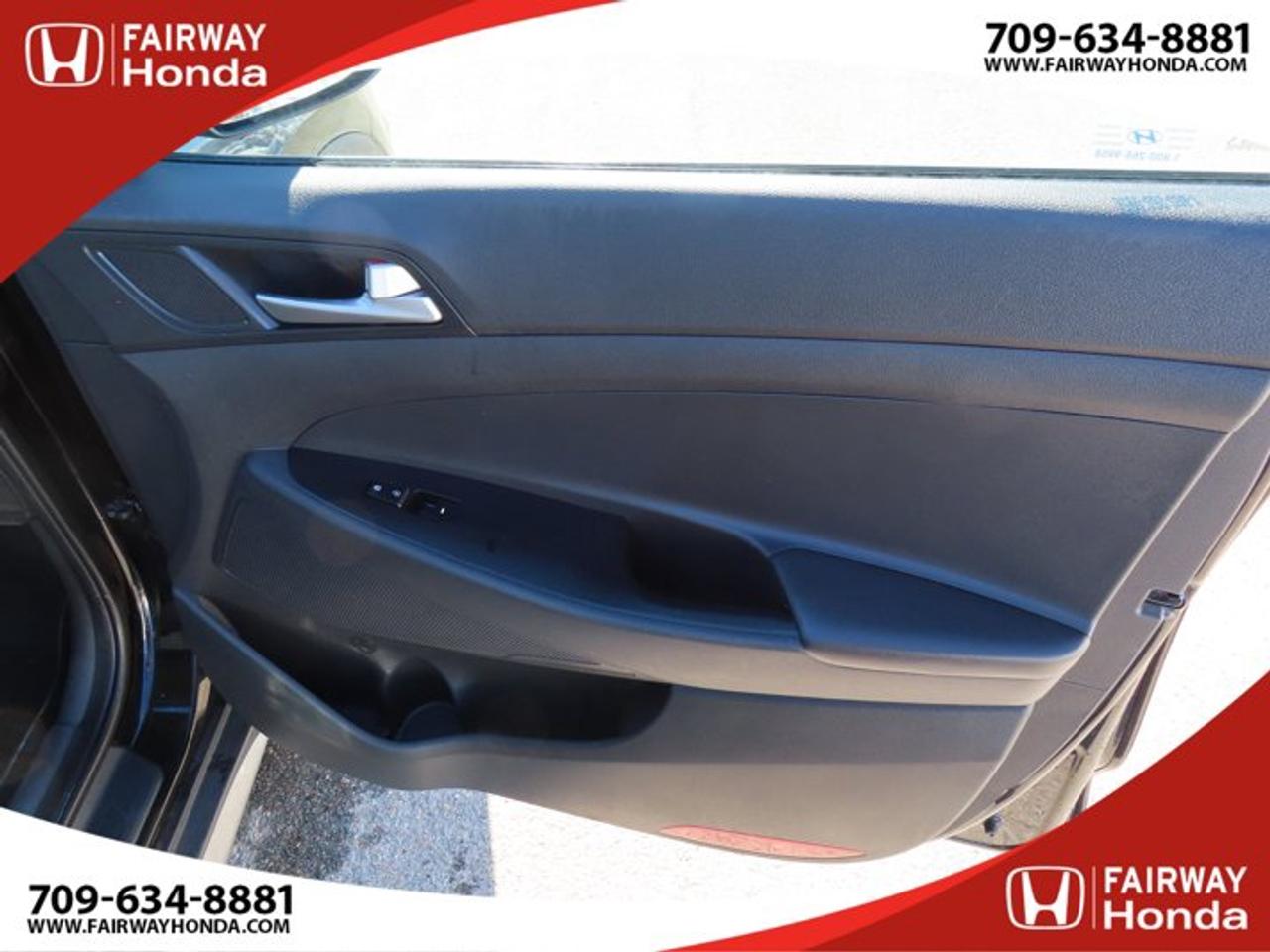 Recent Arrival!Black Noir Pearl 2019 Hyundai Tucson Preferred AWD 6-Speed Automatic with Overdrive 2.0L I4 DGI DOHC 16V LEV3-ULEV70 161hp*Professionally Detailed**Market Value Pricing*, AWD, 3.648 Axle Ratio, 4-Wheel Disc Brakes, 6 Speakers, ABS brakes, Air Conditioning, Alloy wheels, AM/FM radio, Anti-whiplash front head restraints, AppLink/Apple CarPlay and Android Auto, Brake assist, Bumpers: body-colour, Cloth Seat Trim, Delay-off headlights, Driver door bin, Driver vanity mirror, Dual front impact airbags, Dual front side impact airbags, Electronic Stability Control, Exterior Parking Camera Rear, Four wheel independent suspension, Front anti-roll bar, Front Bucket Seats, Front fog lights, Front reading lights, Fully automatic headlights, Heated door mirrors, Heated Front Bucket Seats (3-Steps), Heated front seats, Heated rear seats, Heated steering wheel, Illuminated entry, Leather Shift Knob, Occupant sensing airbag, Outside temperature display, Overhead airbag, Overhead console, Panic alarm, Passenger door bin, Passenger vanity mirror, Power door mirrors, Power steering, Power windows, Radio: AM/FM/MP3 Audio System, Rear anti-roll bar, Rear window defroster, Rear window wiper, Remote keyless entry, Roof rack: rails only, Security system, Speed control, Split folding rear seat, Spoiler, Steering wheel mounted audio controls, Tachometer, Telescoping steering wheel, Tilt steering wheel, Traction control, Trip computer, Turn signal indicator mirrors, Variably intermittent wipers, Wheels: 17" x 7.0J Aluminum.Reviews:* Most owners say this era of Tucson attracted their attention with unique exterior styling, and sealed the deal with a great balance of comfortable ride quality and sporty, spirited driving dynamics. Bang-for-the-buck was highly rated as well. Source: autoTRADER.caFairway Honda - Community Driven!