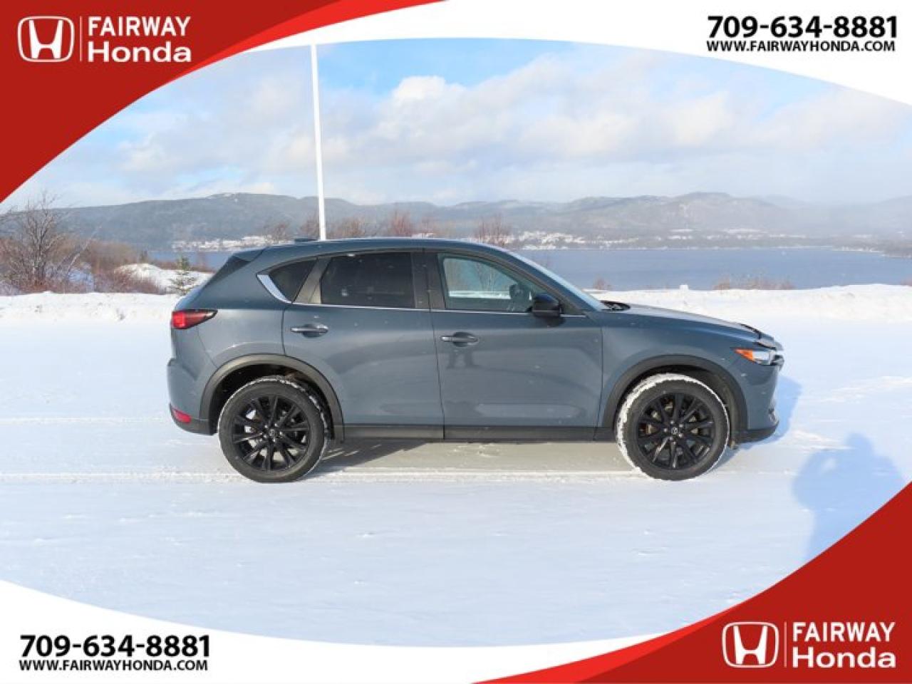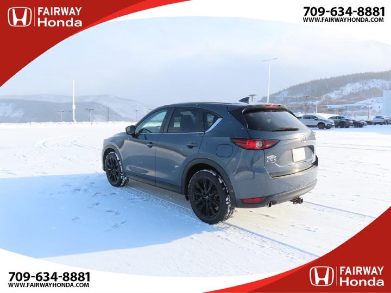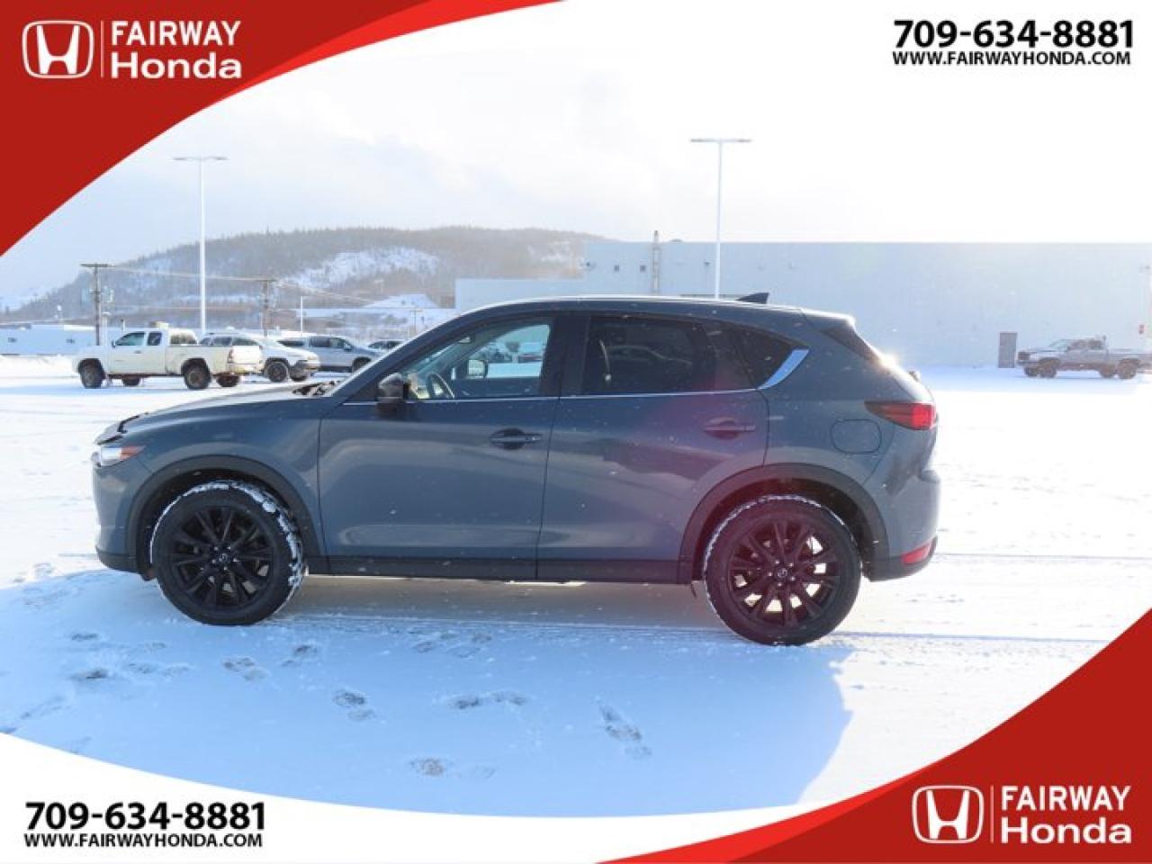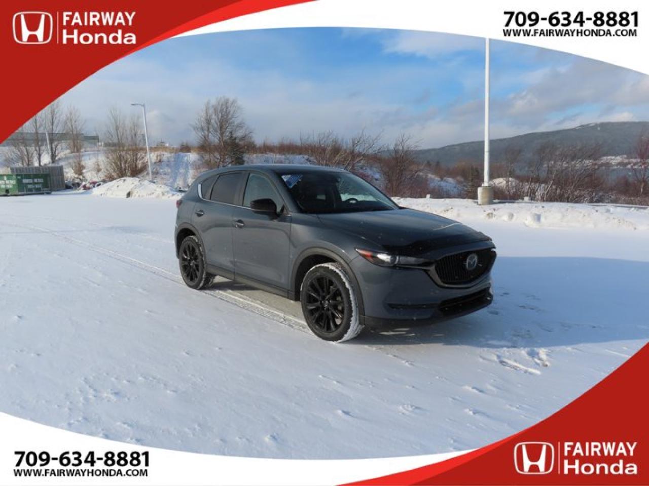 Recent Arrival!Gray 2021 Mazda CX-5 Kuro Edition AWD 6-Speed Automatic I4*Market Value Pricing*, 4-Wheel Disc Brakes, 4.624 Axle Ratio, 6 Speakers, ABS brakes, Air Conditioning, Alloy wheels, AM/FM radio, AppLink/Apple CarPlay and Android Auto, Auto High-beam Headlights, Auto-dimming Rear-View mirror, Automatic temperature control, Brake assist, Bumpers: body-colour, Delay-off headlights, Driver door bin, Driver vanity mirror, Dual front impact airbags, Dual front side impact airbags, Electronic Stability Control, Emergency communication system, Exterior Parking Camera Rear, Four wheel independent suspension, Front anti-roll bar, Front Bucket Seats, Front dual zone A/C, Front reading lights, Fully automatic headlights, Heated door mirrors, Heated Front Seats, Heated front seats, Heated steering wheel, Illuminated entry, Leather Shift Knob, Leather Upholstery, Low tire pressure warning, Memory seat, Occupant sensing airbag, Outside temperature display, Overhead airbag, Overhead console, Panic alarm, Passenger door bin, Passenger vanity mirror, Power door mirrors, Power driver seat, Power Liftgate, Power moonroof, Power passenger seat, Power steering, Power windows, Radio data system, Radio: AM/FM/HD Audio System w/6 Speakers, Rain sensing wipers, Rear anti-roll bar, Rear reading lights, Rear window defroster, Rear window wiper, Remote keyless entry, Speed control, Speed-sensing steering, Split folding rear seat, Spoiler, Steering wheel mounted audio controls, Tachometer, Telescoping steering wheel, Tilt steering wheel, Traction control, Trip computer, Turn signal indicator mirrors, Variably intermittent wipers, Wheels: 19" Alloy Black Metallic Finish.Reviews:* The Mazda CX-5 is highly rated for looking and feeling more expensive than it is. Since its introduction, this model has been sought-after by shoppers looking for an up-level crossover driving experience without the up-level price tag. On all elements of styling, handling, and dynamics, owners seem to be impressed. Source: autoTRADER.caFairway Honda - Community Driven!