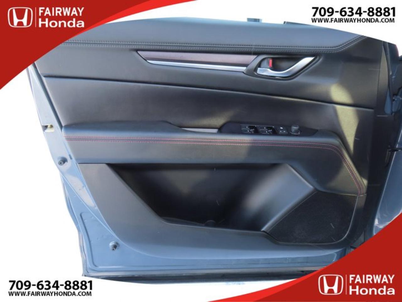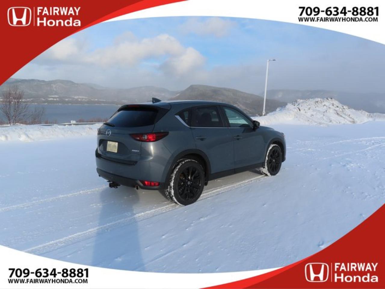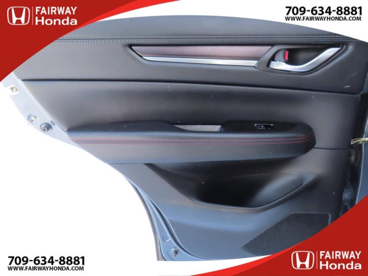 Recent Arrival!Gray 2021 Mazda CX-5 Kuro Edition AWD 6-Speed Automatic I4*Market Value Pricing*, 4-Wheel Disc Brakes, 4.624 Axle Ratio, 6 Speakers, ABS brakes, Air Conditioning, Alloy wheels, AM/FM radio, AppLink/Apple CarPlay and Android Auto, Auto High-beam Headlights, Auto-dimming Rear-View mirror, Automatic temperature control, Brake assist, Bumpers: body-colour, Delay-off headlights, Driver door bin, Driver vanity mirror, Dual front impact airbags, Dual front side impact airbags, Electronic Stability Control, Emergency communication system, Exterior Parking Camera Rear, Four wheel independent suspension, Front anti-roll bar, Front Bucket Seats, Front dual zone A/C, Front reading lights, Fully automatic headlights, Heated door mirrors, Heated Front Seats, Heated front seats, Heated steering wheel, Illuminated entry, Leather Shift Knob, Leather Upholstery, Low tire pressure warning, Memory seat, Occupant sensing airbag, Outside temperature display, Overhead airbag, Overhead console, Panic alarm, Passenger door bin, Passenger vanity mirror, Power door mirrors, Power driver seat, Power Liftgate, Power moonroof, Power passenger seat, Power steering, Power windows, Radio data system, Radio: AM/FM/HD Audio System w/6 Speakers, Rain sensing wipers, Rear anti-roll bar, Rear reading lights, Rear window defroster, Rear window wiper, Remote keyless entry, Speed control, Speed-sensing steering, Split folding rear seat, Spoiler, Steering wheel mounted audio controls, Tachometer, Telescoping steering wheel, Tilt steering wheel, Traction control, Trip computer, Turn signal indicator mirrors, Variably intermittent wipers, Wheels: 19" Alloy Black Metallic Finish.Reviews:* The Mazda CX-5 is highly rated for looking and feeling more expensive than it is. Since its introduction, this model has been sought-after by shoppers looking for an up-level crossover driving experience without the up-level price tag. On all elements of styling, handling, and dynamics, owners seem to be impressed. Source: autoTRADER.caFairway Honda - Community Driven!