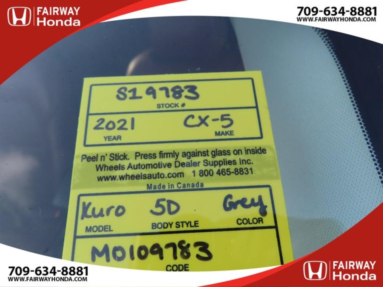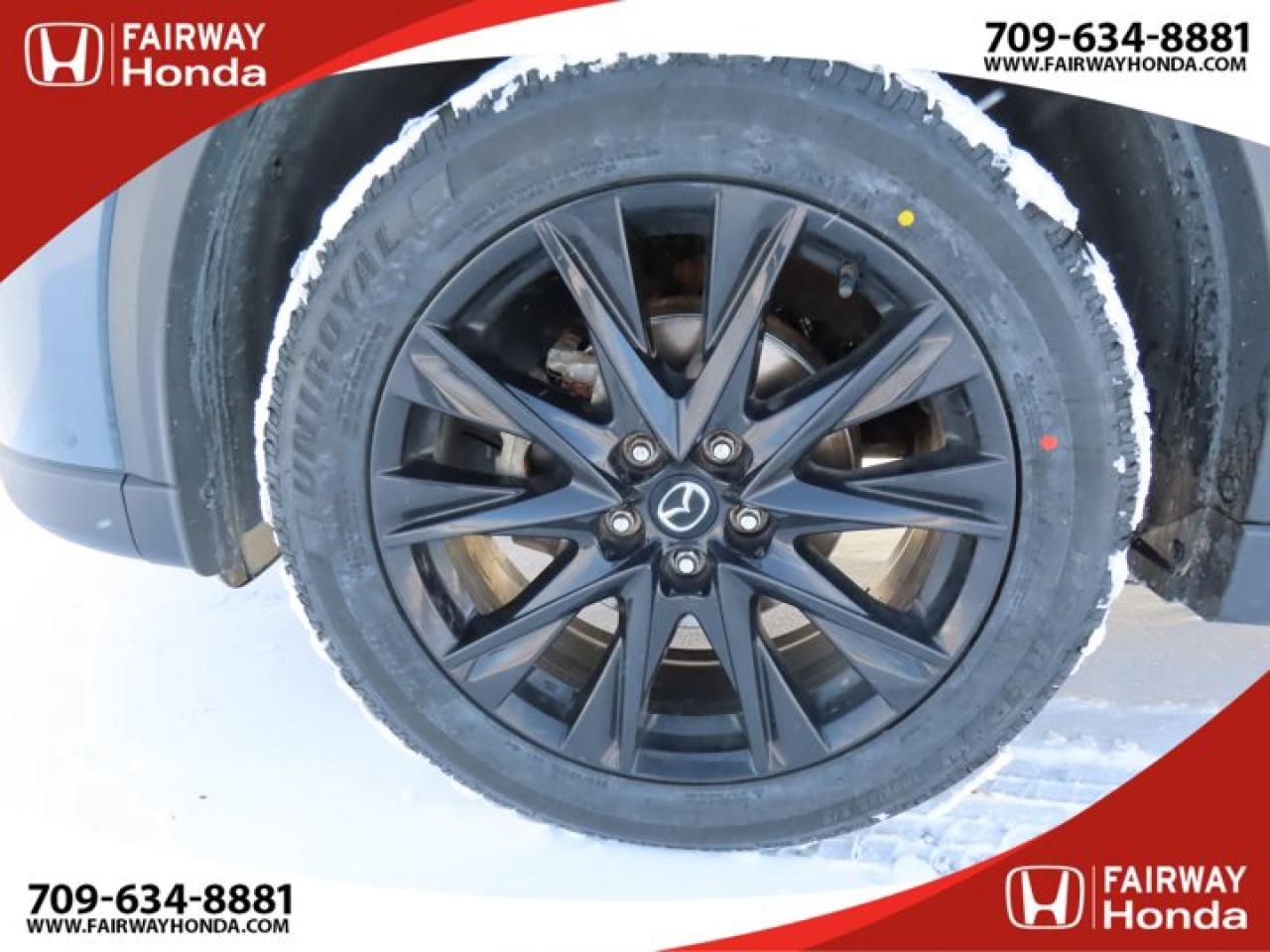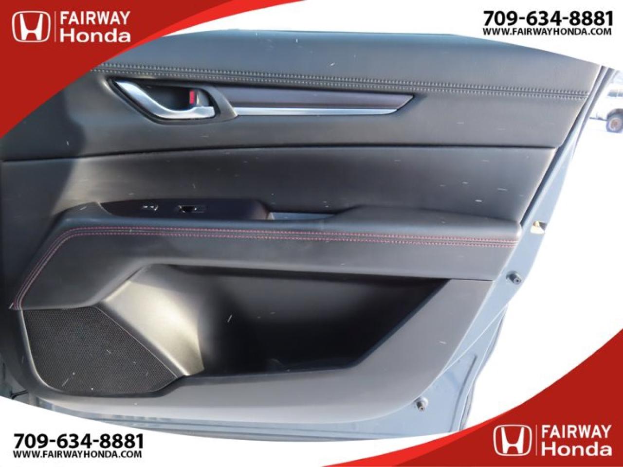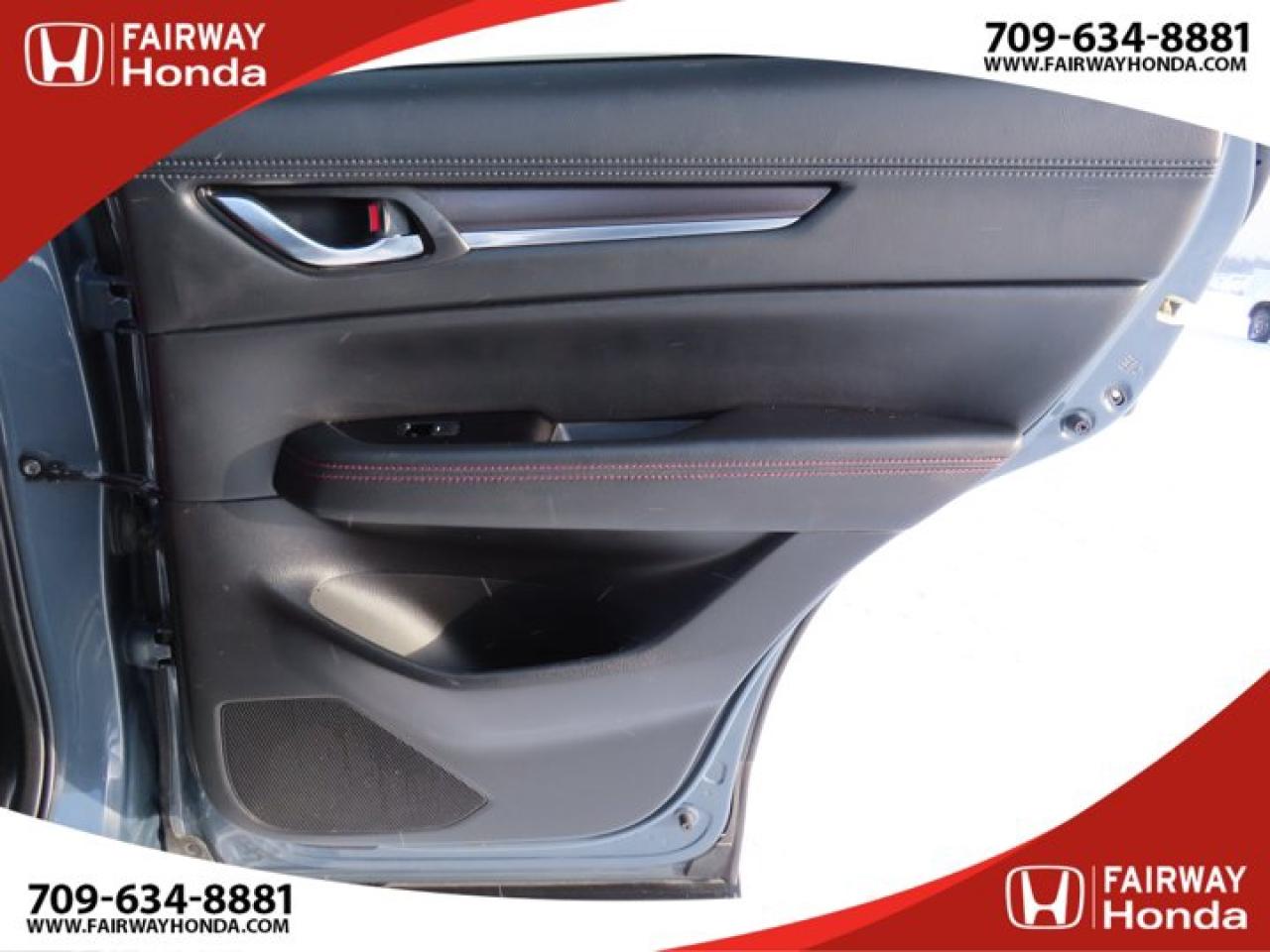 Recent Arrival!Gray 2021 Mazda CX-5 Kuro Edition AWD 6-Speed Automatic I4*Market Value Pricing*, 4-Wheel Disc Brakes, 4.624 Axle Ratio, 6 Speakers, ABS brakes, Air Conditioning, Alloy wheels, AM/FM radio, AppLink/Apple CarPlay and Android Auto, Auto High-beam Headlights, Auto-dimming Rear-View mirror, Automatic temperature control, Brake assist, Bumpers: body-colour, Delay-off headlights, Driver door bin, Driver vanity mirror, Dual front impact airbags, Dual front side impact airbags, Electronic Stability Control, Emergency communication system, Exterior Parking Camera Rear, Four wheel independent suspension, Front anti-roll bar, Front Bucket Seats, Front dual zone A/C, Front reading lights, Fully automatic headlights, Heated door mirrors, Heated Front Seats, Heated front seats, Heated steering wheel, Illuminated entry, Leather Shift Knob, Leather Upholstery, Low tire pressure warning, Memory seat, Occupant sensing airbag, Outside temperature display, Overhead airbag, Overhead console, Panic alarm, Passenger door bin, Passenger vanity mirror, Power door mirrors, Power driver seat, Power Liftgate, Power moonroof, Power passenger seat, Power steering, Power windows, Radio data system, Radio: AM/FM/HD Audio System w/6 Speakers, Rain sensing wipers, Rear anti-roll bar, Rear reading lights, Rear window defroster, Rear window wiper, Remote keyless entry, Speed control, Speed-sensing steering, Split folding rear seat, Spoiler, Steering wheel mounted audio controls, Tachometer, Telescoping steering wheel, Tilt steering wheel, Traction control, Trip computer, Turn signal indicator mirrors, Variably intermittent wipers, Wheels: 19" Alloy Black Metallic Finish.Reviews:* The Mazda CX-5 is highly rated for looking and feeling more expensive than it is. Since its introduction, this model has been sought-after by shoppers looking for an up-level crossover driving experience without the up-level price tag. On all elements of styling, handling, and dynamics, owners seem to be impressed. Source: autoTRADER.caFairway Honda - Community Driven!