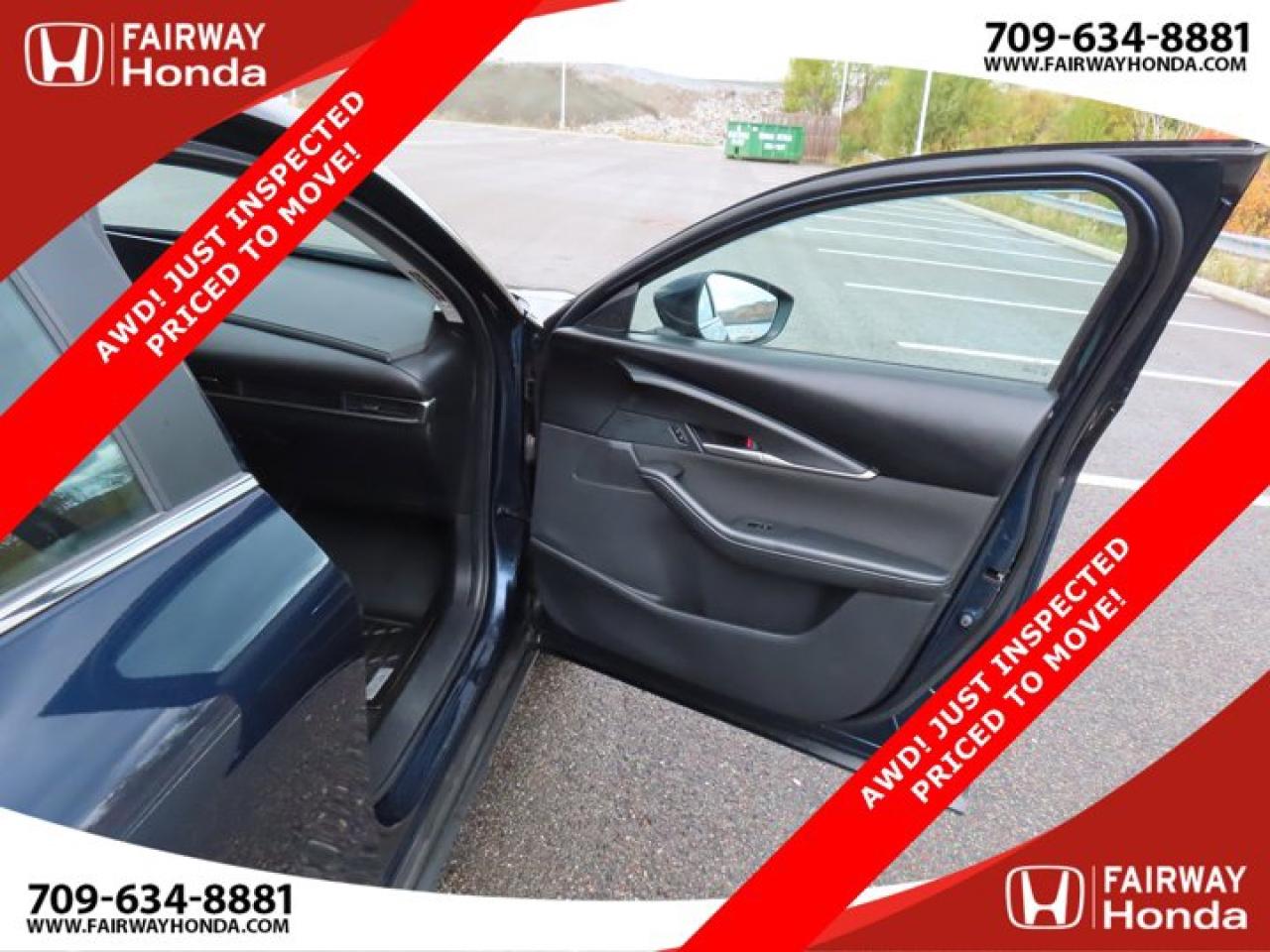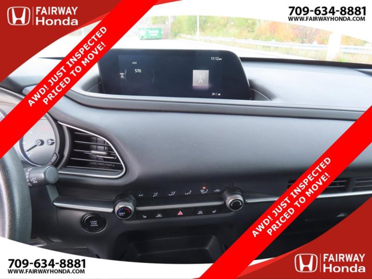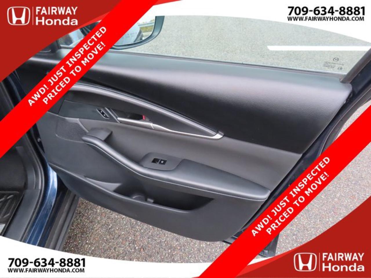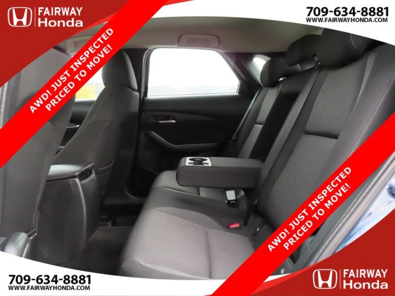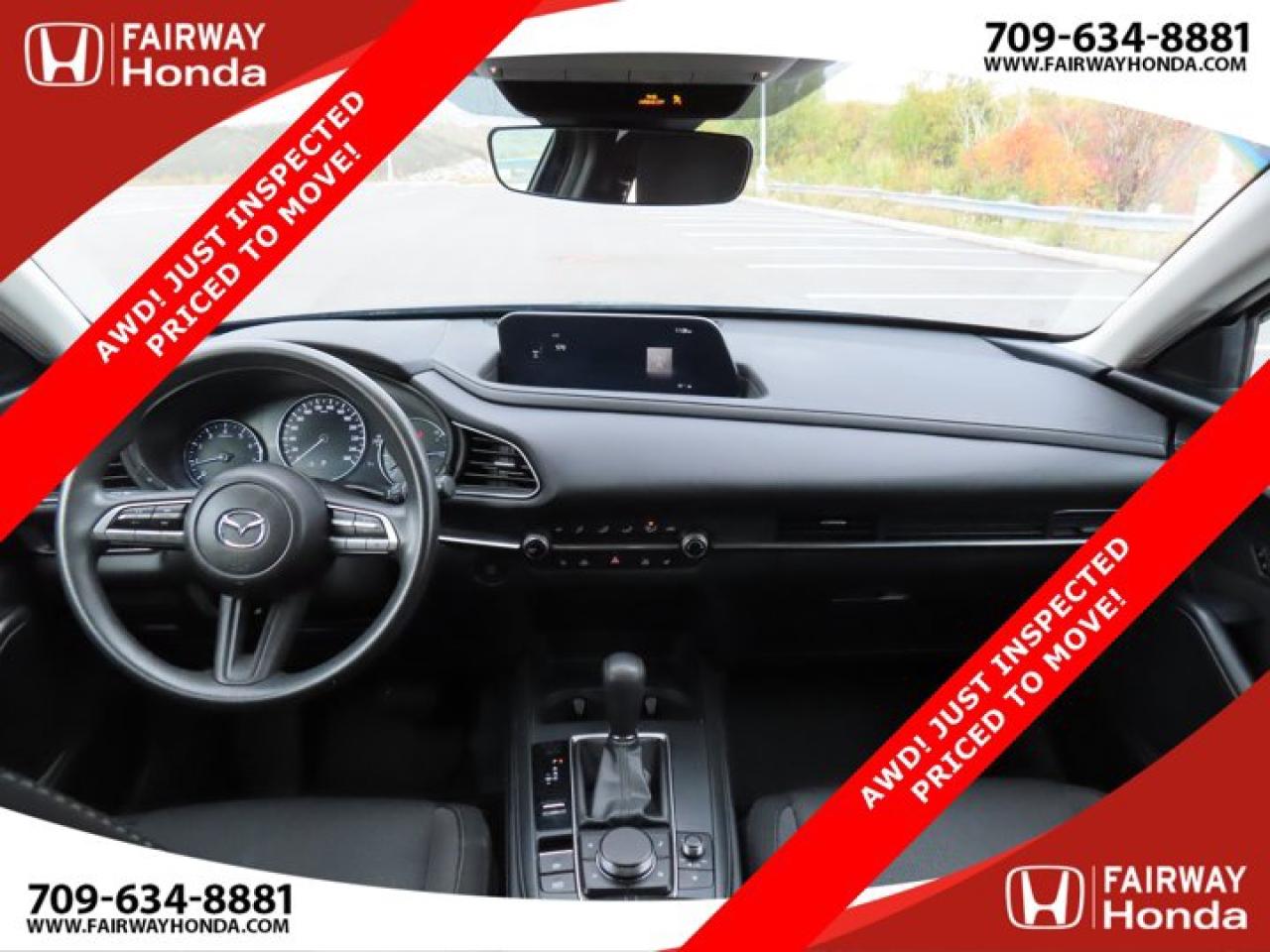 Recent Arrival!Deep Crystal Blue Mica 2023 Mazda CX-30 GX AWD! JUST INSPECTED PRICED TO MOVE! AWD 6-Speed Automatic I4*Professionally Detailed*, *Market Value Pricing*, 4-Wheel Disc Brakes, 8 Speakers, ABS brakes, Air Conditioning, Alloy wheels, AM/FM radio, AppLink/Apple CarPlay and Android Auto, Brake assist, Bumpers: body-colour, Cloth Upholstery, Compass, Delay-off headlights, Driver door bin, Driver vanity mirror, Dual front impact airbags, Dual front side impact airbags, Electronic Stability Control, Emergency communication system: Mazda Connected Services (2-year trial subscription included), Exterior Parking Camera Rear, Front anti-roll bar, Front Bucket Seats, Front reading lights, Front wheel independent suspension, Fully automatic headlights, Heated front seats, Heated Front Seats (3 Settings), Illuminated entry, Knee airbag, Low tire pressure warning, Occupant sensing airbag, Outside temperature display, Overhead airbag, Panic alarm, Passenger door bin, Passenger vanity mirror, Power door mirrors, Power steering, Power windows, Radio data system, Radio: AM/FM/HD w/Navigation-Ready, Rain sensing wipers, Rear side impact airbag, Rear window defroster, Rear window wiper, Remote keyless entry, Speed control, Speed-sensing steering, Split folding rear seat, Spoiler, Steering wheel mounted audio controls, Tachometer, Telescoping steering wheel, Tilt steering wheel, Traction control, Trip computer, Variably intermittent wipers, Wheels: 16" Dark Grey High Lustre Metallic Alloy.Certification Program Details: 85 Point Inspection Top Up Fluids Brake Inspection Tire Inspection Fresh 2 Year MVI Fresh Oil ChangeFairway Honda - Community Driven!
