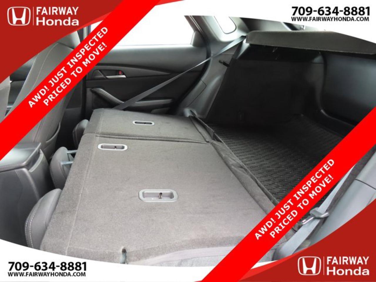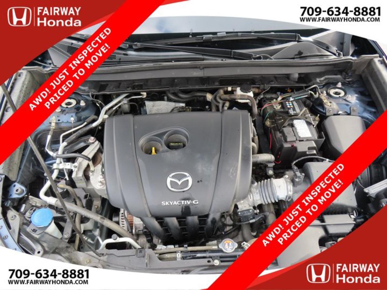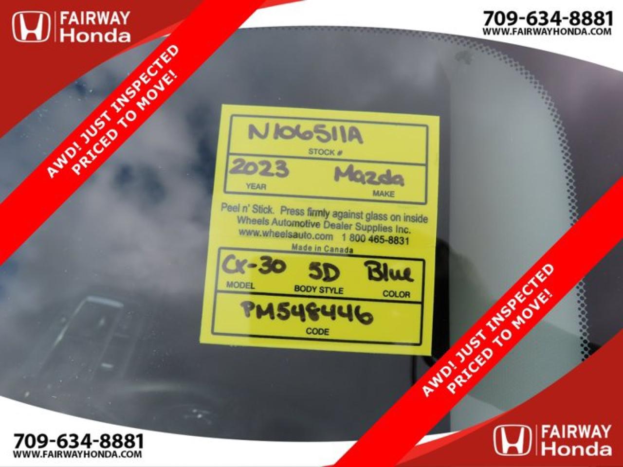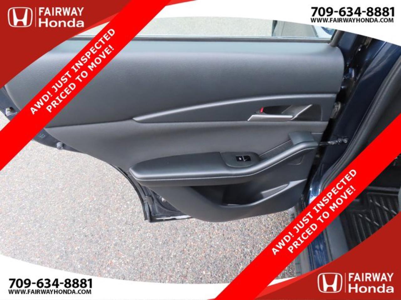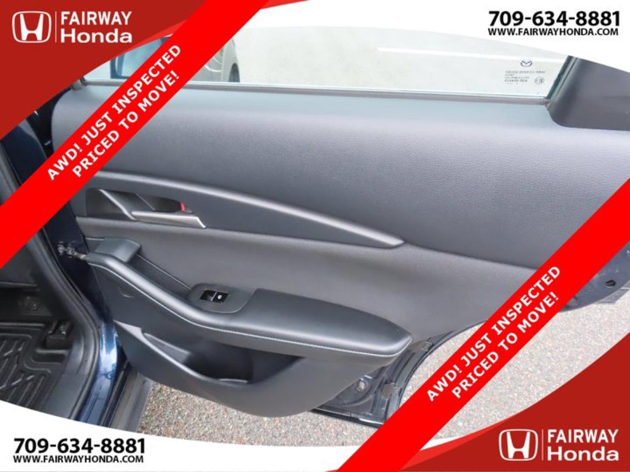 Recent Arrival!Deep Crystal Blue Mica 2023 Mazda CX-30 GX AWD! JUST INSPECTED PRICED TO MOVE! AWD 6-Speed Automatic I4*Professionally Detailed*, *Market Value Pricing*, 4-Wheel Disc Brakes, 8 Speakers, ABS brakes, Air Conditioning, Alloy wheels, AM/FM radio, AppLink/Apple CarPlay and Android Auto, Brake assist, Bumpers: body-colour, Cloth Upholstery, Compass, Delay-off headlights, Driver door bin, Driver vanity mirror, Dual front impact airbags, Dual front side impact airbags, Electronic Stability Control, Emergency communication system: Mazda Connected Services (2-year trial subscription included), Exterior Parking Camera Rear, Front anti-roll bar, Front Bucket Seats, Front reading lights, Front wheel independent suspension, Fully automatic headlights, Heated front seats, Heated Front Seats (3 Settings), Illuminated entry, Knee airbag, Low tire pressure warning, Occupant sensing airbag, Outside temperature display, Overhead airbag, Panic alarm, Passenger door bin, Passenger vanity mirror, Power door mirrors, Power steering, Power windows, Radio data system, Radio: AM/FM/HD w/Navigation-Ready, Rain sensing wipers, Rear side impact airbag, Rear window defroster, Rear window wiper, Remote keyless entry, Speed control, Speed-sensing steering, Split folding rear seat, Spoiler, Steering wheel mounted audio controls, Tachometer, Telescoping steering wheel, Tilt steering wheel, Traction control, Trip computer, Variably intermittent wipers, Wheels: 16" Dark Grey High Lustre Metallic Alloy.Certification Program Details: 85 Point Inspection Top Up Fluids Brake Inspection Tire Inspection Fresh 2 Year MVI Fresh Oil ChangeFairway Honda - Community Driven!