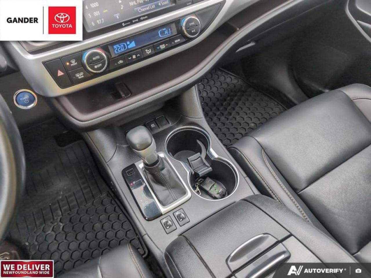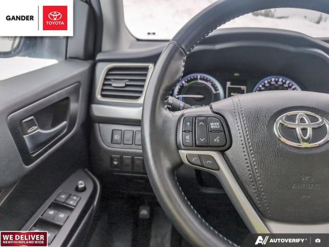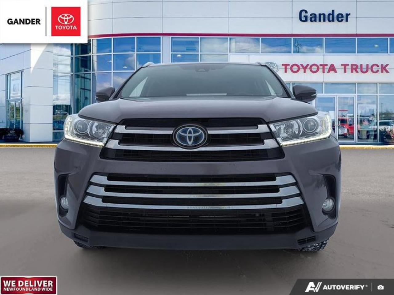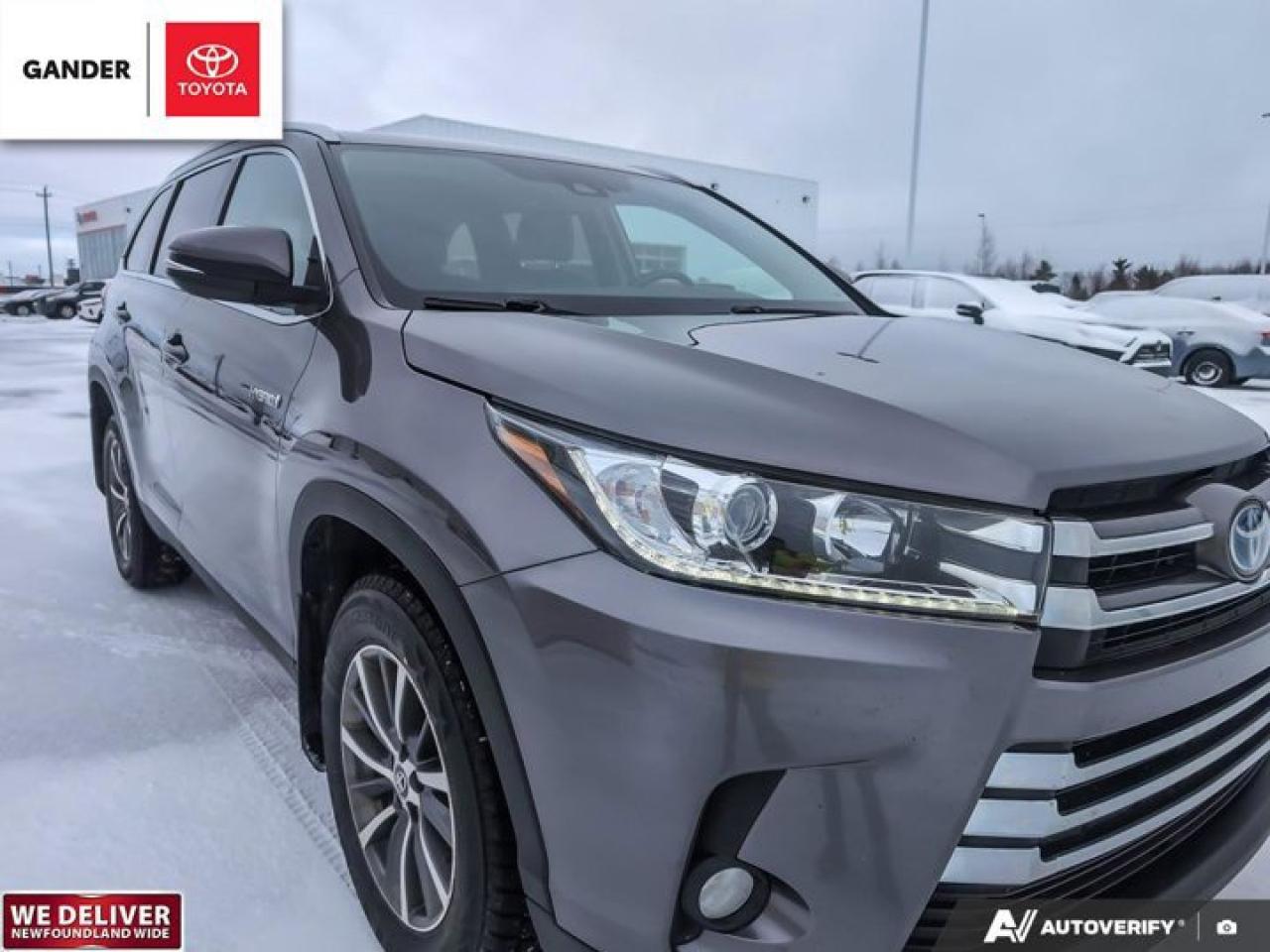 Recent Arrival!2019 Toyota Highlander Hybrid XLE eCVT AWD 3.5L 6-CylinderPredawn Gray MicaALL CREDIT APPLICATIONS ACCEPTED! ESTABLISH OR REBUILD YOUR CREDIT HERE. APPLY AT https://steeleadvantagefinancing.com/?dealer=7148 We know that you have high expectations in your car search in NL. So, if youre in the market for a pre-owned vehicle that undergoes our exclusive inspection protocol, stop by Gander Toyota. Were confident we have the right vehicle for you. Here at Gander Toyota, we enjoy the challenge of meeting and exceeding customer expectations in all things automotive.**Market Value Pricing**, 3.5L 6-Cylinder, 3rd row seats: split-bench, Active Cruise Control, Auto High-beam Headlights, Auto-dimming Rear-View mirror, Exterior Parking Camera Rear, Heated front seats, Navigation System, Power driver seat, Power Liftgate, Power moonroof.Toyota Certified Details:* 24-hour Roadside Assistance* 7 days / 1,500 kms Exchange Privilege* 160-point inspection* Zero Deductible / Complimentary First Oil & Filter Change (6 mos/8,000 km, whichever comes first) / Warranty Honoured at over 1,500 Toyota Dealers in Canada and the U.S. / CARFAX Vehicle History Reports* Special Toyota Financing Rates: 24 months - 6.09%, 36 months - 6.14%, 48 months - 6.19%, 60 months - 6.25%, 72 months - 6.40%* 6 months / 10,000 km Powertrain. Optional Extra Care Protection. $0 DeductibleSteele Auto Group is the most diversified group of automobile dealerships in Atlantic Canada, with 34 dealerships selling 27 brands and an employee base of over 1000. Sales are up by double digits over last year and the plan going forward is to expand further into Atlantic Canada. PLEASE CONFIRM WITH US THAT ALL OPTIONS, FEATURES AND KILOMETERS ARE CORRECT.Reviews:* On most aspects of bad-weather confidence, a commanding driving position, comfort, flexibility, and space to spare, the Highlander seems to have impressed owners. Many appreciate the upscale feature content, and the automatic high-beams, and JBL stereo are commonly listed as feature favourites. Many say the standard V6 driveline offers up an ideal blend of performance punch and fuel efficiency. Source: autoTRADER.ca