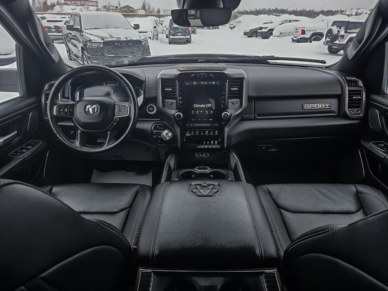 Discover the power and style of this pre-owned 2023 Ram 1500 Sport 4x4 Crew Cab in striking Red with a sleek Black interior. Featuring a robust 5.7L HEMI VVT V8 with eTorque paired with an 8-speed automatic transmission, it offers impressive capability with a 3.92 rear axle ratio and Anti-Spin differential. This truck is loaded with premium features like leather-faced ventilated front seats, a dual-pane panoramic sunroof, and the advanced Uconnect 5WW Navigation system with a 12-inch touchscreen. Safety and convenience are enhanced with Park-Sense front/rear park assist, a remote start system, and a Class IV receiver hitch ready to tow. Ride in confidence on 22-inch forged aluminum wheels wrapped in Pirelli all-season tires, and enjoy the premium 19-speaker Harman Kardon sound system on every journey. Experience versatility with ample storage including second-row in-floor bins and rear underseat compartments. Ready for any adventureperformance, comfort, and technology come standard in this exceptional Ram 1500 Sport. Contact us today to test drive this powerhouse!