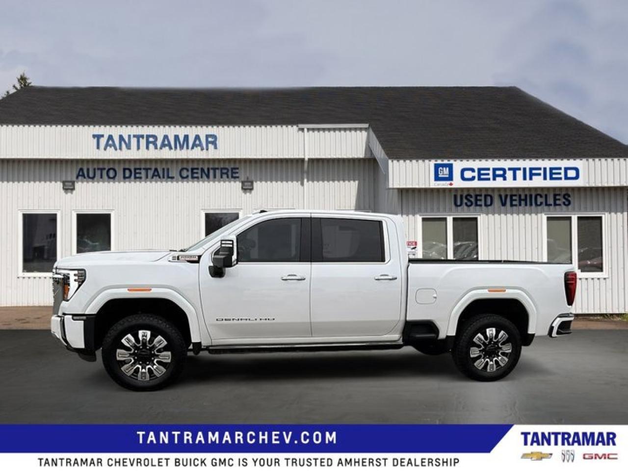 Recent Arrival! White Frost Tricoat 2024 GMC Sierra 2500HD Denali 4WD 10-Speed Automatic Duramax 6.6L V8 TurbodieselLOCAL TRADE, ONE OWNER, NON SMOKER, Value Market Pricing, 10-Speed Automatic, 4WD, Atmosphere/Brownstone Leather.Certified. GM Certified Details:* Exchange policy is 30 days or 2,500 kilometres, whichever comes first* 24/7 roadside assistance for 3 months or 5,000 km (whichever comes first)* 3 months or 5,000 kilometres (whichever comes first) which can be extended or upgraded to an even more comprehensive Certified Pre-Owned Vehicle Protection Plan* 4.99% Financing for 24 Months On Eligible Certified Pre-Owned Models 24 Months - 4.99% 36 Months - 4.99% 48 Months - 4.99% 60 Months - 4.99% 72 Months - 5.49% 84 Months - 5.49%* 1-month OnStar trial and sign up for a paid plan to enjoy the first two months on us. GM Owner Centre and Mobile App. Free SiriusXM Trial* 150+ Point Inspection