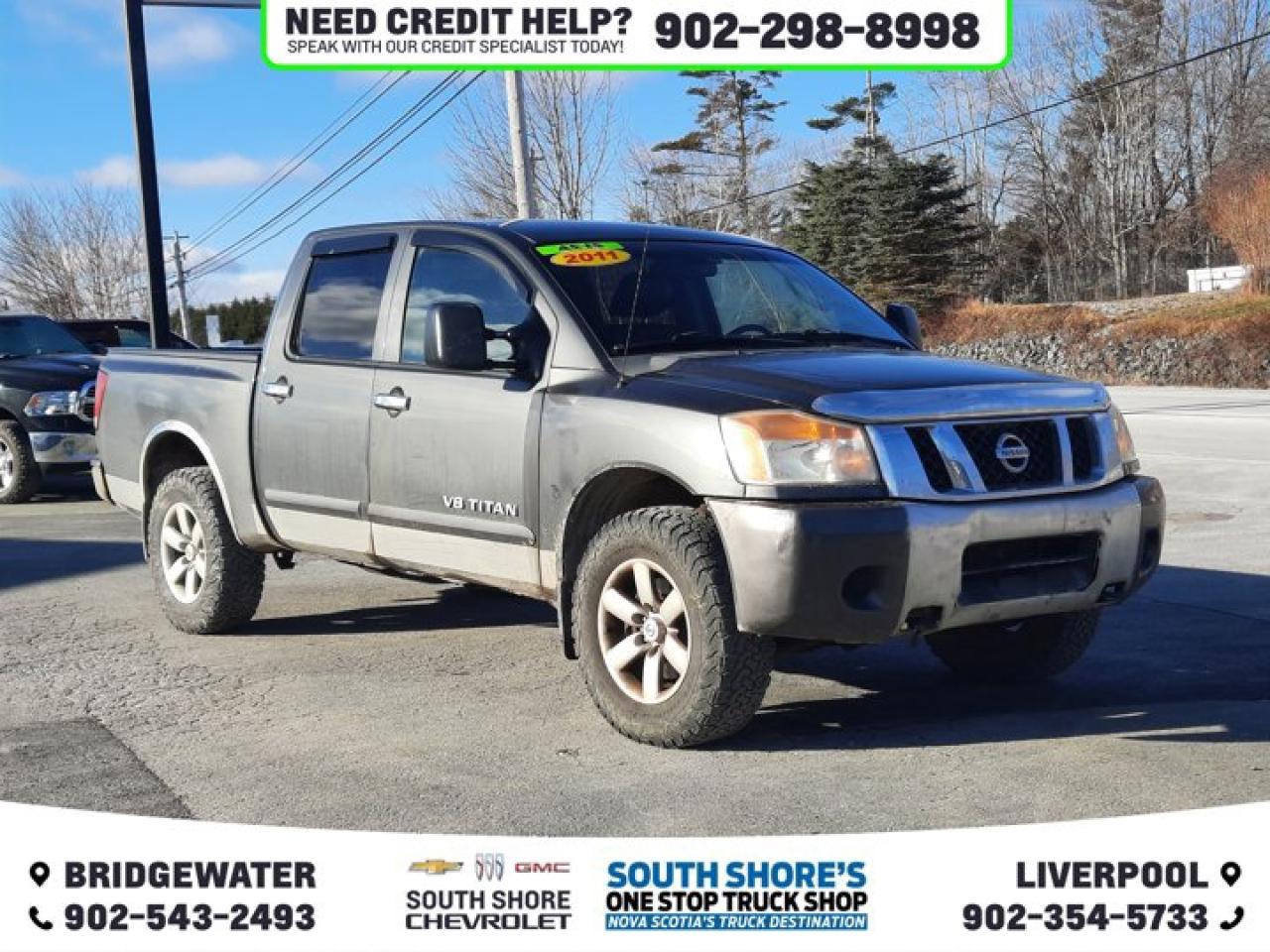 Recent Arrival! Smoke 2011 Nissan Titan S 4WD 5-Speed Automatic Endurance 5.6L V8 DOHC 32V Clean Car Fax, 4WD, 8 Speakers, ABS brakes, Air Conditioning, Alloy wheels, Brake assist, CD player, Driver door bin, Dual front side impact airbags, Front reading lights, Front wheel independent suspension, Low tire pressure warning, Occupant sensing airbag, Overhead console, Panic alarm, Power windows, Rear step bumper, Rear window defroster, Remote keyless entry, Speed control, Tachometer, Tilt steering wheel, Traction control, Variably intermittent wipers.