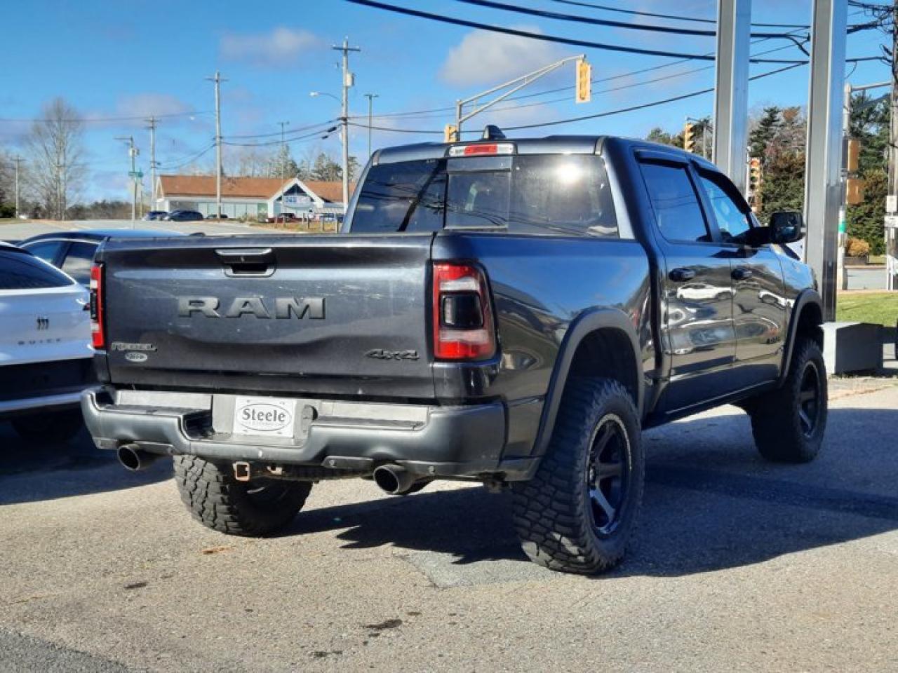 Recent Arrival! Maximum Steel Metallic Clearcoat 2019 Ram 1500 Sport/Rebel For Sale, Bridgewater 4WD 8-Speed Automatic HEMI 5.7L V8 VVT Clean Car Fax, 115V Rear Auxiliary Power Outlet, 3.92 Rear Axle Ratio, 6 Speakers, ABS brakes, Air Conditioning, Alloy wheels, AM/FM radio: SiriusXM, Auto-Dimming Exterior Driver Mirror, Auto-Dimming Rear-View Mirror, Black Power Fold Heated Mirrors w/Signals, Body-Colour Door Handles, Brake assist, Bucket Seats, Class IV Receiver Hitch, Compass, Delay-off headlights, Door Trim Panel Foam Bottle Insert, Dual front side impact airbags, Electronic Locking Rear Differential, Electronic Stability Control, Exterior Mirrors w/Courtesy Lamps, Exterior Mirrors w/Turn Signals, Front anti-roll bar, Front Bucket Seats, Front fog lights, Front Heated Seats, Fully automatic headlights, GPS Antenna Input, Heated door mirrors, Heated Steering Wheel, Heavy-Duty Engine Cooling, Hill Descent Control, Illuminated entry, Leather steering wheel, LED Dual Dome Reading Lamps, Level 2 Equipment Group, Low tire pressure warning, Occupant sensing airbag, Off-Road Group, Outside temperature display, Overhead LED Lamps, Panic alarm, Park-Sense Front & Rear Park Assist, Powder-Coated Front Bumper, Power 4-Way Driver Lumbar Adjust, Power Adjustable Pedals, Power Dual-Pane Panoramic Sunroof, Power Folding Exterior Mirrors, Power steering, Power windows, Premium Overhead Console, Quick Order Package 25W Rebel, Radio: Uconnect 3 w/5" Display, Rain-Sensing Windshield Wipers, Rear Media Hub w/2 USB Ports, Rear step bumper, Rear Underseat Compartment Storage, Rear Window Defroster, Rebel Instrument Cluster, Remote keyless entry, Remote Proximity Keyless Entry, Security Alarm, Single-Disc Remote CD Player, Speed control, Sport Performance Hood, Spray-In Bedliner, Sun Visors w/Illuminated Vanity Mirrors, Telescoping steering wheel, Tilt steering wheel, Trip computer, Universal Garage Door Opener, Variably intermittent wipers, Vinyl Door Trim Panel, Voltmeter.