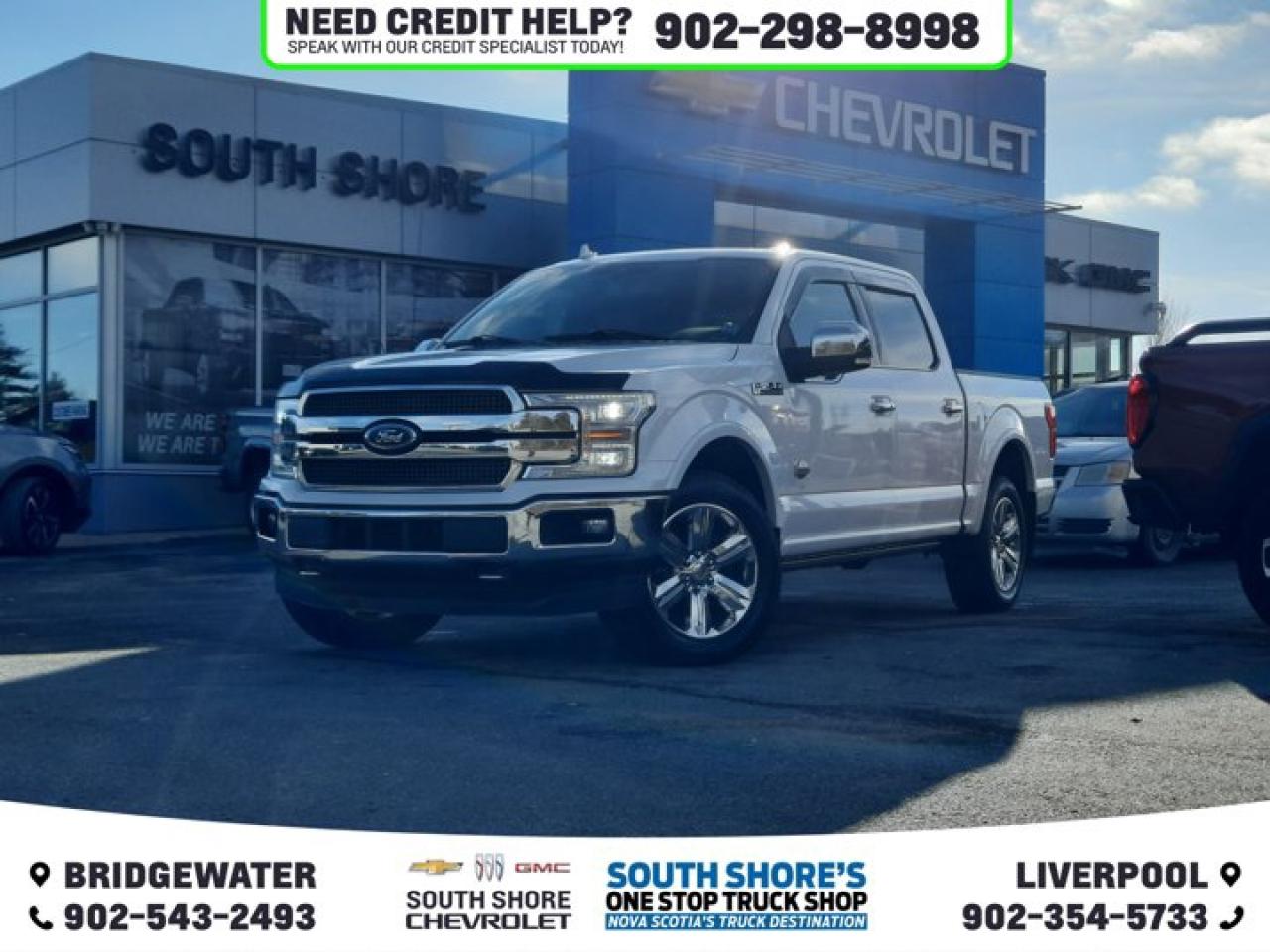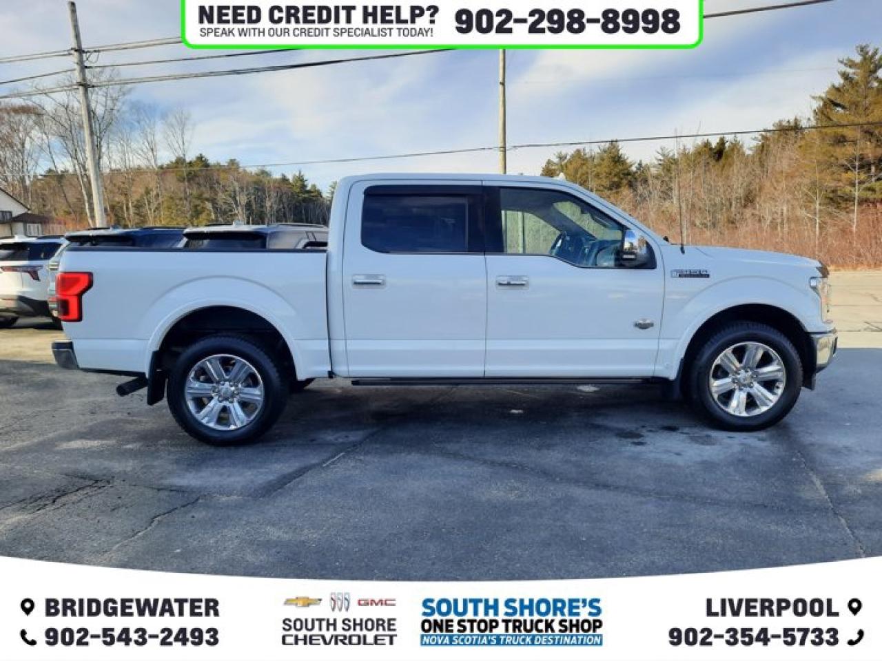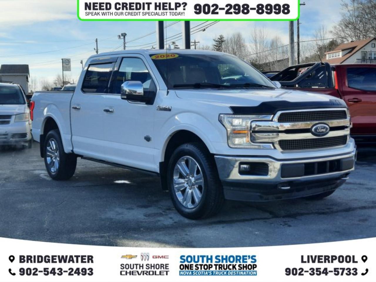 Recent Arrival! White 2020 Ford F-150 King Ranch For Sale, Bridgewater 4WD 10-Speed Automatic 3.5L V6 EcoBoost 4WD, 10 Speakers, 4.2" LCD Productivity Screen in Instrument Cluster, Active Park Assist, Air Conditioning, Auto High-beam Headlights, Auto-dimming Rear-View mirror, Automatic temperature control, Brake assist, Bright Belt Mouldings, Bright Chrome 2-Bar Grille w/Caribou Mesh Insert, Chrome Door Handles w/Body-Colour Bezel, Compass, Delay-off headlights, Dual front impact airbags, Electronic Stability Control, Equipment Group 601A Luxury, Front & Rear Chrome Bumpers, Front anti-roll bar, Front dual zone A/C, Front fog lights, Front wheel independent suspension, Fully automatic headlights, Garage door transmitter, Genuine wood door panel insert, Heated door mirrors, Heated front seats, Heated rear seats, Heated steering wheel, Integrated Trailer Brake Controller, King Ranch Monochromatic Paint Package, King Ranch Multi-Contour Leather Bucket Seats, Occupant sensing airbag, Painted Body-Colour Wheellip Moulding, Pedal memory, Power door mirrors, Power passenger seat, Power windows, Power-Deployable Running Boards, Pro Trailer Backup Assist, Radio data system, Rear Parking Sensors, Rear window defroster, Security system, Speed control, Speed-sensing steering, Steering wheel memory, Steering wheel mounted audio controls, Tachometer, Telescoping steering wheel, Tilt steering wheel, Traction control, Tray Style Floor Liner, Turn signal indicator mirrors, Variably intermittent wipers, Ventilated front seats, Voice-Activated Navigation, Voltmeter, Wheels: 20" Chrome-Like PVD. Reviews: * Many owners say the F-150's wide selection of handy and high-tech features plays a major role in its appeal, with the advanced parking and trailer maneuvering systems being common favourites. A commanding driving position, very spacious cabin, and relatively easy-to-use control layouts round out the package. Performance typically rates highly as well, especially from the EcoBoost engines. Source: autoTRADER.ca