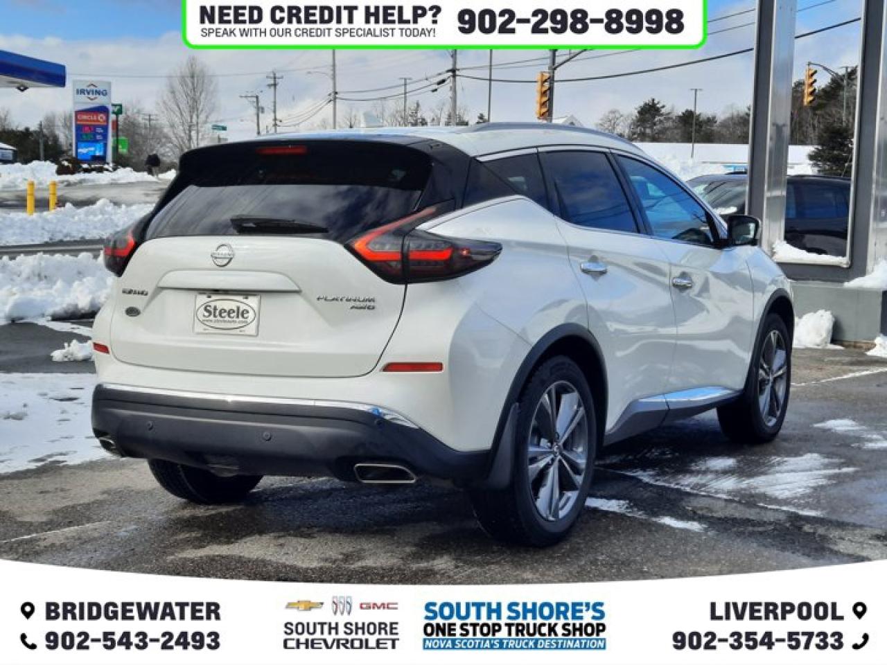 Awards: * JD Power Canada Initial Quality Study (IQS) Recent Arrival! White 2021 Nissan Murano Platinum For Sale, Bridgewater AWD CVT with Xtronic 3.5L 6-Cylinder DOHC 24V Clean Car Fax, CVT with Xtronic, AWD, 11 Speakers, ABS brakes, Air Conditioning, Alloy wheels, Brake assist, CD player, Compass, Delay-off headlights, Driver vanity mirror, Electronic Stability Control, Emergency communication system: NissanConnect Services w/6 month free trial, Front anti-roll bar, Front dual zone A/C, Front fog lights, Front reading lights, Fully automatic headlights, Garage door transmitter: HomeLink, Heated door mirrors, Heated front seats, Heated rear seats, Illuminated entry, Knee airbag, Navigation system: NissanConnect Navigation, Outside temperature display, Overhead airbag, Passenger vanity mirror, Power door mirrors, Power driver seat, Power Liftgate, Power moonroof, Power passenger seat, Power steering, Power windows, Radio data system, Rear reading lights, Rear window defroster, Remote keyless entry, Roof rack: rails only, Security system, Speed control, Speed-sensing steering, Speed-Sensitive Wipers, Split folding rear seat, Steering wheel memory, Tachometer, Telescoping steering wheel, Tilt steering wheel, Traction control, Trip computer, Variably intermittent wipers.