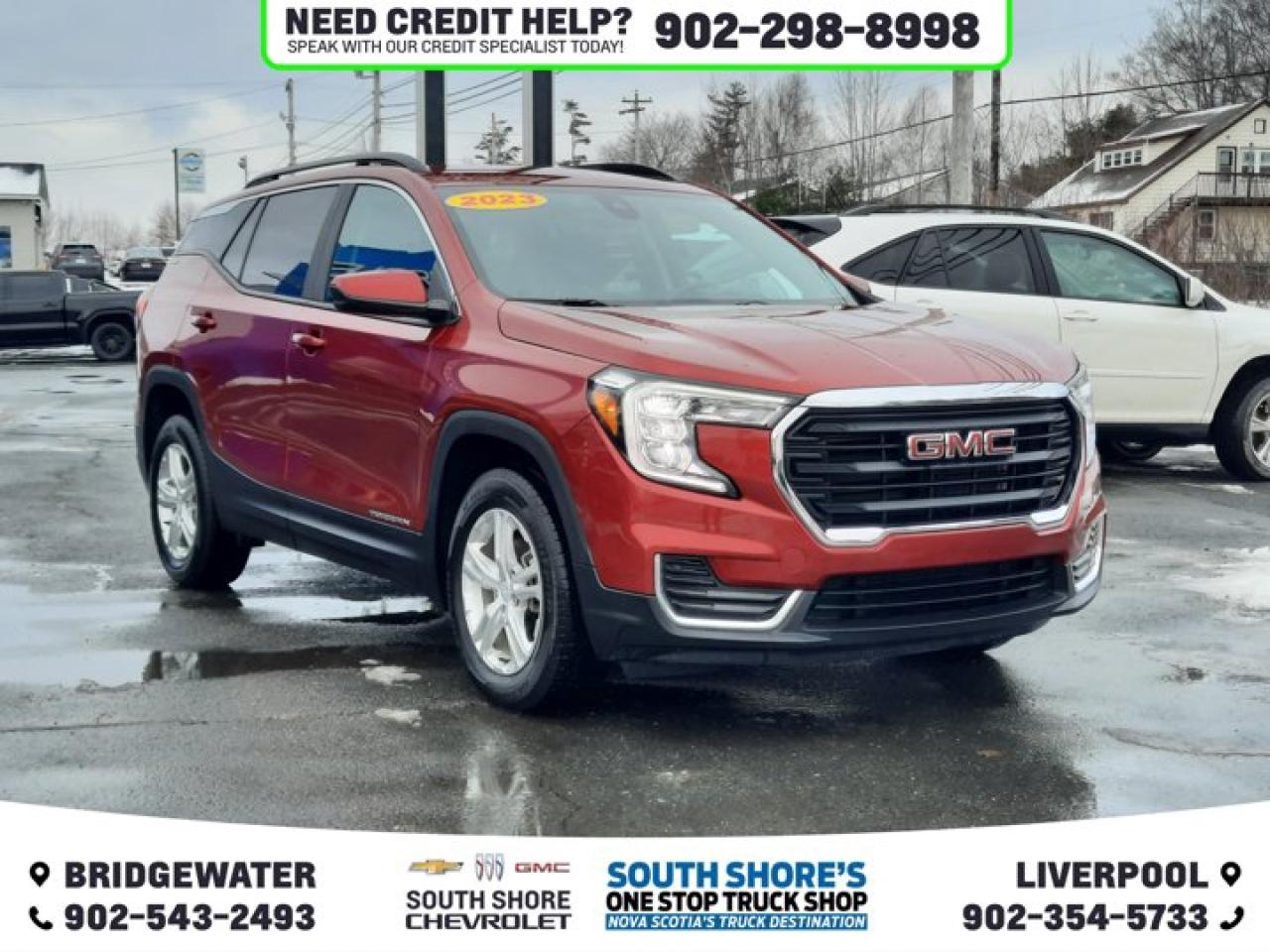 Recent Arrival! Volcanic Red Tintcoat 2023 GMC Terrain SLE AWD 9-Speed Automatic 1.5L DOHC Clean Car Fax, AWD, 6 Speakers, ABS brakes, Alloy wheels, AM/FM radio, Auto-dimming Rear-View mirror, Automatic temperature control, Bluetooth® For Phone, Brake assist, Bumpers: body-colour, Compass, Delay-off headlights, Driver door bin, Driver vanity mirror, Dual front side impact airbags, Electronic Stability Control, Front anti-roll bar, Front Bucket Seats, Front dual zone A/C, Front reading lights, Fully automatic headlights, Heated door mirrors, Heated front seats, Low tire pressure warning, Occupant sensing airbag, Outside temperature display, Overhead console, Power door mirrors, Power driver seat, Power steering, Power windows, Premium audio system: GMC Infotainment System, Premium Cloth Seat Trim, Radio data system, Rear window defroster, Rear window wiper, Remote keyless entry, Roof rack: rails only, Security system, SiriusXM, Speed control, Speed-sensing steering, Tachometer, Telescoping steering wheel, Tilt steering wheel, Traction control, Trip computer.