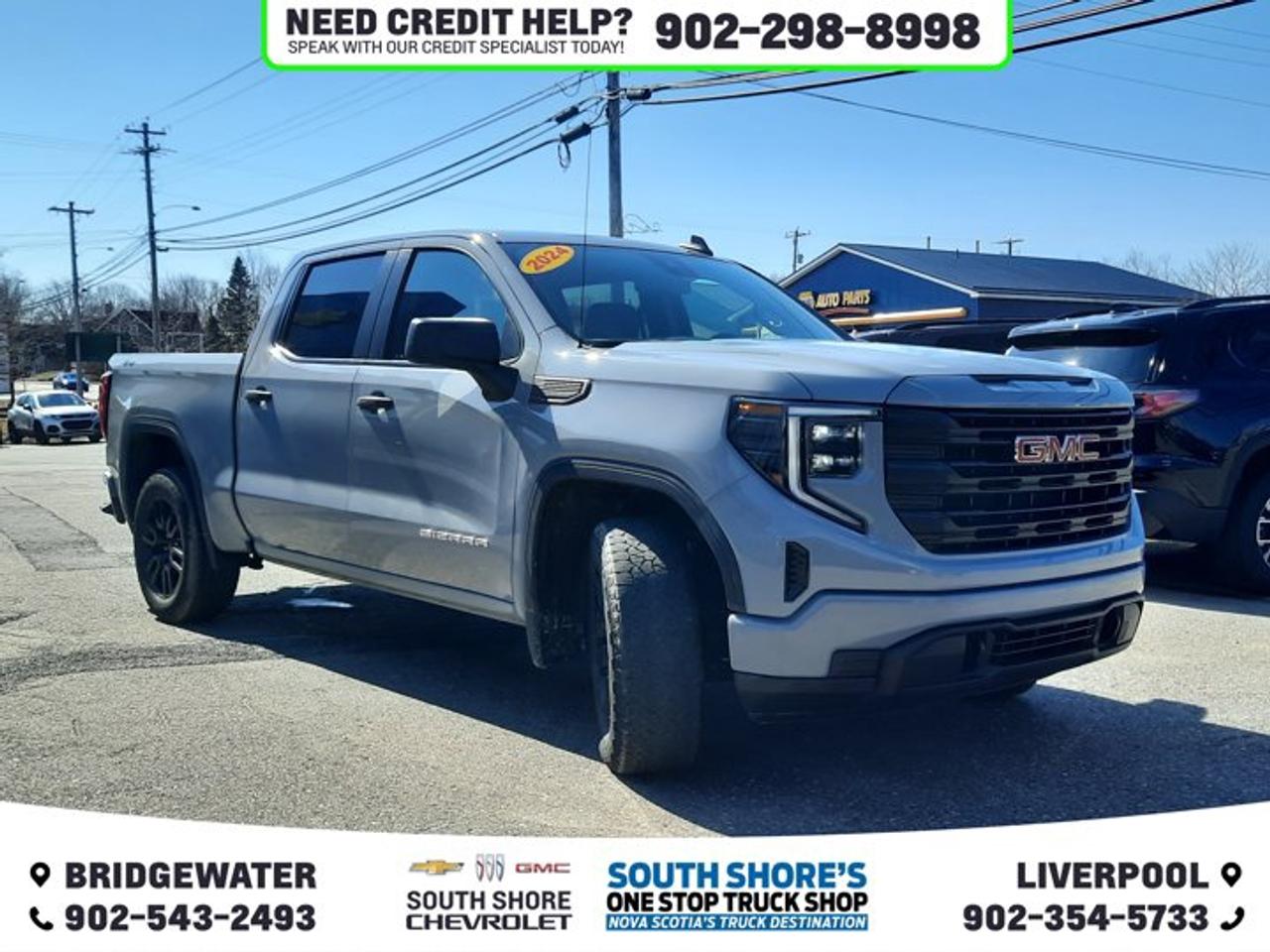 Recent Arrival! Thunderstorm Gray 2024 GMC Sierra 1500 Pro For Sale, Bridgewater 4WD 8-Speed Automatic 2.7L I4 Turbocharged DOHC 16V LEV3-SULEV30 310hp Clean Car Fax, 8-Speed Automatic, 4WD, Black Cloth, 2 Charge/Data USB Ports, 220 Amp Alternator, 4-Way Manual Passenger Seat Adjuster, 6 Speakers, ABS brakes, Air Conditioning, AM/FM radio, Apple CarPlay/Android Auto, Auto High-beam Headlights, Body Colour Upper Grille, Body-Colour Lower Front Bumper, Brake assist, Buckle to Drive, Chrome Header w/Flat Black Grille Insert Bars, Colour-Keyed Carpeting Floor Covering, Compass, Convenience Package, Cruise Control, Deep-Tinted Glass, Driver door bin, Electric Rear-Window Defogger, Electronic Stability Control, Following Distance Indicator, Front anti-roll bar, Front Frame-Mounted Black Recovery Hooks, Front reading lights, Front Rubberized-Vinyl Floor Mats, Front wheel independent suspension, Fully automatic headlights, GMC Connected Access Capable, Graphite Edition, HD Rear Vision Camera, Heated Power-Adjustable Outside Mirrors, Hitch Guidance, IntelliBeam Automatic High Beam On/Off, LED Cargo Area Lighting, OnStar & GMC Connected Services Capable, Outside temperature display, Overhead console, Panic alarm, Power Door Locks, Power Front Windows w/Driver Express Up/Down, Power Front Windows w/Passenger Express Down, Power Rear Windows w/Express Down, Power steering, Power windows, Preferred Equipment Group 1SA, Pro Value Package, Push Button Start, Rear Body-Colour Bumper w/Corner Steps, Rear step bumper, Remote Keyless Entry, Remote Vehicle Starter System, SiriusXM, Solar Absorbing Tinted Glass, Split folding rear seat, Theft Deterrent System (Unauthorized Entry), Tilt steering wheel, Traction control, Trailering Package, Trip computer, Variably intermittent wipers, Wheels: 17" x 8" Silver Painted Steel, Wi-Fi Hotspot Capable.