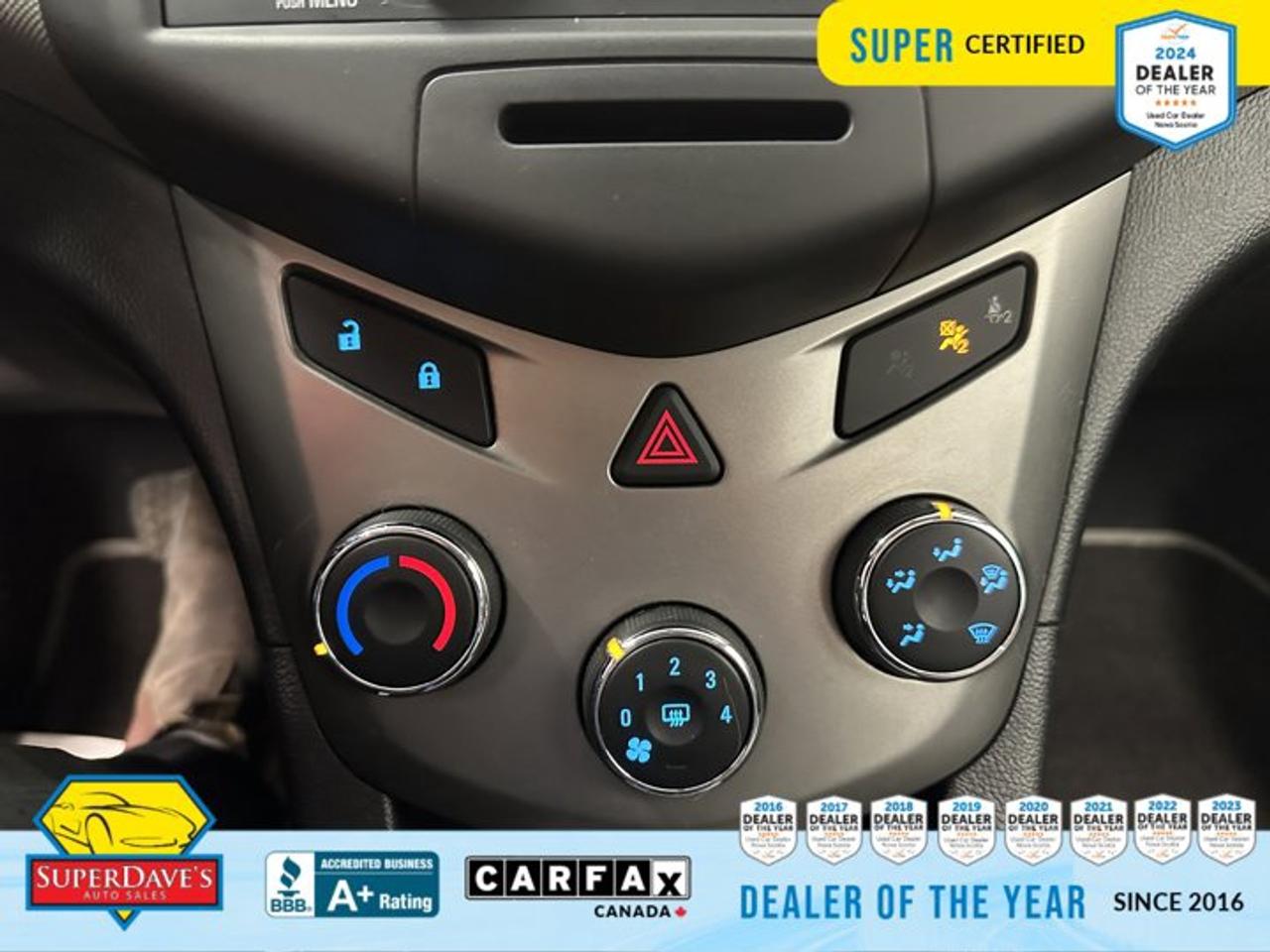PEACE OF MIND PACKAGE -inc: driver/front passenger knee airbags, seat belt pretensioners, rear side-impact seat-mounted airbags, tire pressure monitoring system, ENGINE, ECOTEC 1.8L VARIABLE VALVE TIMING DOHC 4-CYLINDER SEQUENTIAL MFI (STD), Compass, Windshield wipers and washers, rear intermittent (only on 5-door), Windshield wipers and washers, front -inc: variable delay, Windows, manual, Wheels, 15" x 6.0" steel with full bolt-on wheel cover, Visors, driver and passenger with vanity mirrors, Transmission, 6-speed automatic -inc: shifter interlock brake, Traction control, electronic, full-function, all-speed. This Chevrolet Sonic has a strong Gas I4 1.8L/110 engine powering this Automatic transmission.