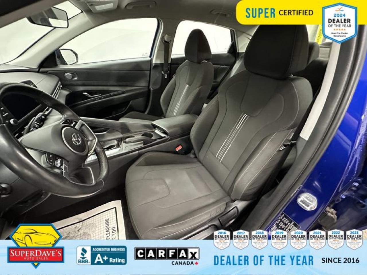 INTENSE BLUE, BLACK, PREMIUM CLOTH SEATING SURFACES, Fixed Rear Window w/Defroster, Wireless Phone Connectivity, Wheels: 16" x 6.5J Dark Metallic Gray Alloy, Variable Intermittent Wipers, Trunk Rear Cargo Access, Transmission: Intelligent Variable (IVT) -inc: drive mode selection, Transmission w/Driver Selectable Mode, Torsion Beam Rear Suspension w/Coil Springs. This Hyundai ELANTRA has a dependable Regular Unleaded I-4 2.0 L/122 engine powering this Automatic transmission.