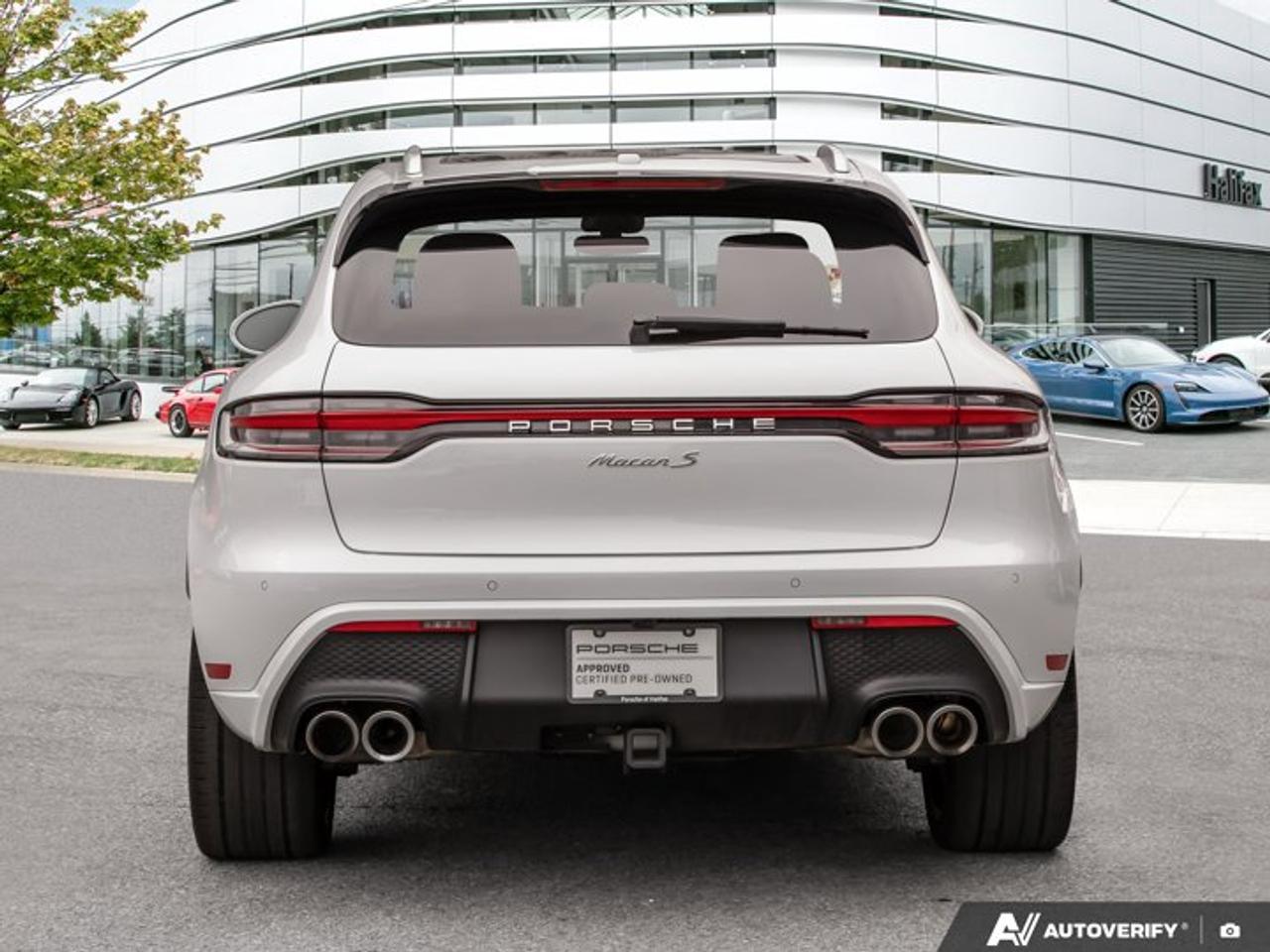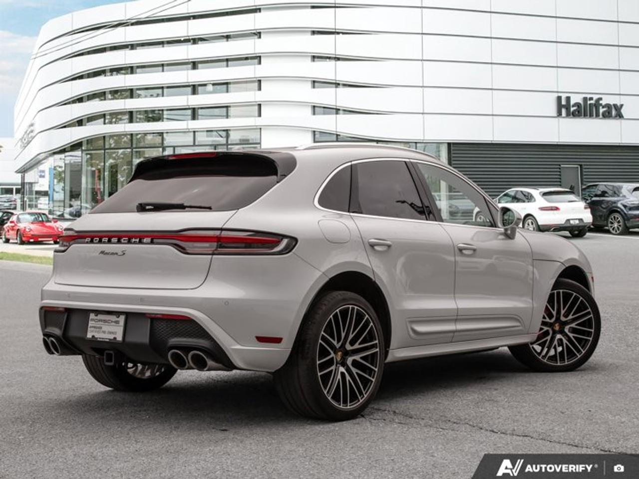 This 2024 Porsche Macan S, now available at Porsche Of Halifax, is finished in Carrara White Metallic with a Standard Interior in Black/Mojave Beige and is equipped with a PDK transmission.Certified Pre-Owned Macan S with Unlimited Kilometer Warranty until March, 2030!!*Powertrain and Drivetrain*2.9-litre twin-turbocharged V6 engine producing 375 horsepower and 383 lb-ft of torquePDK transmissionPorsche Active All-Wheel Drive*Exterior*Carrara White MetallicPanoramic Roof System21" 911 Turbo Design WheelsAll-season tyres for 21-inch alloy wheelsLED Headlights incl. Porsche Dynamic Light System Plus (PDLS+)Roof rails in AluminumExterior Package in Exterior ColorSide blades in exterior colorSport tailpipes in SilverExclusive Design fuel capTrailer Hitch without Tow BallWheel center caps with colored Porsche CrestUnder Door Puddle Light Projectors*Interior and Seating*Standard Interior in Black/Mojave BeigePower Seats (14-way) with Memory PackageVentilated Seats (Front)Heated Seats (Rear)Heated GT Sport Steering Wheel in LeatherPorsche Crest on Headrests (Front)*Technology and Driver Assistance*BOSEĀ® Surround Sound SystemSurround ViewLane Change Assist (LCA)Lane Keep Assist (LKA) incl. Traffic Jam AssistHeated windshieldPreparation for Porsche Dashcam (Front and Rear)This Macan S is configured with a combination of performance-oriented powertrain components, comfort and visibility features, and advanced driver assistance systems suited for everyday driving.Visit www.porscheofhalifax.com or call (902)453-8800 to speak with a Porsche Sales Executive.