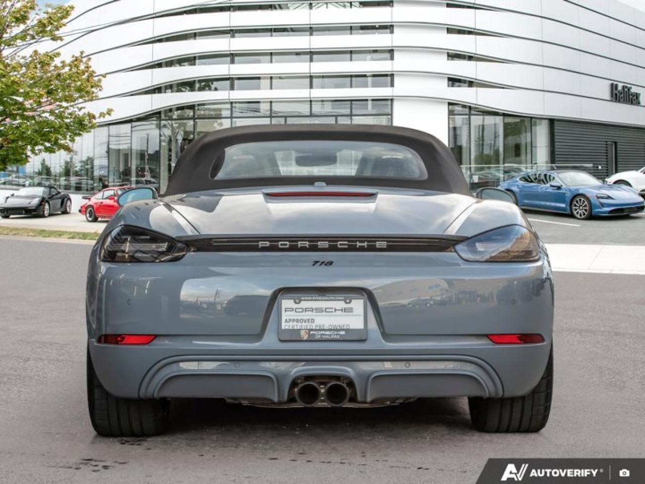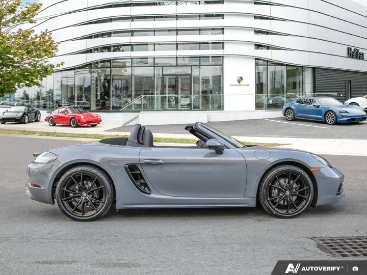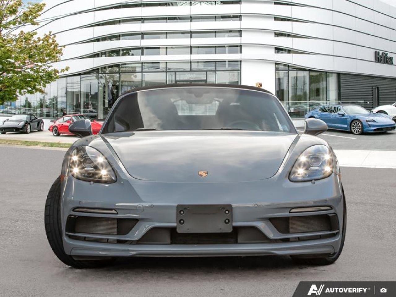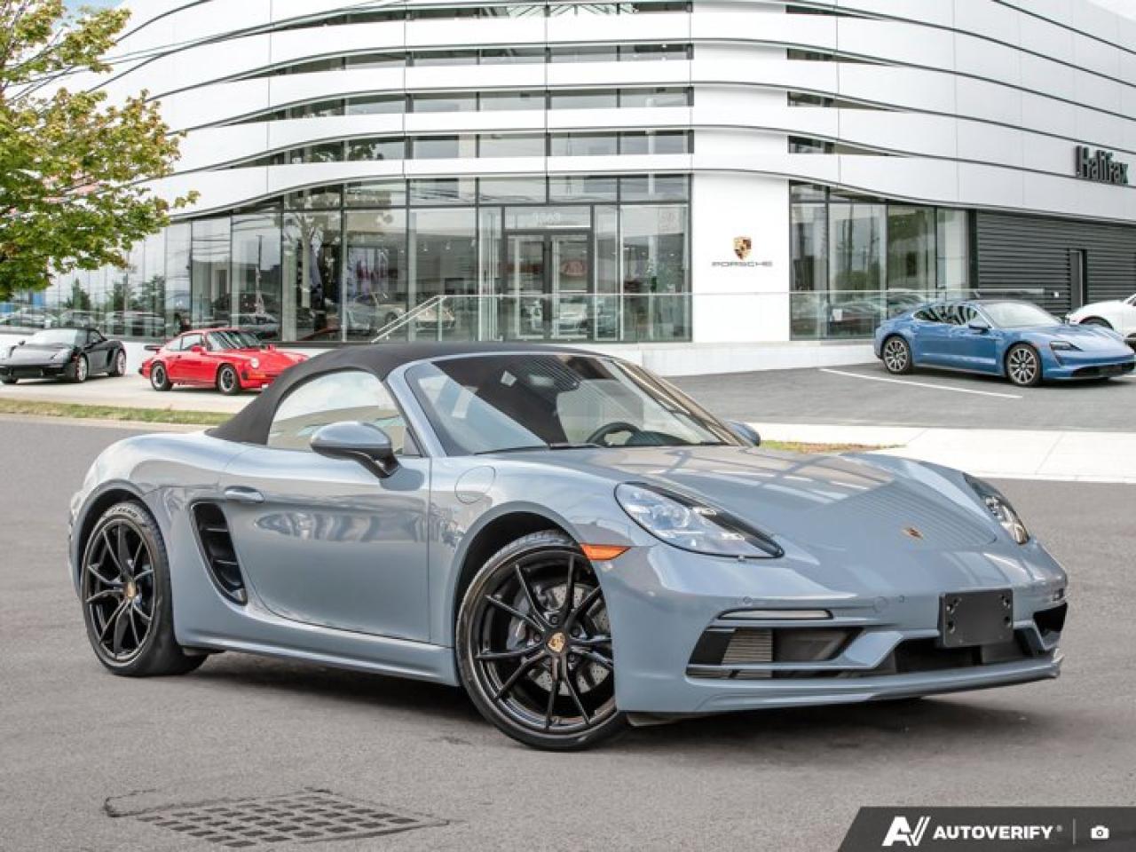 *Now available at Porsche of Halifax*, this *2025 Porsche 718 Boxster* *Porsche Canada Demo* offers open-top driving pleasure with refined comfort and unmistakable Porsche style. Finished in *Arctic Grey* with a *Black Leather Interior* and showcases a premium selection of desirable factory options.*Included with a Porsche CPO Program Vehicle:* * *2 years of Unlimited-Kilometer Porsche Approved Warranty Coverage, starting either (A) The day after the New Vehicle Limited Warranty expires or (B) The day you take Delivery (if the New Vehicle Limited Warranty is expired)* * *A 111-Point Inspection performed by Porsche-trained technicians, using only genuine Porsche Parts.* * *For the duration of the Warranty period, 24-hour Porsche Roadside Assistance, including towing, emergency fuel delivery, lock out service, trip interruption coverage, and more.*==== Comfort & Everyday Usability ==== * *Ventilated Seats* for year-round comfort * *Heated Multifunction GT Sport Steering Wheel in Leather* * *Premium Package* adding upscale comfort and convenience * *Extended Range Fuel Tank (16.9 gal)* for longer drives between stops * *Luggage Net in Passenger Footwell* for practical storage * *LED Headlights with PDLS* for bright, efficient nighttime visibility==== Technology & Assistance ==== * *Lane Change Assist (LCA)* for added confidence on the highway * *Porsche Entry & Drive* for convenient keyless access * *Light Design Package* enhancing cabin ambiance * *BOSEĀ® Surround Sound System* for immersive audio * *Power Folding Exterior Mirrors with Courtesy Lighting*==== Exterior Highlights ==== * *SportDesign Package* for a more aggressive, sculpted appearance * *20" Carrera S Wheels painted in Jet Black Metallic* * *Clear Taillights* and *Sport Tailpipes in Black* for a modern, refined finish * *Headlight Cleaning Covers in Arctic Grey* for a seamless, painted look * *Rear Side Air Intake Grilles Painted in Black* for subtle contrast * *"718" Logo in High Gloss Black*==== Interior Design & Finishing Details ==== * *Leather Package with Sport Seats* for enhanced comfort and appearance * *Porsche Crest on Headrests* * *Interior Trim Painted in Exterior Color (Arctic Grey)* for cohesive styling * *Personalized Vehicle Keys Painted* with leather key pouch * *Stainless Steel Door-Sill Guards* * *Sport Pedals and Footrest*----------------------------------------The *2025 718 Boxster* in *Arctic Grey* delivers a perfect balance of engaging performance, everyday comfort, and striking design---enhanced by its careful use as a *PCL demo*. This is an outstanding opportunity to experience Porsche's open-top roadster with premium options and exceptional presentation. *Now at Porsche of Halifax*---contact us today for your private viewing or test drive.